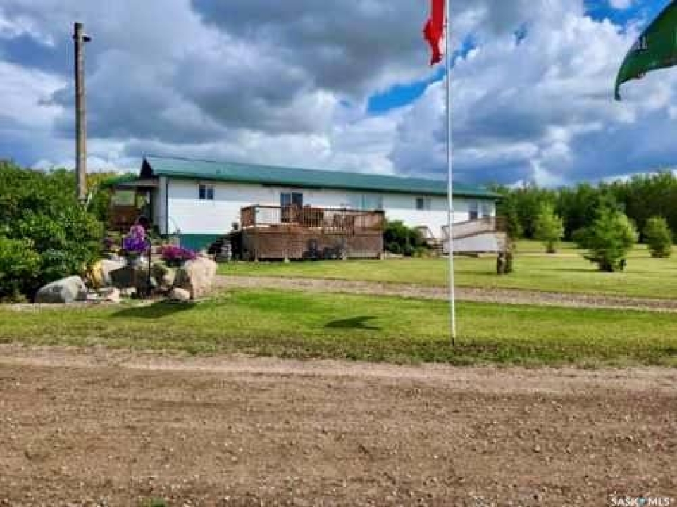 This 2006 bungalow is 2,220 sq ft with a 30'x50' shop on 10 acres in the RM of Loon Lake and would make an excellent family home. Main level features large kitchen with lots of counter space, dining area with access to a west facing deck, living room, primary bedroom with 4pc ensuite, 2nd bedroom, 2pc bathroom/laundry, mudroom plus a one bedroom fully self-contained nanny suite on main level. Suite has its own laundry and south facing covered deck. The basement hosts a large family room, 2 more bedrooms, 4pc bathroom, utility room, cold storage room, large storage room and another small storage room. You also have access to the back yard from the basement. New propane furnace in 2015 and basement has hot water infloor heat. New water treatment system in 2021, pressure tank and septic tank pump 2022. Metal walled/roofed shop built in 2008 has 16' walls set on concrete foundation, two sliding doors, 220 volt plug, loft/storage area and air compressor. Yard is beautifully landscaped with lots of shrubs, fruit trees, garden area and 2 sheds. Located 9km West of Makwa.