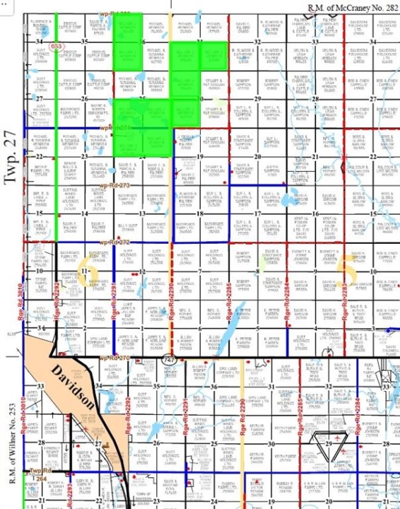 RM 252 – 10 quarter sections of farmland located just north of Davidson, SK. Delayed Presentation of Offers: No offers will be presented to the Seller prior to October 31, 2025 at 12:00 p.m. The highest, or any, offer will not necessarily be accepted. An exceptional farmland opportunity awaits with 10 almost contiguous quarter sections totaling 1,602 deeded acres in the heart of Saskatchewan's grain belt. As per SAMA, the property offers 1,166 cultivated acres, 246 hay acres, and 189 additional acres, providing excellent versatility for grain, forage, or mixed farming operations. The land boasts a strong final soil rating of 40.55 and a solid 2025 SAMA assessment averaging 203,943, reflecting both productivity and long-term value. Conveniently located just north of Davidson, this block provides ease of access. Farmland & Price Summary 5 Parcels 1,602 Title Acres (ISC) SAMA Information 1,601 Total Acres 1,166 Cultivated Acres 246 Hay/Grass Acres 189 Wetland/Bush Acres $2,040,700 Total Assessed Value (2025) $203,943 Average Assessment per 160 Acres 40.5 Soil Final Rating (Weighted Average) $2,555,000 Farmland Price $1,594 per Total acre (ISC) $2,191 per cultivated acre (SAMA) 1.25 times the 2025 Assessed Value