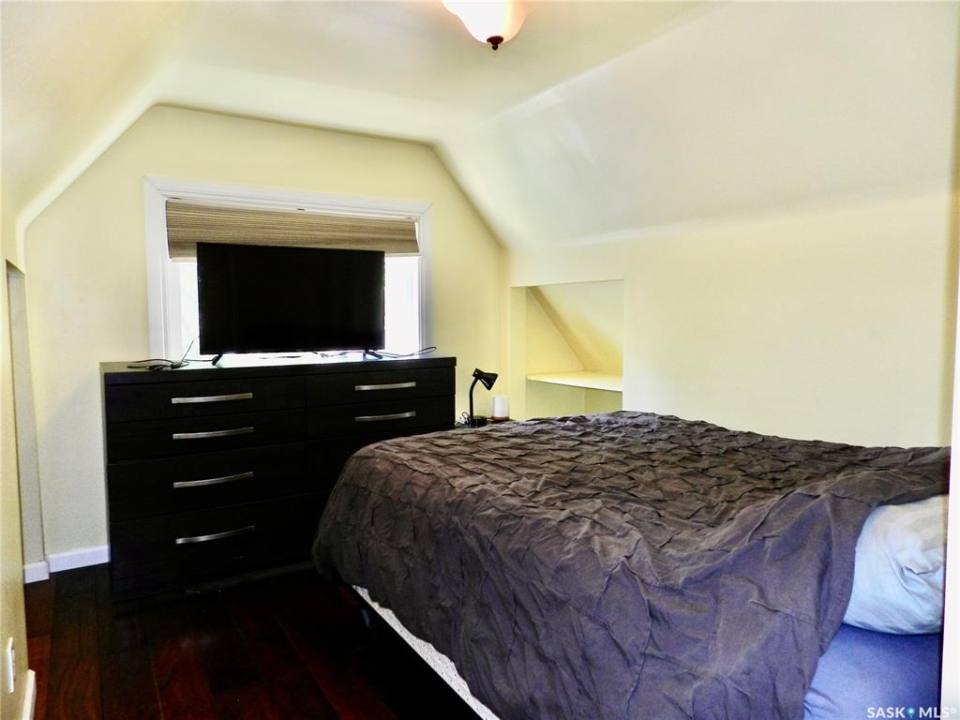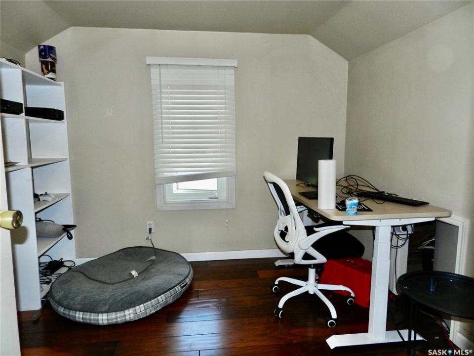 Located just a short walk from Sask Polytech, this 2 bedroom, 1 1/2 story home is a great investment as a rental or starter home. Gorgeous hardwood floors run throughout the sizeable living room, adjoining dining area and into the updated kitchen featuring a convenient pantry. On the second floor which you'll notice has the same flooring through most of it, are 2 bedrooms and an updated bathroom. The unfinished basement is a decent height and could accommodate a family room, or bonus room etc. Most of the windows are newer, furnace 2022, and the insulated, super single (18 X 24) garage was built in 2007. This cute home is waiting for you! Book a showing today.