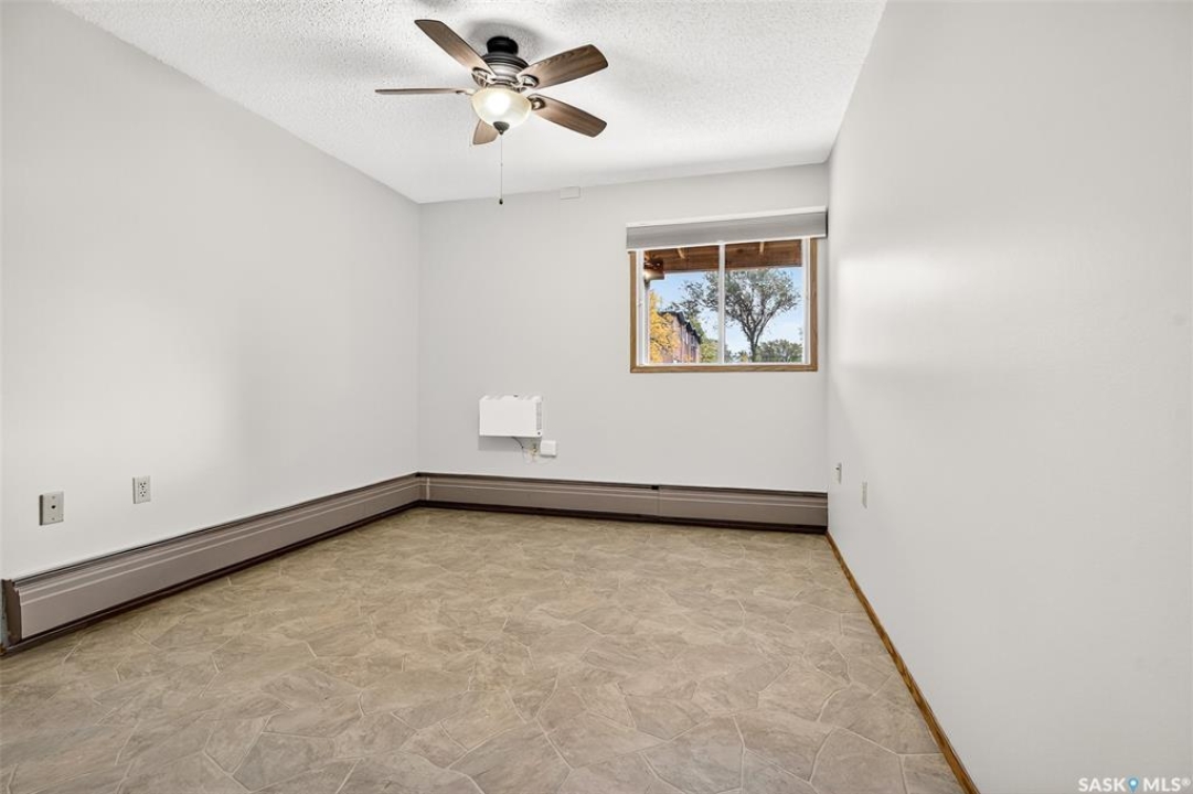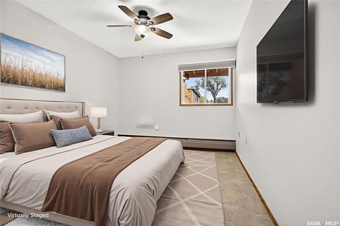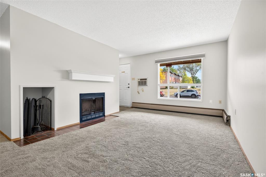 Move-In ready, Affordable Home Ownership or Amazing Revenue Opportunity! This ground level, sunny south facing 2 bed, 1 bath Condo would be a great little place to call home! It has just recently been freshly painted throughout, has new flooring throughout most of the unit and has had a bathroom rehab - including new toilet, tub and surround. Good sized living room features an accent wall with wood burning fireplace and nice mantle. Suite features galley style kitchen with updated cabinetry, and oversized walk-in pantry space. 2 large bedrooms, full bath with stylish barn door and in-suite laundry complete the space. Step outside with your morning coffee to enjoy your patio! Condo comes with 1 electrified parking stall and an outside storage space. Condo fees include heat, water, sewer, garbage, ground maintenance, snow removal, building insurance and reserve fund.