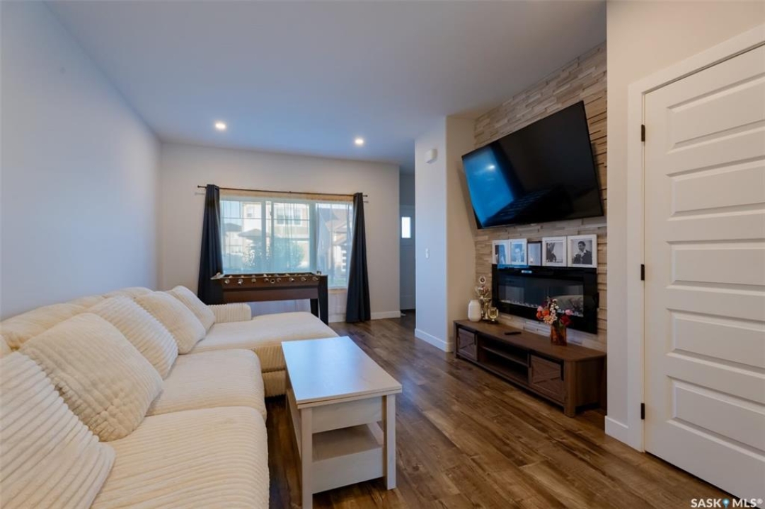 This stylish 2-storey home in the desirable Brighton neighborhood offers 1362 sq. ft. of designed living space. The kitchen features a sit-up island, custom cabinetry, quartz countertops, built-in dishwasher, and an exterior-vented over-the-range microwave. An open dining area flows seamlessly into the living room, complete with a striking stone feature wall and an electric fireplace, perfect for cozy evenings. Upstairs you'll find three bedrooms, including a primary suite with a walk-in closet and private 3-piece ensuite. Convenient second-floor laundry makes daily living easier. The lower level offers the option for a legal suite, providing excellent investment or mortgage helper potential. Outside, enjoy a landscaped front yard and a 2 car detached garage. Located in beautiful Brighton, you'll be just minutes away from parks, schools, shopping, and many other amenities.