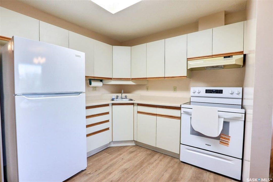 Welcome to Kernaghan Place! This affordable 2-bedroom, 1-bath condo offers 893 sq ft of comfortable living space in the desirable East Hill neighborhood. Located on the ground level for easy access, this unit features newer vinyl plank flooring throughout, a bright and spacious layout with large windows, and a functional kitchen with arborite counters and white appliances. The open living area extends to a private patio, perfect for relaxing outdoors. Additional highlights include in-unit laundry with extra storage, an intercom system for added convenience, and a well-maintained building built in 1989. A great opportunity for first-time buyers, downsizers, or investors!