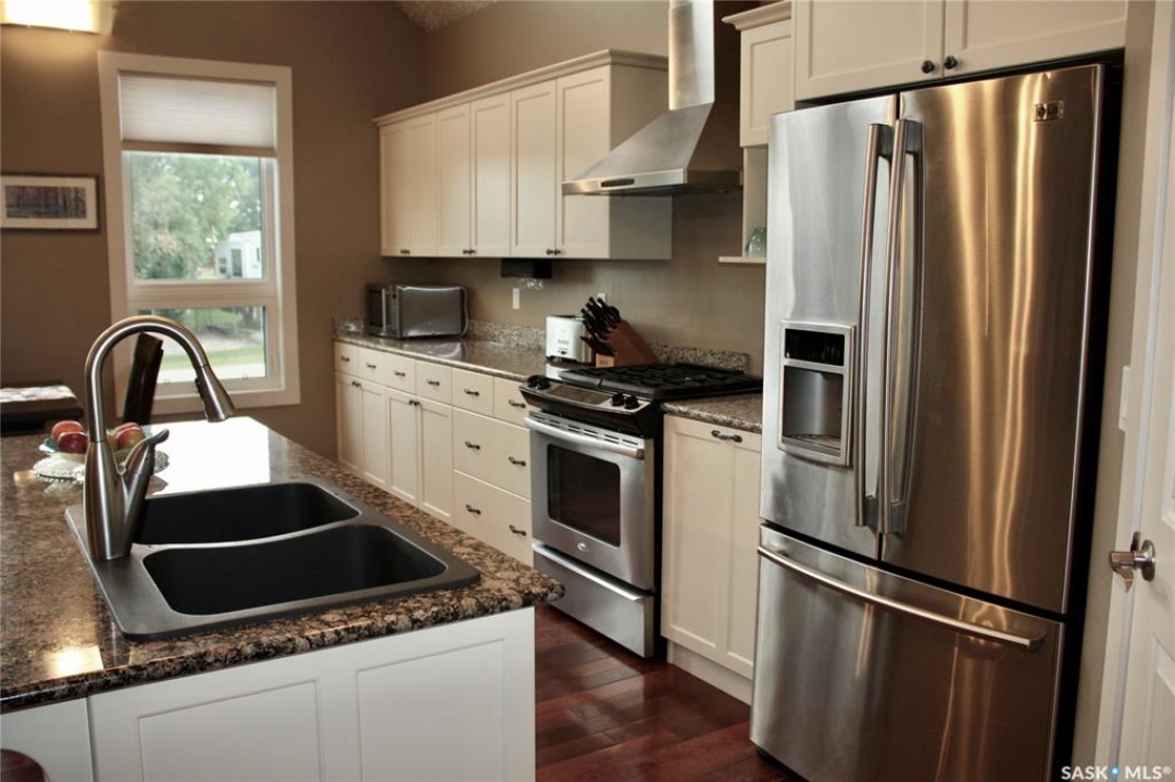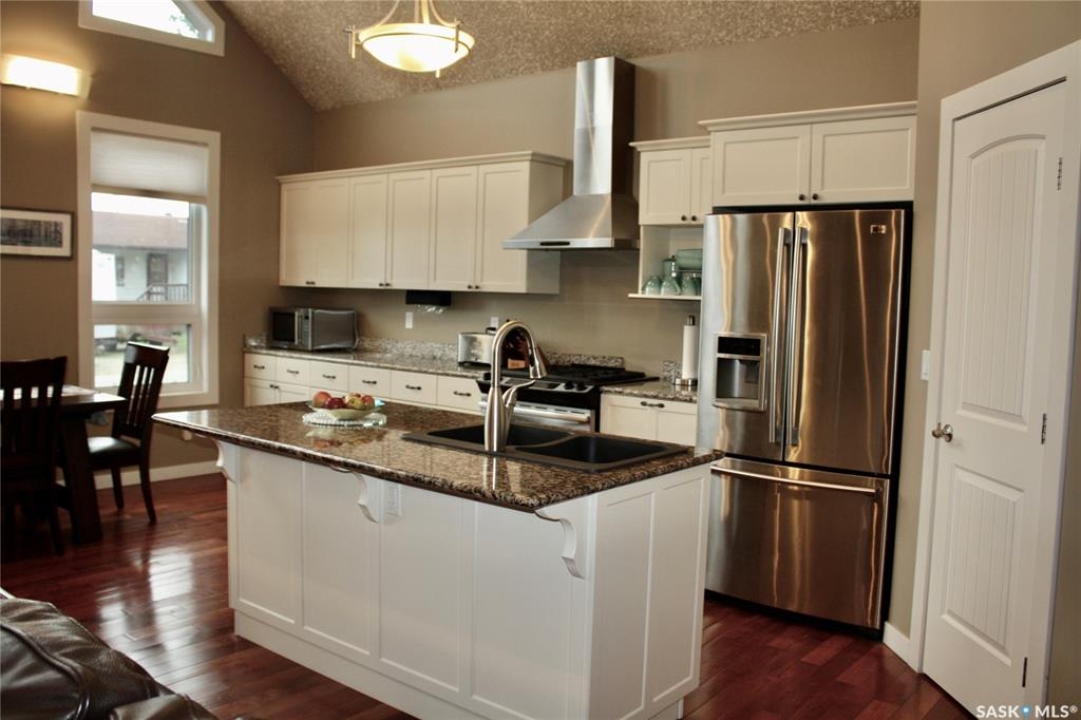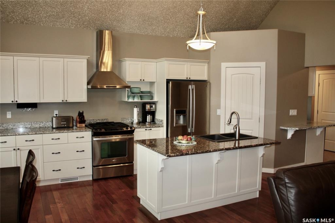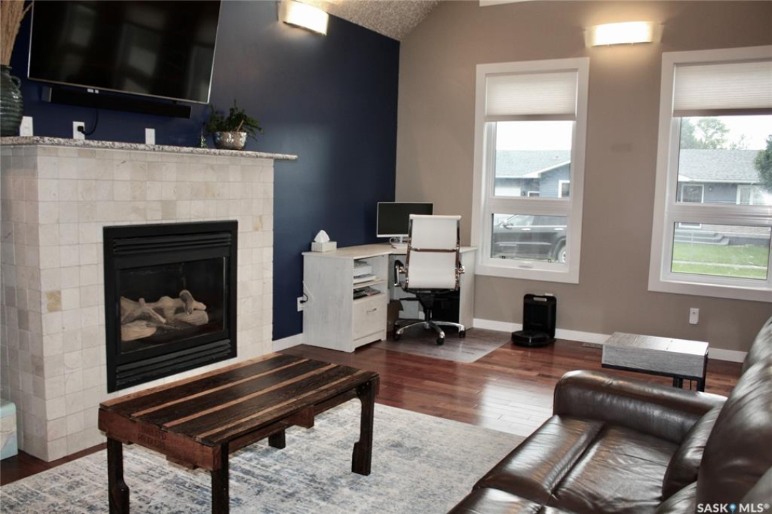 Welcome to a 1 and a half storey home with Dream Shop(34'x40') Corner Lot at 212 Jura St in Colonsay, SK Located just 30 minutes east of Saskatoon in the quiet community of Colonsay, with huge addition offers 1,588 sq. ft. of thoughtfully designed living space The massive dream garage/shop is a must see and is perfect for hobbyists, mechanics, or small business owners. The heart of the home is the open-concept kitchen, complete with granite countertops, a granite sink in the island, stainless steel appliances including a gas range, a massive pantry, hardwood floors, and a built-in bar area—ideal for entertaining. The living space features vaulted ceilings, large windows that flood the home with natural light, and a cozy natural gas fireplace. The primary bedroom is spacious with two closets, while the main bathroom feels luxurious with double sinks, a granite vanity, tiled backsplash, shower, and heated tile floors. Upstairs, you'll find a generous second bedroom with a walk-in closet, plus a large office/loft area, both beautifully finished in pinewood. The finished basement includes a third large bedroom and a full 4-piece bathroom with a corner tub and shower. Outside, the low-maintenance, fenced courtyard is Xeriscaped with vinyl fencing, two sheds (one insulated with power), concrete patio and ample space to relax or entertain. A true showstopper is the 34' x 40' heated garage/shop. Features include: 12' ceilings, interior lined with steel, radiant heat, floor drain, 3 bays - each plumbed with air and power, wall plugs every 3 feet, wall cabinets, home office, a separate storage room with in-floor heat and extra enclosed storage above. Off-street parking for at least 12 vehicles. This property is the perfect blend of comfort, style, and functionality. This is a great family home and a truly great shop—this one has it all. Don't miss your chance to own this unique property! Call to book your showing.