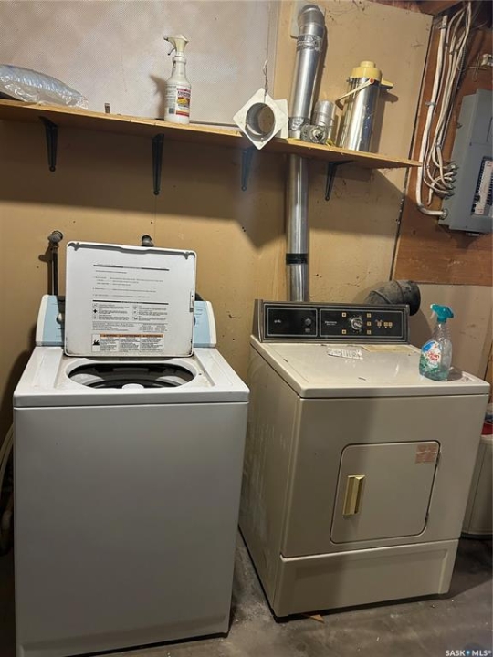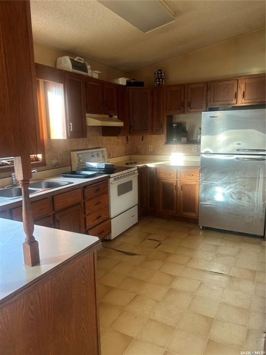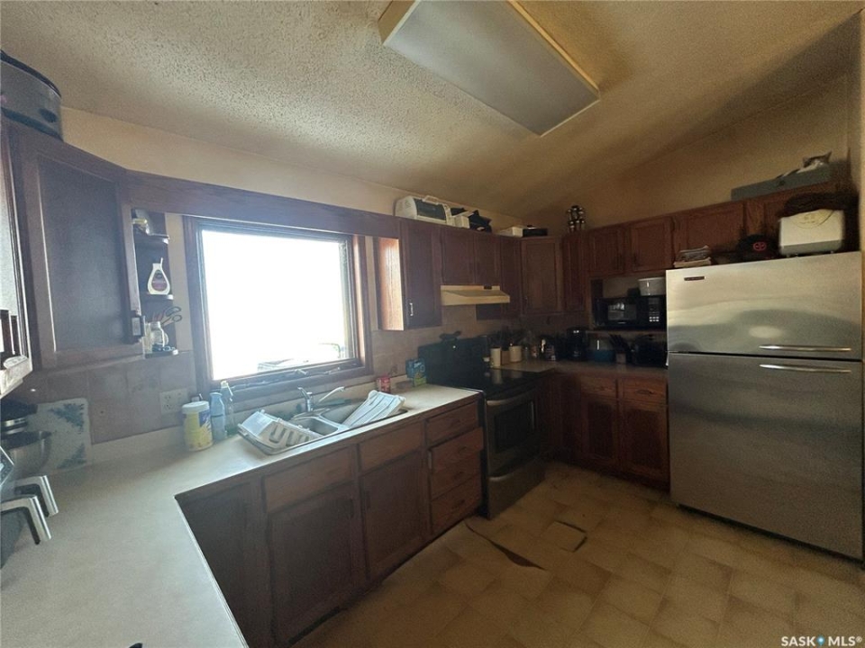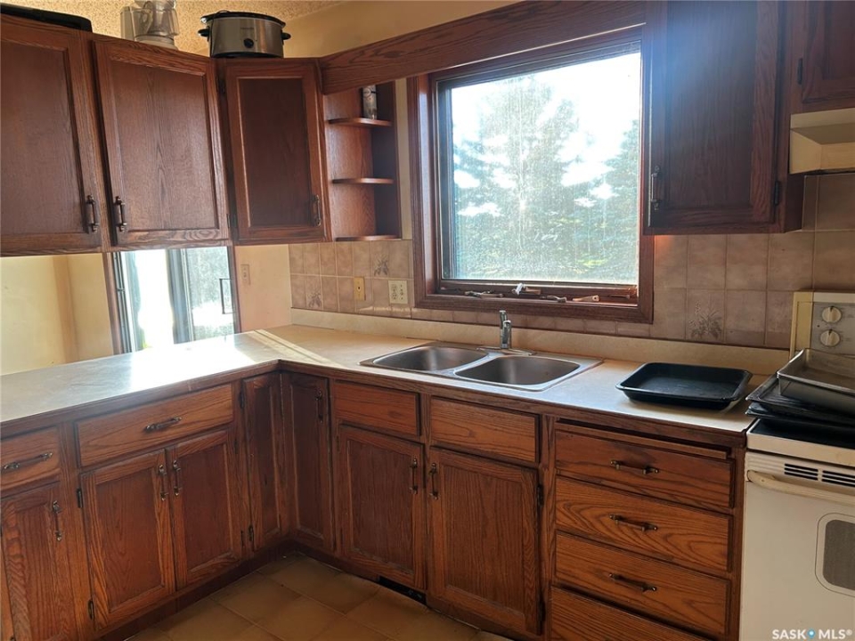 Dreaming about country life? This might be the property for you! This home was built in 1989 with a double attached garage. Situated on a 30 acre parcel south of hwy 15 in the RM of Wood Creek, this acreage offers privacy and tons of space for outdoor living, hobby farming, or just enjoying the outdoors. South facing living room shares a vaulted ceiling with the north facing kitchen/dining room. A 4 pc bathroom (recently updated) and 3 bedrooms complete the main level. Basement is partially finished with walls insulated/drywalled and concrete floors. Layout has a large family room (currently used as a bedroom), a rough in for 3 pc bath, bedroom and utility/laundry room. Double garage has gravel floor and currently houses the cistern. Heat source is an electric furnace. Sewer system pumps out to lagoon. Shingles were updated approx 2018, Exterior is vinyl siding. Outside the terrain is rolling, with tons of room for future development of a shop, second home, or whatever your heart desires. Great upside potential for a buyer with carpentry skills!