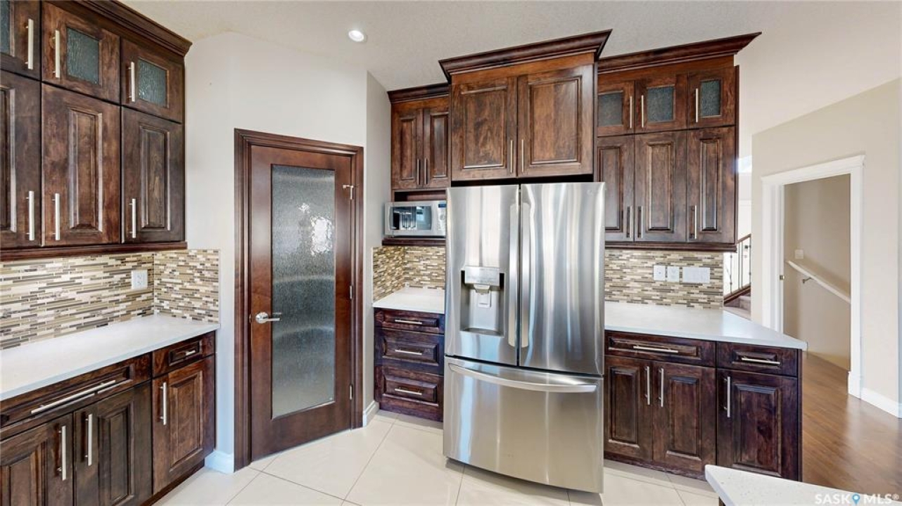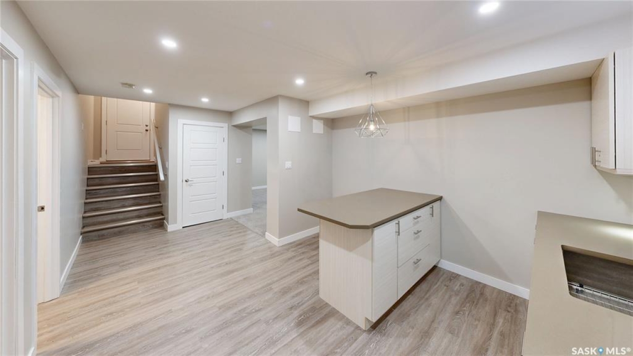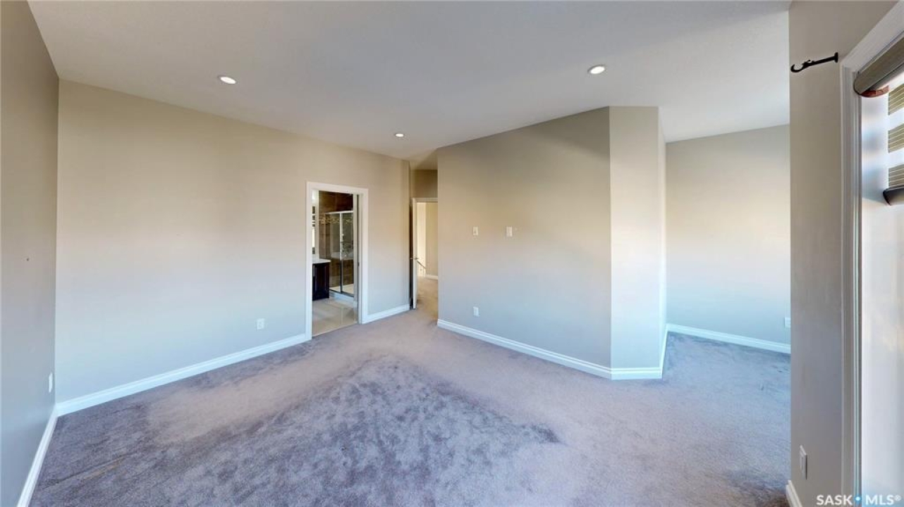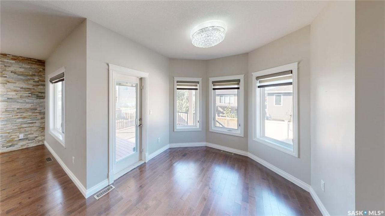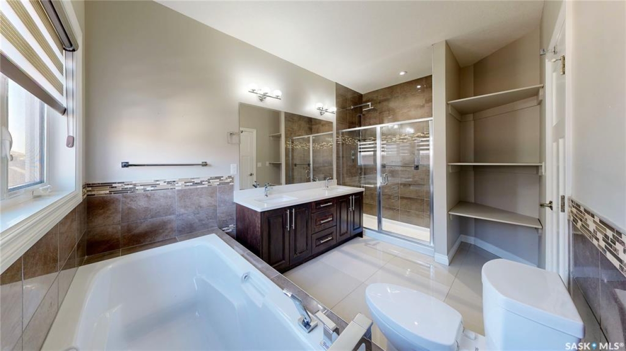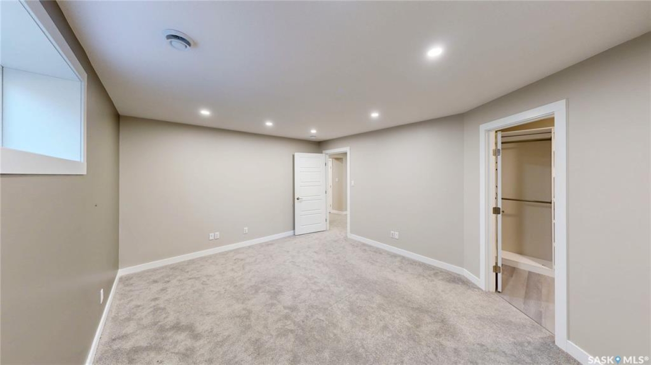 Welcome to your dream home! an elegant family home located in the vibrant Harbour Landing neighborhood. 2017 built, 2379 square foot, 5 bedroom 4 bathroom, 2 story house sits on a 40 x 115 rectangular lot. The front yard has a double concrete driveway that leads to the 24 x 24 heated and insulated double attached garage. The fully fenced backyard features a spacious deck, lush lawn, raised garden boxes, and a versatile patio area. Ideal for outdoor dining, entertaining, or evenings around a firepit. Upon entering, you are welcomed by a grand foyer embellished with an elegant chandelier, a coat closet, bench space, and convenient direct access to the garage. The main floor features a flexible first bedroom and a 4-piece bathroom, ideal for guests or as a home office. The heart of the home is the warm and inviting living room, accentuated by a striking brick feature wall, a cozy gas fireplace, and gleaming hardwood flooring. The adjoining kitchen includes an island with bar seating, a corner pantry, a modern tile backsplash, ample cupboard and drawer space, and sleek stainless steel appliances. The kitchen seamlessly transitions into the bright dining area, where three large windows frame serene views of the backyard, creating an ideal setting for family meals. On the upper level, the first stop is the 3-piece bathroom featuring a rainfall shower head, followed by a generously sized bedroom complete with its own closet. The luxurious primary suite offers a walk-in closet with built-in shelving and drawers, along with a spa-inspired 5-piece ensuite bathroom that includes a deep soaker tub, dual vanity, a spacious glass shower with a rainfall showerhead and storage space. A unique windowed nook within the primary bedroom provides a tranquil corner for reading or relaxation. The fully finished basement is designed as a private secondary suite with its own separate side entrance, making it perfect for multi-generational living or generating rental income.