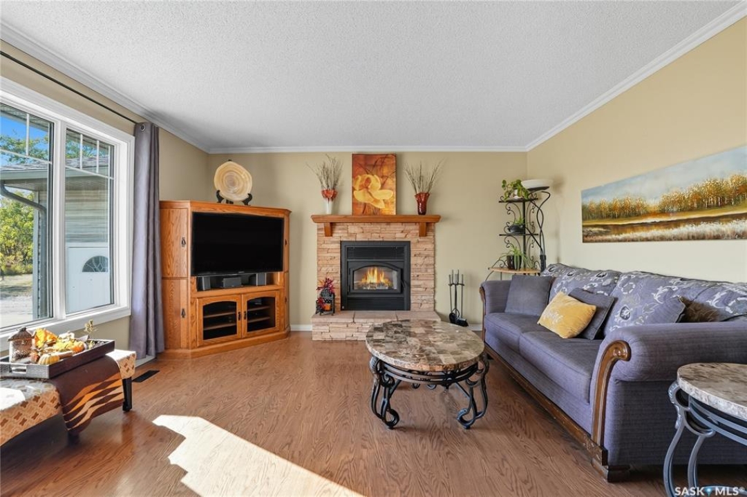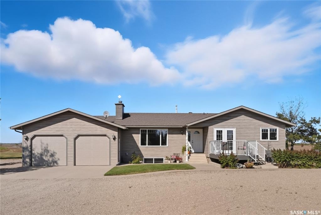 This beautiful family acreage is located right off Highway 14, only 10 minutes west of Saskatoon and nearby shopping. Sitting on 10 acres of land that could be subdivided - this 1392 sq ft raised bungalow offers space, privacy and adventure. Trails wind through the trees and bush, giving you and your family the chance to enjoy dirt biking, quadding, snowmobiling, or even horseback riding right on your own property! The 24'x42' triple car attached garage/shop features 10' ceilings, a spacious work area, and plenty of shelving and storage for tools and toys. Inside the house, you'll feel the character the moment you walk in. The bright living room welcomes you with south-facing windows that flood the space with natural light throughout the day. In winter, the passive solar gain helps keep things cozy, and the wood-burning fireplace adds warmth and charm on a cold winter day. The kitchen is open and functional, with lots of cabinet space and room to host family meals and get-togethers. Just off the kitchen, you'll find a 2-piece guest bath and a convenient main floor laundry room. The main floor also features three big bedrooms and a 3-piece bathroom. Downstairs, the fully developed basement offers two more bedrooms, a large living area, and oversized windows that brighten the space and make you forget that you're in a basement. There's room for a games area, TV room, kids zone, or even a pool table! There are also multiple storage rooms and a utility space that will help keep you organized. The property is serviced with natural gas and electricity, and includes a cistern for water that can be easily filled by hauling your own city water, or by delivery. The septic system consists of a concrete holding tank and a grey water pump out. Don't worry about getting the kids to and from school in Saskatoon, because school buses pick up right at the driveway! This acreage is the perfect place to call home and improve your lifestyle and quality of living - book a showing today!