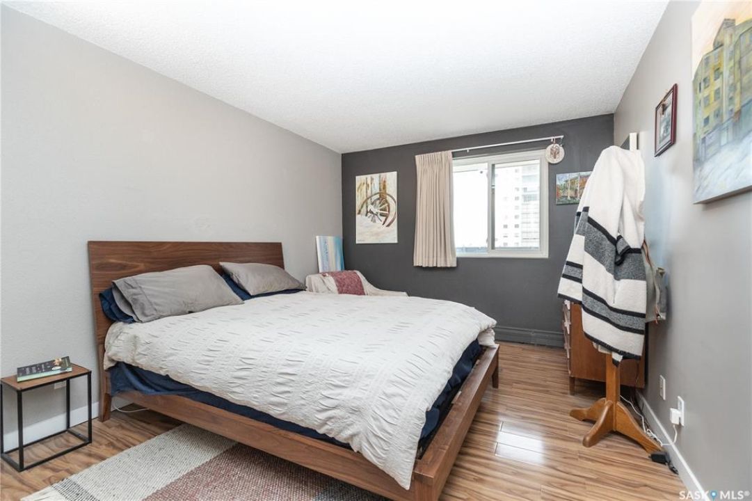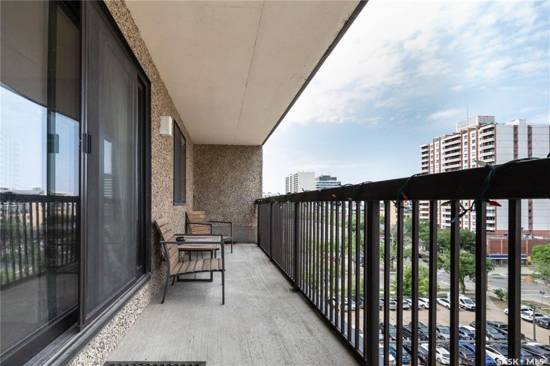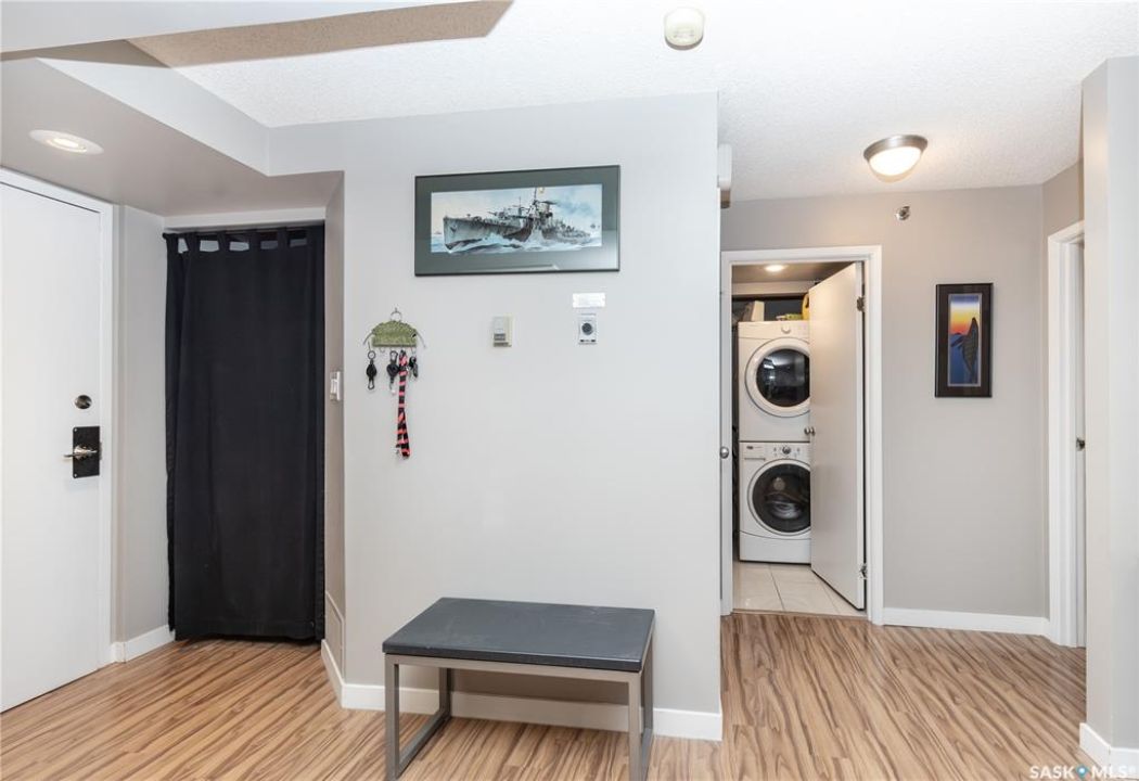 Welcome to 801-311 6th Avenue North – Hallmark Place This fully renovated 1-bedroom, 1-bathroom condo is move- in ready and perfect for urban living in the heart of downtown Saskatoon. Featuring quality laminate flooring throughout, a beautifully updated kitchen with custom cabinetry, granite countertops, and a modern 4-piece bathroom complete with a relaxing soaker tub. The spacious primary bedroom offers comfort and functionality, while in-suite laundry adds convenience. Step out onto the large balcony to enjoy stunning city views — and a clear view of your electrified parking stall. Hallmark Place offers excellent amenities including a fitness centre, games room, and squash court. Located just steps from downtown restaurants, shopping, and the river valley. Quick Possession Available. Don't miss out — call today to book your private viewing!