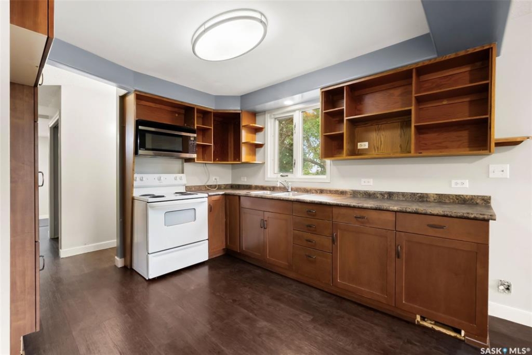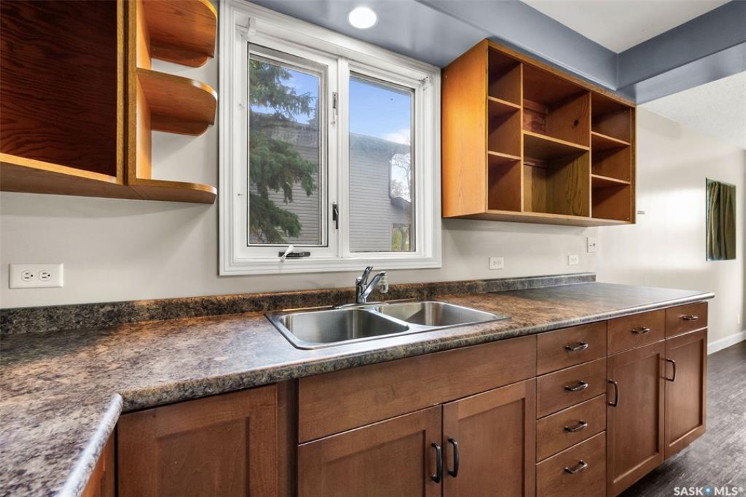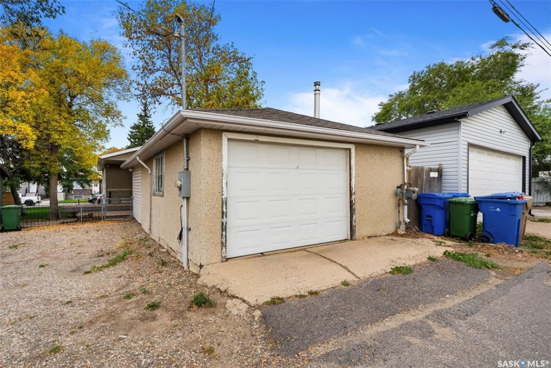 This well-maintained bungalow offers a rare opportunity with its double lot and two separate designations, providing flexibility and potential for future development. The home itself is thoughtfully updated, featuring newer PVC windows, refreshed flooring, counters, cupboards, and fixtures throughout the main level. A spacious principal bedroom and an upgraded main bathroom add comfort and style. The 144-square-foot addition built in 2010 is ideal for a home office, complete with spray foam insulation and a polly'd crawl space beneath for added efficiency. Downstairs, you'll find a non-regulation suite with a generous rec room, 4 pce bath and a bedroom, though the window may not meet current egress standards. The suite shares laundry space and would require framing for private entrances . Utility has a 100 amp panel, updated sewer line to the basement bathroom with a back flow valve. Outdoors to a two tiered deck and a well-built garden shed that adds to the storage, while the 18x20 detached mechanics garage is fully insulated, heated, and powered by its own 100 amp panel. The exterior boasts newer siding, stack stone accents, a recently installed A/C unit, and newer shingles, making this property move-in ready and full of potential. Please contact your realtor for more information or personal tour.