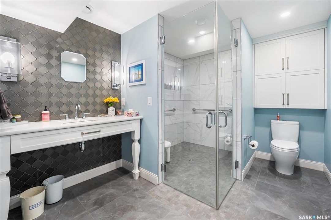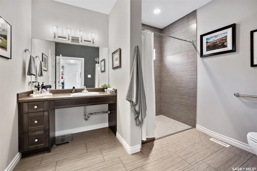 WHEELCHAIR ACCESSIBLE! Gorgeous Warman home in mint condition!Custom built,fully wheelchair accessible and is absolutely loaded!Extra wide galley kitchen comes with high-end appliances - gas stove with hood fan, large double door fridge/freezer, built-in microwave and dishwasher,loads of cabinet and granite counter space.The first of two Primary bedrooms located on the main floor.Comes with a walk-in closet and access to the main floor 3-piece bathroom.Second floor is complete with the second Primary bedroom, a bedroom/office and 4-piece bath that is accessible from each bedroom.The basement is an entertainer's dream.Large family/media room with fireplace,10 speaker Dolby Atmos surround sound system and custom shelving.The wet bar is absolutely stocked!Large granite island with bar seating, dual drawer dishwasher,sink with drying rack,custom cabinetry and a glass wine cellar with storage for 300 bottles.Bedroom has a built-in queen size Murphy bed and sits next to the 3 piece bath. Laundry, storage and utility rooms are here as well.Double garage is fully insulated,heated.Includes EV charger, Golf simulator with projector and fully retractable screen and enclosure.Low Maintenance yards.The 4 hole putting green and artificial chipping area is surrounded by a massive patio area with wide walkways to three separate areas for BBQing,sitting and eating.Large composite deck off the kitchen,Vinyl fencing, large garden boxes,underground sprinklers for garden boxes and planters,and 4 storage sheds are among other features of the extraordinary yard. Noteables:Personal elevator with 3-stop direct access to main,garage,basement.2 fully accessible roll-in showers with multi head positions and grab bars.Full turn width bathrooms, roll under sinks and grab bars beside toilets.Extra wide hallways and kitchen galley.Lever style handles.Main floor bedroom is large enough to accommodate a lift.Moveable rubber ramp.Extra wide fence gates Hot water tank (2019)Upstairs bath reno 2022.