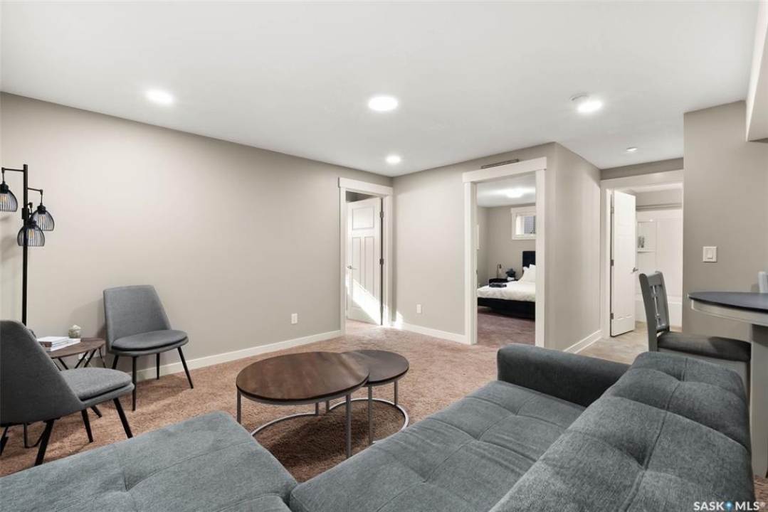 Welcome to 5221 Canuck Crescent, a beautifully maintained two-storey home in the family-friendly neighbourhood of Harbour Landing. Built in 2013, this 2,150 sq. ft. property offers a thoughtful layout, quality finishes, and a fully developed basement with a separate entry—providing excellent suite potential. The main floor features a bright living room with hardwood flooring and a cozy gas fireplace, an open dining area with access to the backyard deck, and a chef's kitchen complete with stainless steel appliances, granite counters, tile backsplash, a pantry, and a central island with wine storage. A convenient office/den and a 2-pc bathroom complete the main level. Upstairs, the spacious primary suite includes a walk-in closet and a luxurious 5-pc ensuite with dual sinks, soaker tub, and separate shower. Two additional bedrooms, a 4-pc bath, a second-floor laundry room, and a large bonus room provide plenty of space for family living. The fully finished basement offers a non-regulation suite with its own kitchen, living room, two bedrooms, a 4-pc bath, and separate laundry—ideal for extended family, guests, or rental income. Outside, enjoy a landscaped and fenced yard with deck, trees, and shrubs. The double attached garage is insulated, heated, and provides direct entry to the home, along with ample driveway parking. Located close to schools, parks, walking paths, shopping, and all Harbour Landing amenities, this home is move-in ready and offers exceptional value.
