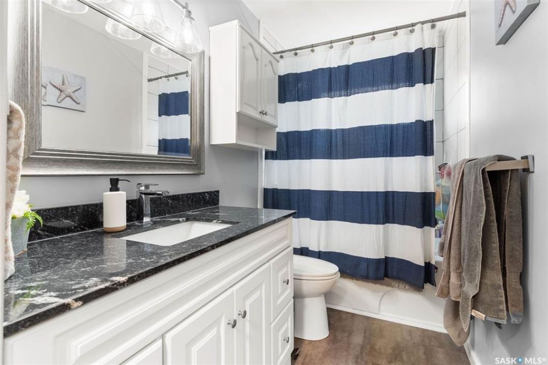 Welcome to 1809 Dufferin Road, located in Regina's sought-after Whitmore Park. This well-kept 1,050 sq. ft. bungalow is move-in ready and offers both style and function, making it an ideal choice for families, first-time buyers, or downsizers alike. Inside, you'll find a bright and spacious living room with a large picture window that fills the space with natural light. The main floor features hardwood floors, a dedicated dining area, and an updated kitchen with white cabinetry, stainless steel appliances, and plenty of counter space. Three good-sized bedrooms and a refreshed 4-piece bathroom with a granite countertop complete the main level. The fully developed basement offers even more living space with a huge recreation room—perfect for entertaining, a play area, or a home theatre. An additional bedroom and laundry/utility area make this level functional and versatile for today's family needs. Step outside to a large 6,536 sq. ft. lot with a fully fenced backyard designed for relaxation and play. Enjoy mature trees, a patio for summer BBQs, a firepit area, garden space, and room for kids to run or set up play equipment. Other notable features include updated windows, central air conditioning, modern finishes throughout, and a concrete driveway with ample off-street parking. This property combines comfort, updates, and a fantastic location close to schools, parks, shopping, and south-end amenities. Don't miss your chance to call 1809 Dufferin Road home!
