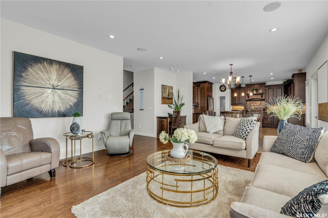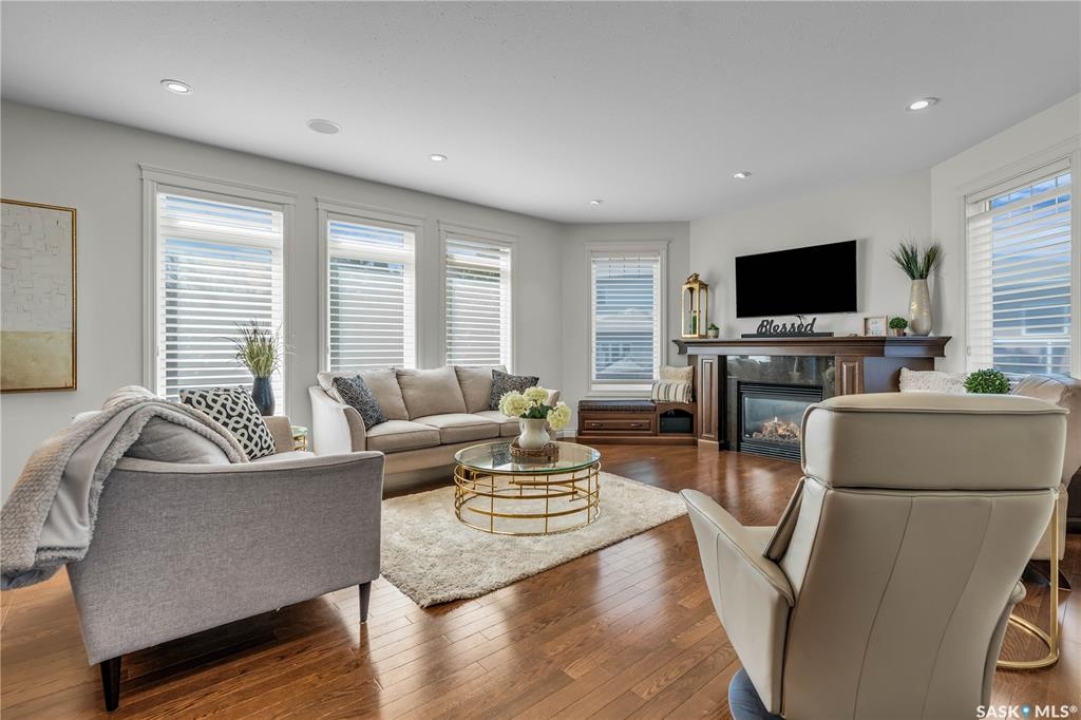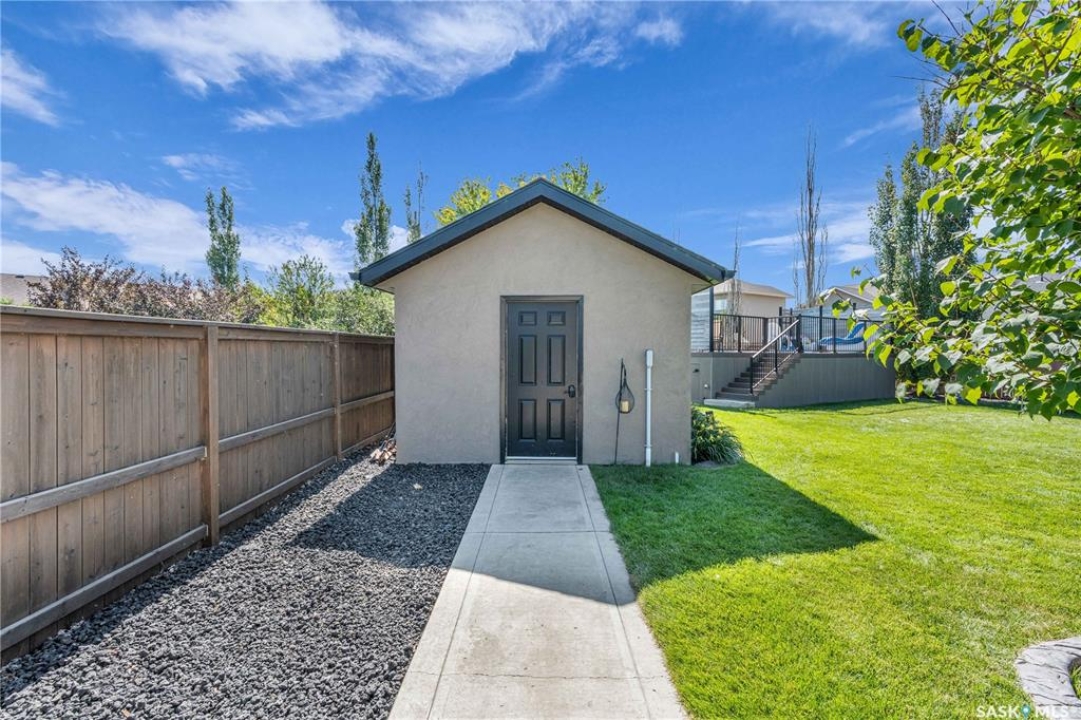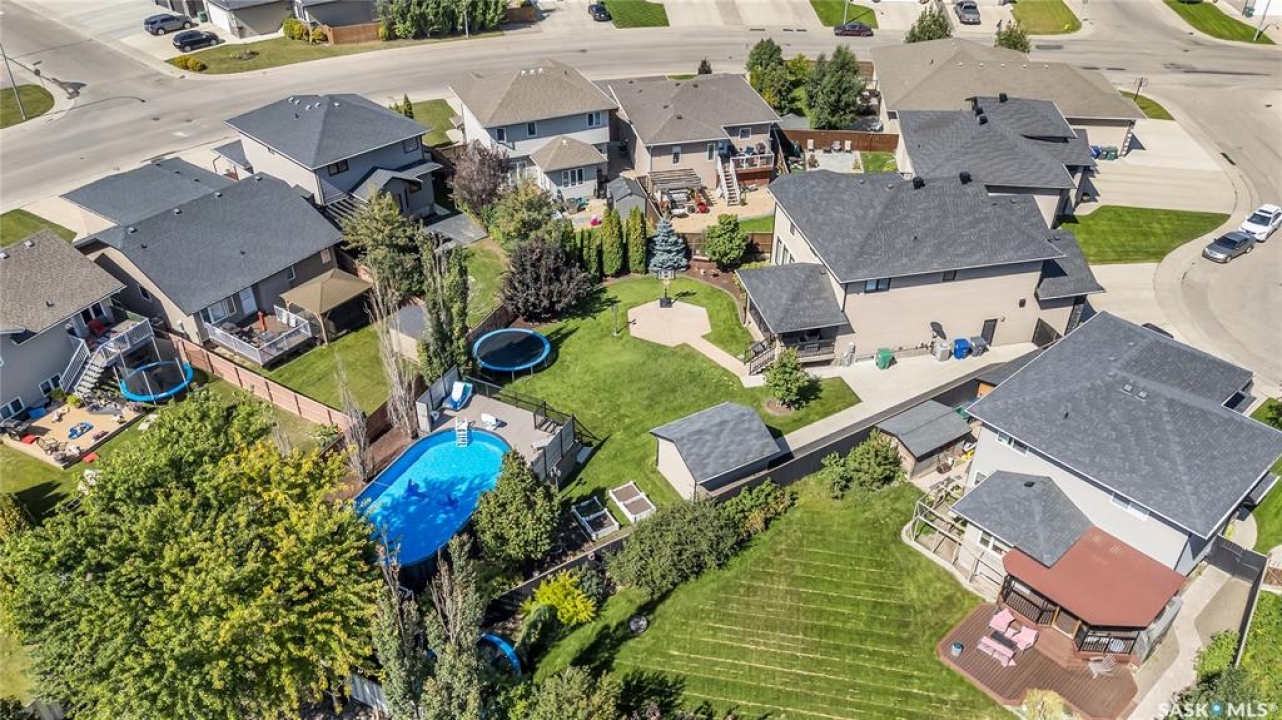 Discover the perfect blend of comfort, style, and convenience in this exceptional property, ideally situated in a highly sought-after cul-de-sac. Just a short stroll from the promenade in the new Parkridge extension and the vibrant Blairmore shopping center, you'll find all your essential amenities right at your fingertips. Enjoy charming walking paths, pocket parks, and close proximity to schools, making this neighborhood not only safe but peaceful and ideal for families. This custom-built, one-of-a-kind residence is nestled on a sprawling pie-shaped lot, featuring a stunning backyard oasis that's perfect for relaxation and entertainment. Dive into your very own sparkling, permanent above-ground heated pool, measuring an impressive 18x33, where you can bask in the sun on warm summer days. The backyard is beautifully landscaped with mature trees, lush shrubs, and vibrant perennials, creating a serene outdoor retreat. Step inside to find a thoughtfully designed interior that exudes warmth and charm. The open great room concept features 9ft ceilings, gas fireplace, and hardwood flooring. The chef's kitchen is a culinary delight, with custom features, island, walk in pantry, under-counter lighting illuminates the stunning marble tile backsplash that beautifully accentuates the granite countertops throughout the home, combining style with functionality. The main floor also features a den & 2pc bath. This home features 4 spacious bedrooms and 4 bathrooms, including a luxurious ensuite with a tiled shower equipped with four shower heads and his-and-her sinks. The master bedroom offers a walk-in closet. Comfort is paramount in this residence, with heated floors in the garage and basement, as well as tiled sections throughout the other levels. The basement serves as a perfect retreat, featuring spray-foamed exterior walls and a delightful wet bar. Embrace the outdoor enjoyment and tranquility of living in a family-friendly neighborhood. Your dream home awaits