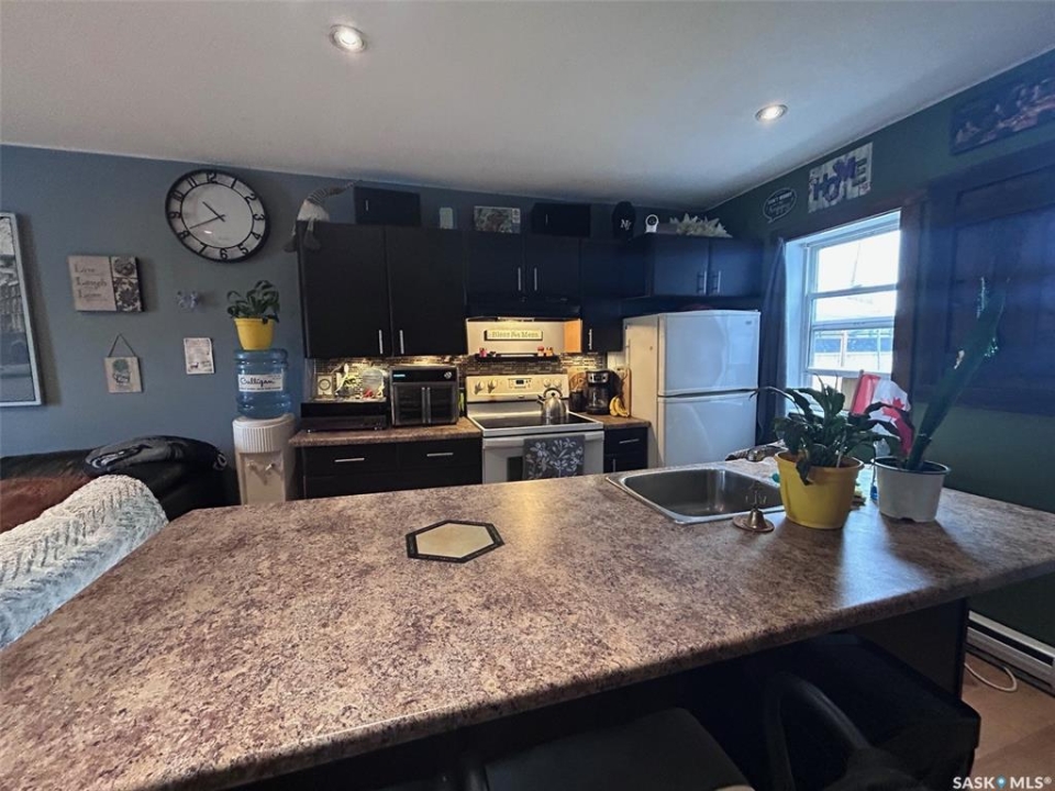 Welcome to this delightful and affordable 2-bedroom home in the friendly town of Maidstone, ideally situated just off the Yellowhead Highway — only 57 km east of Lloydminster and 84 km west of North Battleford. This inviting home has seen numerous upgrades over the years, including windows (2010), shingles (2019), and exterior doors. Most recently, the interior and exterior have been freshly painted, giving the home a clean, modern feel. A brand-new fence adds privacy and enhances the outdoor space, perfect for children, pets, or simply relaxing in your own backyard. Inside, you'll find beautiful hardwood floors running through the living room and both bedrooms. The kitchen is a standout with newer cabinetry, a generous island, and a built-in dishwasher — ideal for both everyday living and entertaining. The bathroom has been tastefully renovated with a stylish tub surround, updated vanity, and modern sink. A cozy wood-burning stove in the living area adds warmth and charm during the winter months, creating a welcoming space you'll love coming home to. Outside, enjoy a 22' x 22' insulated garage with an automatic door opener and a spacious back deck — perfect for BBQs or soaking up the sun. This well-maintained home with thoughtful updates won't last long. Contact your agent today to schedule a private showing!