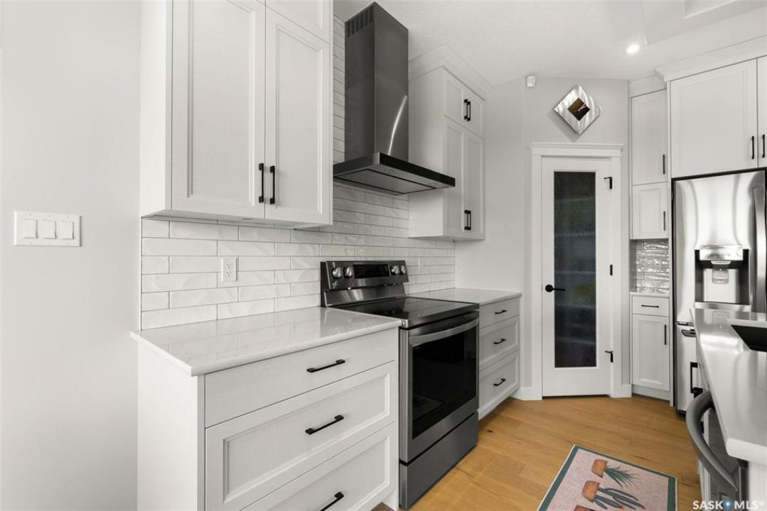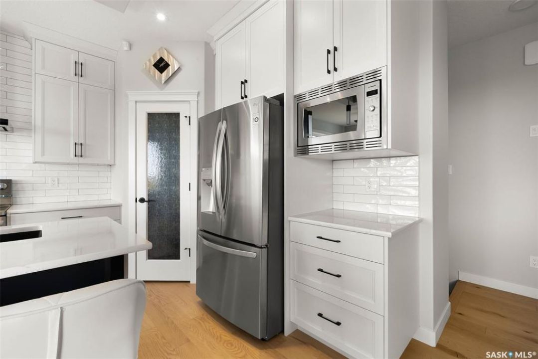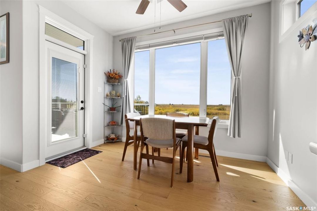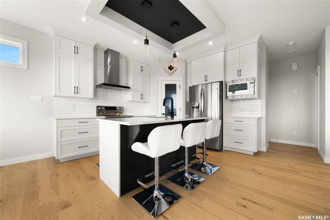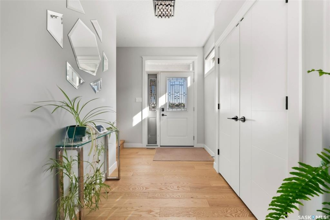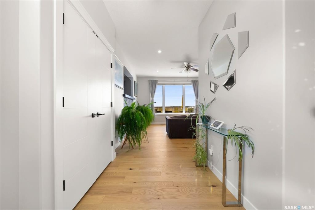 Welcome to 408 Hillside Drive in Pilot Butte! Built in 2020, this impressive 2-storey home offers over 1,700 sq. ft. of thoughtfully designed living space plus a triple attached garage. With modern finishes, premium upgrades, and a prairie backdrop, it's the perfect blend of style, comfort, and functionality. The main floor showcases an open-concept layout with engineered hardwood flooring and 2x6 construction on 16” centers. A bright living room centers around a remote-controlled gas fireplace with stone surround, while oversized windows fitted with Hunter Douglas top-down/bottom-up blinds capture expansive views. The chef's kitchen boasts quartz countertops, custom cabinetry with under-cabinet lighting, subway tile backsplash, stainless steel appliances including a granite sink, a large island, and walk-in pantry. The dining area opens onto a spacious deck, ideal for entertaining, while a powder room and mudroom with laundry complete this level. Upstairs, the primary suite impresses with 10' ceilings, a walk-in closet, and spa-inspired ensuite with dual sinks and custom tiled shower. Two additional bedrooms, a full bath, and a bonus room with balcony access offer versatility for family living. The basement is open for development, with exterior walls spray-foamed and drywalled—ready for your personal touch. Notable upgrades include a whole-home water filtration system, surge protection, central A/C, on-demand hot water, and hot/cold water taps in the garage. Curb appeal shines with a fully insulated triple garage, exposed aggregate driveway, and beautifully landscaped yard. The backyard retreat features underground sprinklers, raised garden beds, lush lawn, a composite deck, and tiled patio backing green space—perfect for enjoying Saskatchewan sunsets. This home combines quality construction, thoughtful upgrades, and an unbeatable Pilot Butte location. Truly move-in ready for its next proud owner. NOTE: 2 outdoor cameras are NOT included
