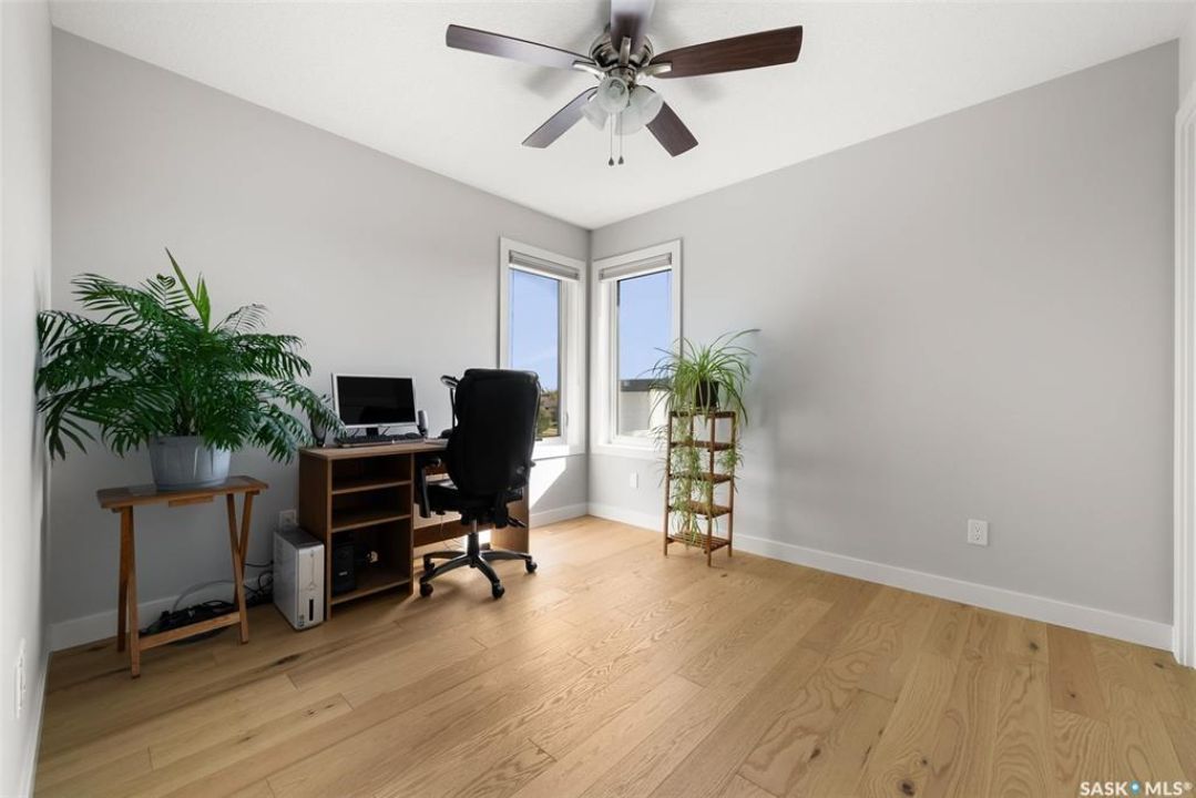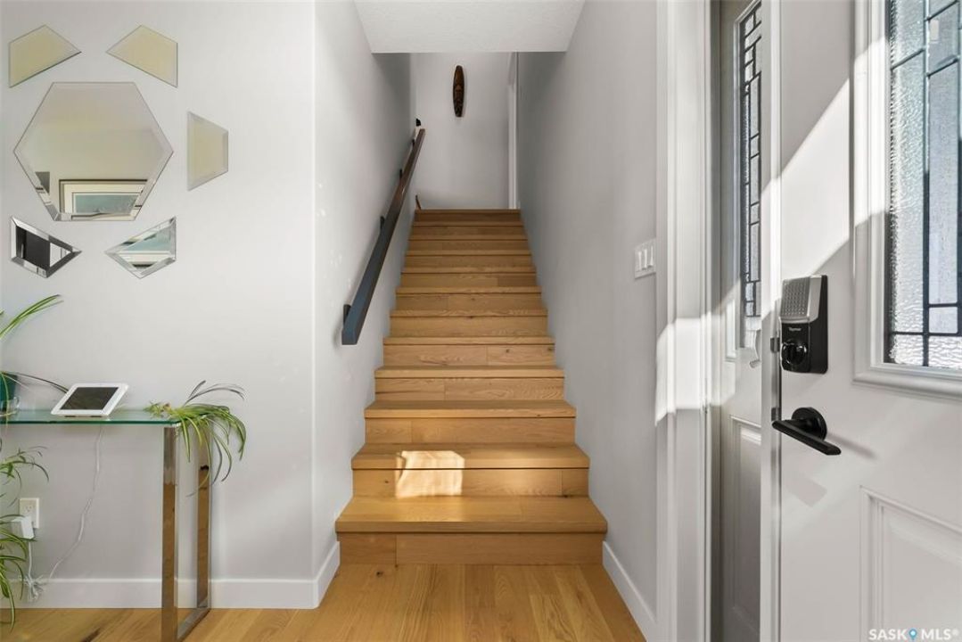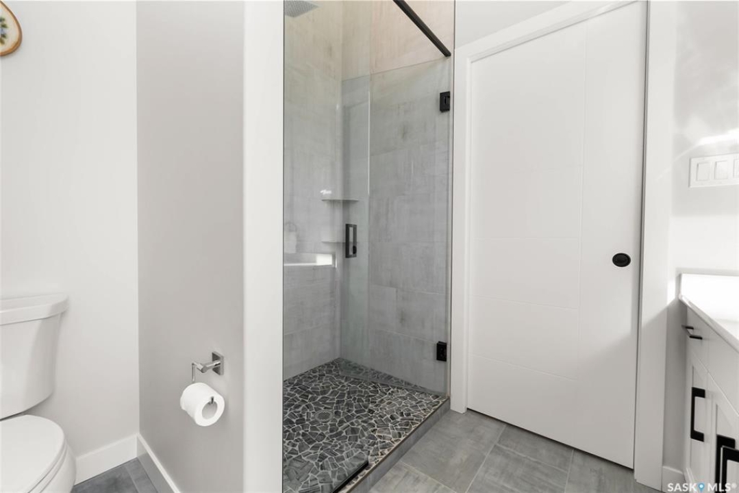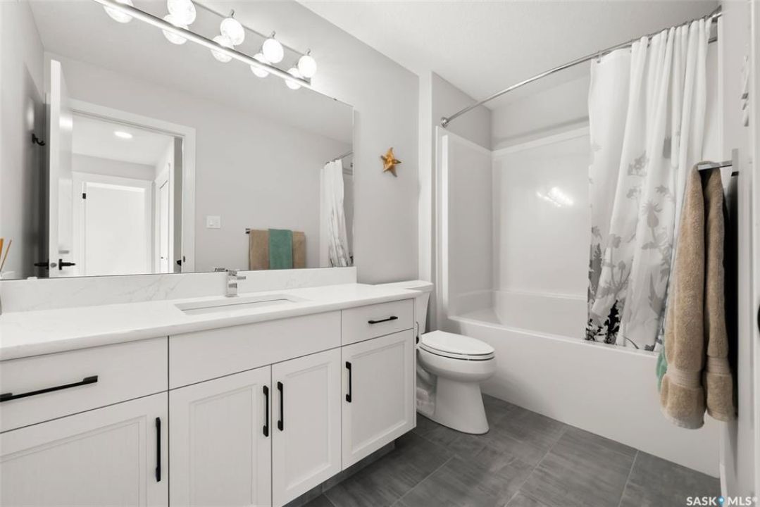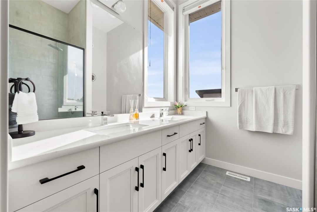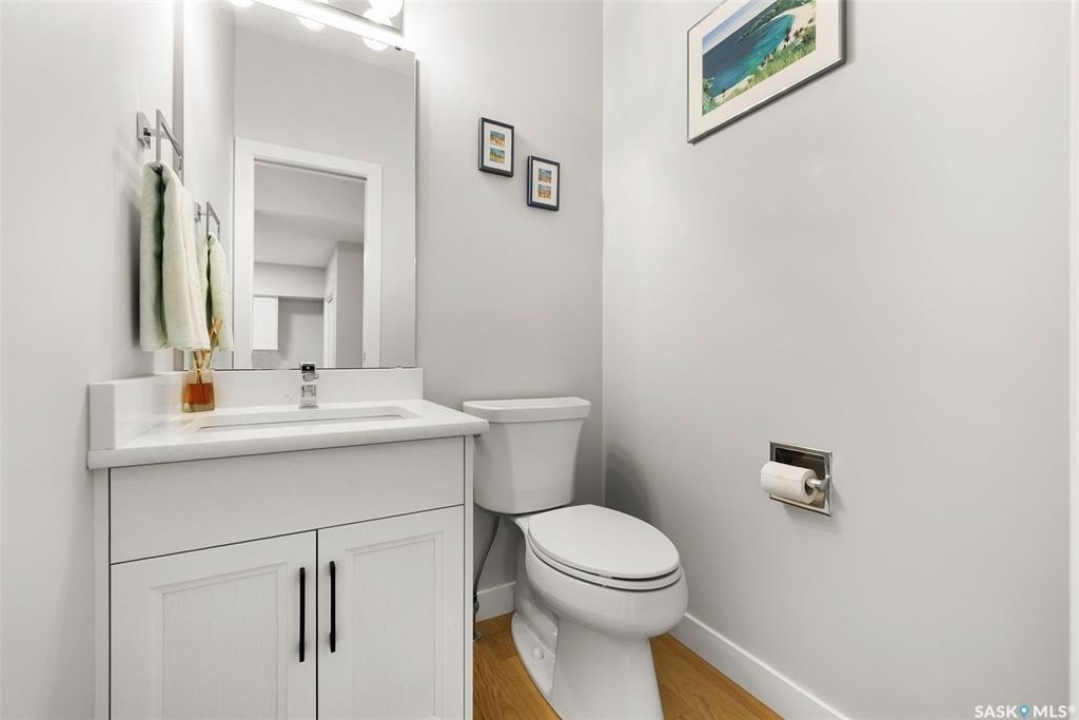 Welcome to 408 Hillside Drive in Pilot Butte! Built in 2020, this impressive 2-storey home offers over 1,700 sq. ft. of thoughtfully designed living space plus a triple attached garage. With modern finishes, premium upgrades, and a prairie backdrop, it's the perfect blend of style, comfort, and functionality. The main floor showcases an open-concept layout with engineered hardwood flooring and 2x6 construction on 16” centers. A bright living room centers around a remote-controlled gas fireplace with stone surround, while oversized windows fitted with Hunter Douglas top-down/bottom-up blinds capture expansive views. The chef's kitchen boasts quartz countertops, custom cabinetry with under-cabinet lighting, subway tile backsplash, stainless steel appliances including a granite sink, a large island, and walk-in pantry. The dining area opens onto a spacious deck, ideal for entertaining, while a powder room and mudroom with laundry complete this level. Upstairs, the primary suite impresses with 10' ceilings, a walk-in closet, and spa-inspired ensuite with dual sinks and custom tiled shower. Two additional bedrooms, a full bath, and a bonus room with balcony access offer versatility for family living. The basement is open for development, with exterior walls spray-foamed and drywalled—ready for your personal touch. Notable upgrades include a whole-home water filtration system, surge protection, central A/C, on-demand hot water, and hot/cold water taps in the garage. Curb appeal shines with a fully insulated triple garage, exposed aggregate driveway, and beautifully landscaped yard. The backyard retreat features underground sprinklers, raised garden beds, lush lawn, a composite deck, and tiled patio backing green space—perfect for enjoying Saskatchewan sunsets. This home combines quality construction, thoughtful upgrades, and an unbeatable Pilot Butte location. Truly move-in ready for its next proud owner. NOTE: 2 outdoor cameras are NOT included