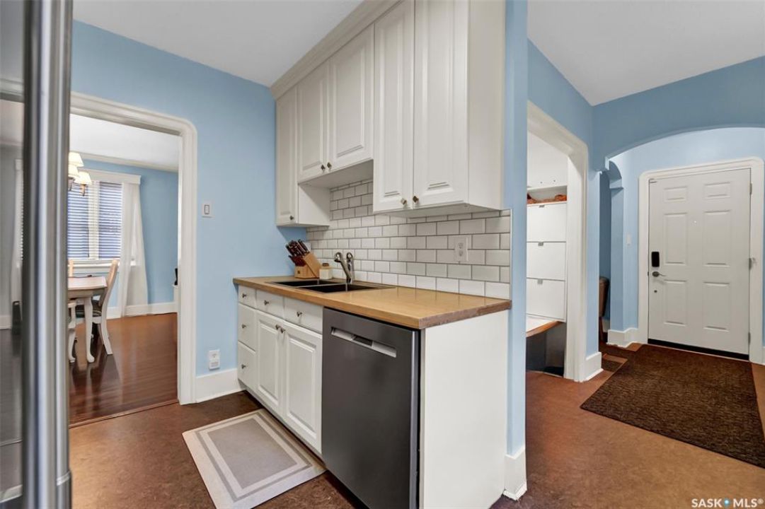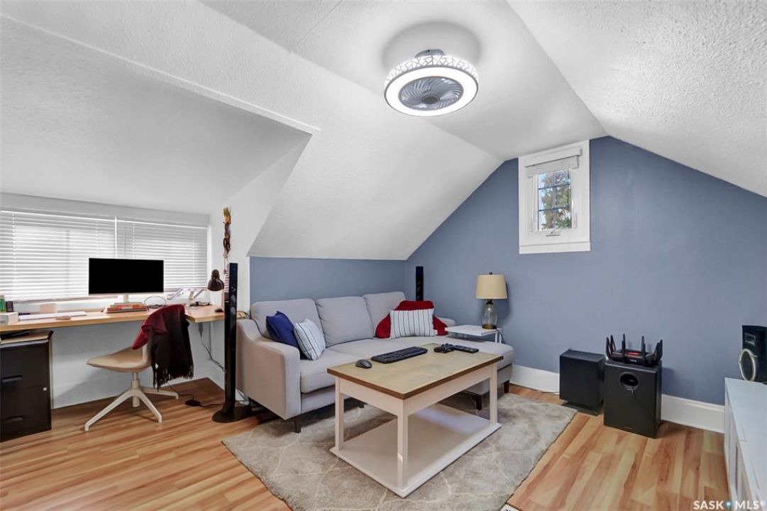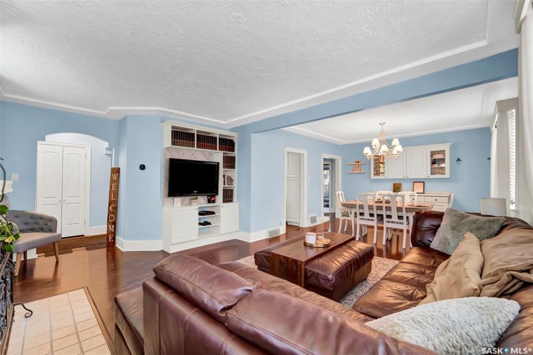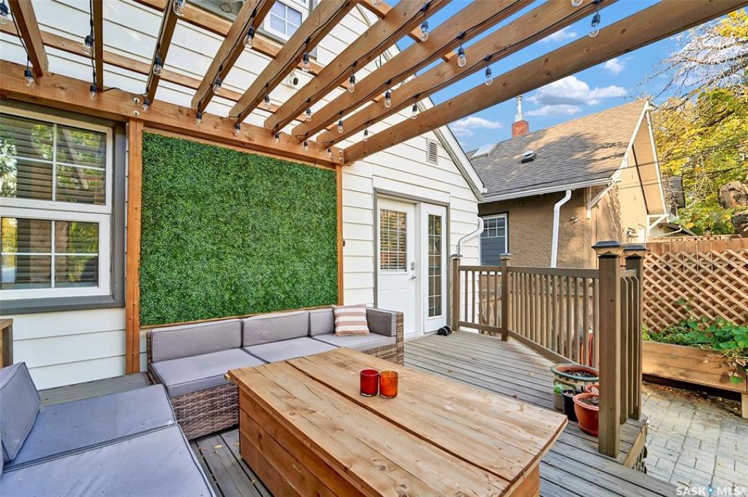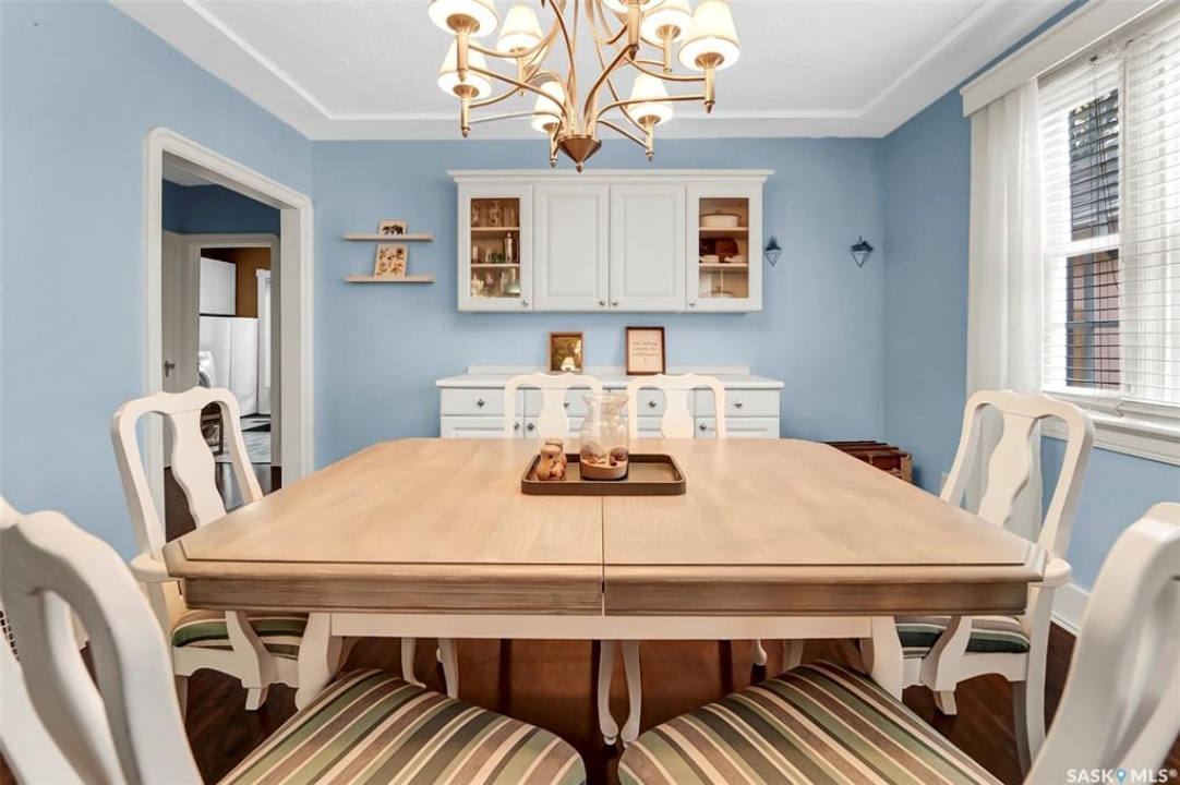 Welcoming investors and home ownership to this beautifully updated 1 ľ story home in Buena Vista! From the moment you step inside, you'll feel the perfect balance of modern updates and original character.Charming details such as arched doorways, original moldings, and ceiling accents set the tone, while the bright living room with its gorgeous original fireplace opens seamlessly into the spacious dining room, complete with built-in cabinets and serving area. The galley-style kitchen is both stylish and functional, featuring stainless steel appliances, white cabinetry, and a unique backsplash design. A large main-floor bedroom offers comfort and convenience. Practicality shines with the generous mudroom, complete with locker-style storage, and a laundry room located off the back entry with plenty of space for sorting and folding. Upstairs, you'll find two spacious bright bedrooms with charming sloped ceilings. The basement offers an LEGAL Suite. $25,000 in Plumbing Upgrades, 220 AMP Electrical Panel – $5,000 Upgrade This home has undergone extensive updates to give you peace of mind and modern comfort. From plumbing throughout to a powerful 220 AMP electrical upgrade, all the heavy lifting is done – just move in and make it yours! including a cozy family room, two additional large bedrooms, and a 3-piece bath. Step outside to enjoy the private backyard—perfect for relaxing, BBQs, or entertaining—with both deck and patio spaces, garage, 2 parking spots for both tenants and owner and one in the front for easy convenience. Located in one of Saskatoon's most desirable areas, you'll be within walking distance to Broadway, the river, and downtown. This home truly has it all—character, updates, and an unbeatable location!