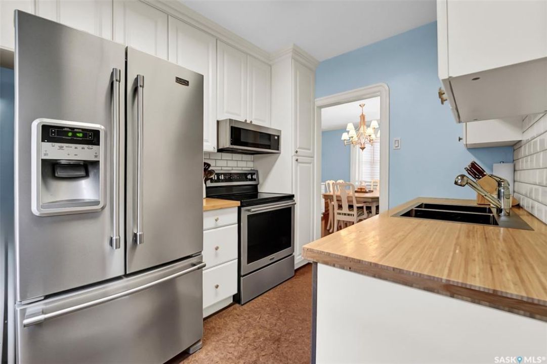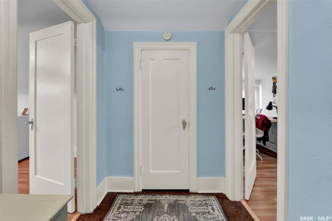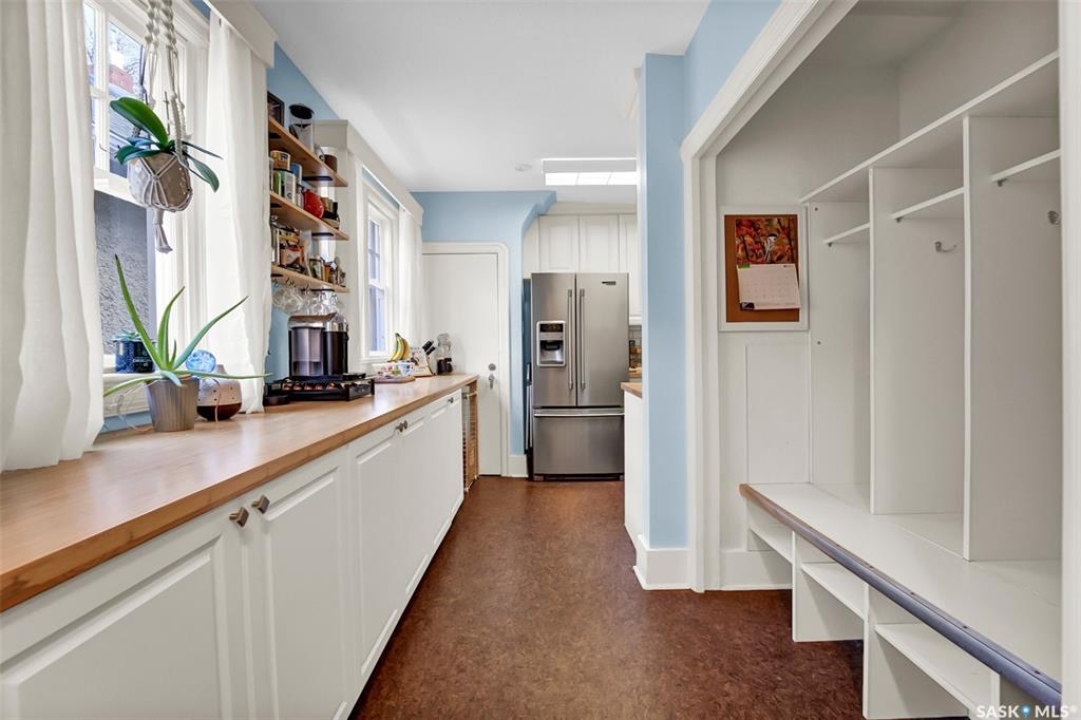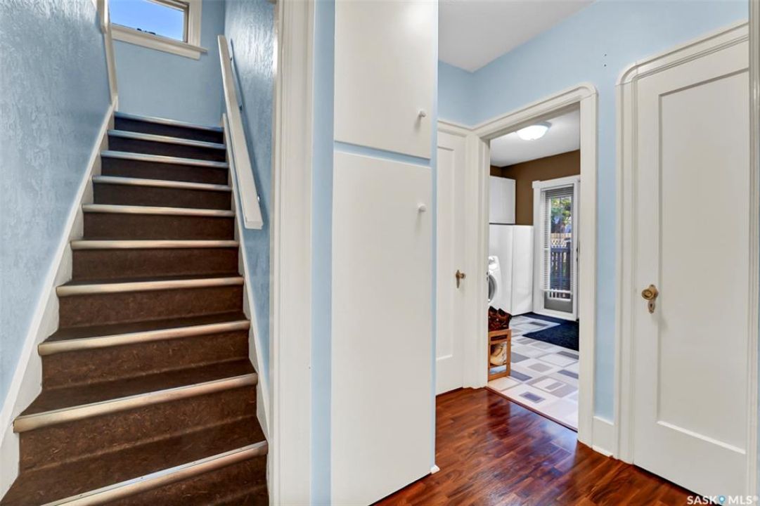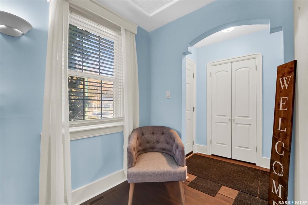 Welcoming investors and home ownership to this beautifully updated 1 ľ story home in Buena Vista! From the moment you step inside, you'll feel the perfect balance of modern updates and original character.Charming details such as arched doorways, original moldings, and ceiling accents set the tone, while the bright living room with its gorgeous original fireplace opens seamlessly into the spacious dining room, complete with built-in cabinets and serving area. The galley-style kitchen is both stylish and functional, featuring stainless steel appliances, white cabinetry, and a unique backsplash design. A large main-floor bedroom offers comfort and convenience. Practicality shines with the generous mudroom, complete with locker-style storage, and a laundry room located off the back entry with plenty of space for sorting and folding. Upstairs, you'll find two spacious bright bedrooms with charming sloped ceilings. The basement offers an LEGAL Suite. $25,000 in Plumbing Upgrades, 220 AMP Electrical Panel – $5,000 Upgrade This home has undergone extensive updates to give you peace of mind and modern comfort. From plumbing throughout to a powerful 220 AMP electrical upgrade, all the heavy lifting is done – just move in and make it yours! including a cozy family room, two additional large bedrooms, and a 3-piece bath. Step outside to enjoy the private backyard—perfect for relaxing, BBQs, or entertaining—with both deck and patio spaces, garage, 2 parking spots for both tenants and owner and one in the front for easy convenience. Located in one of Saskatoon's most desirable areas, you'll be within walking distance to Broadway, the river, and downtown. This home truly has it all—character, updates, and an unbeatable location!