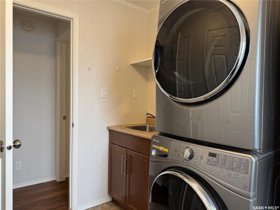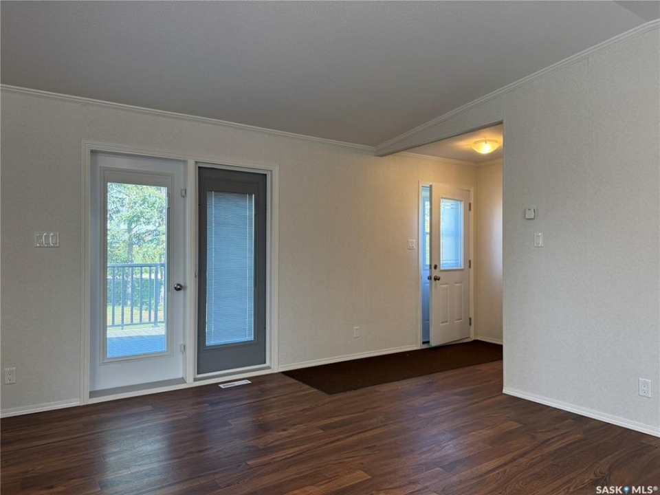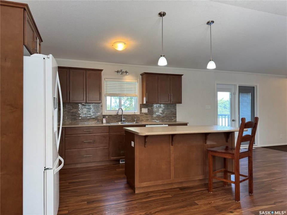 Welcome to 226 Hopp Street in Jansen! This home has a super functional layout with two bedrooms and a full bath at the front, and a spacious primary suite at the back complete with walk-in closet and en suite. You'll love the open concept living, dining, and kitchen area—tons of space, a gas fireplace to cozy up by, and patio doors that open to the deck. The kitchen's got loads of storage, including pot drawers and a walk-in pantry, plus the laundry and utility room are just off the back for easy access. Outside, there's room to roam with three lots totaling 125 feet across. The detached 26x44 garage is a dream—heated main area, workshop, lockable, and cold room. Tons of space to tinker, store, or just hang out. It's laid-back living with lots of extras. Come check it out!