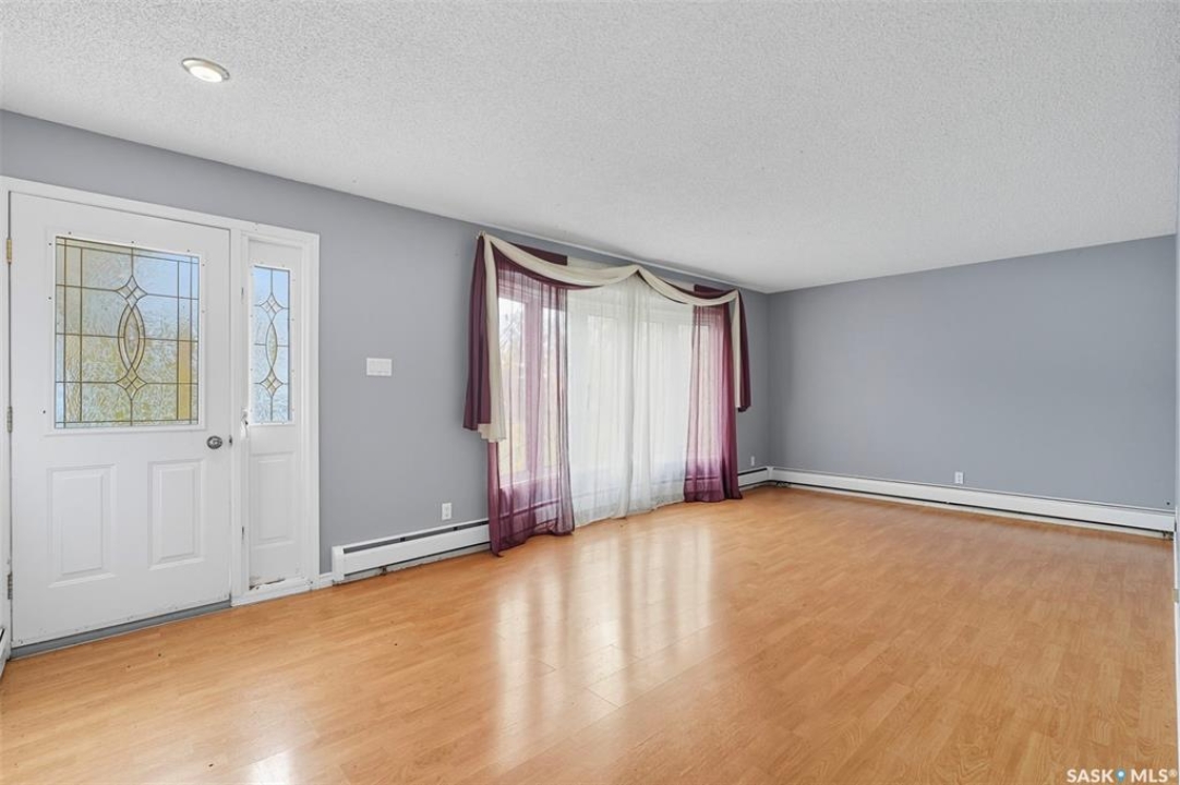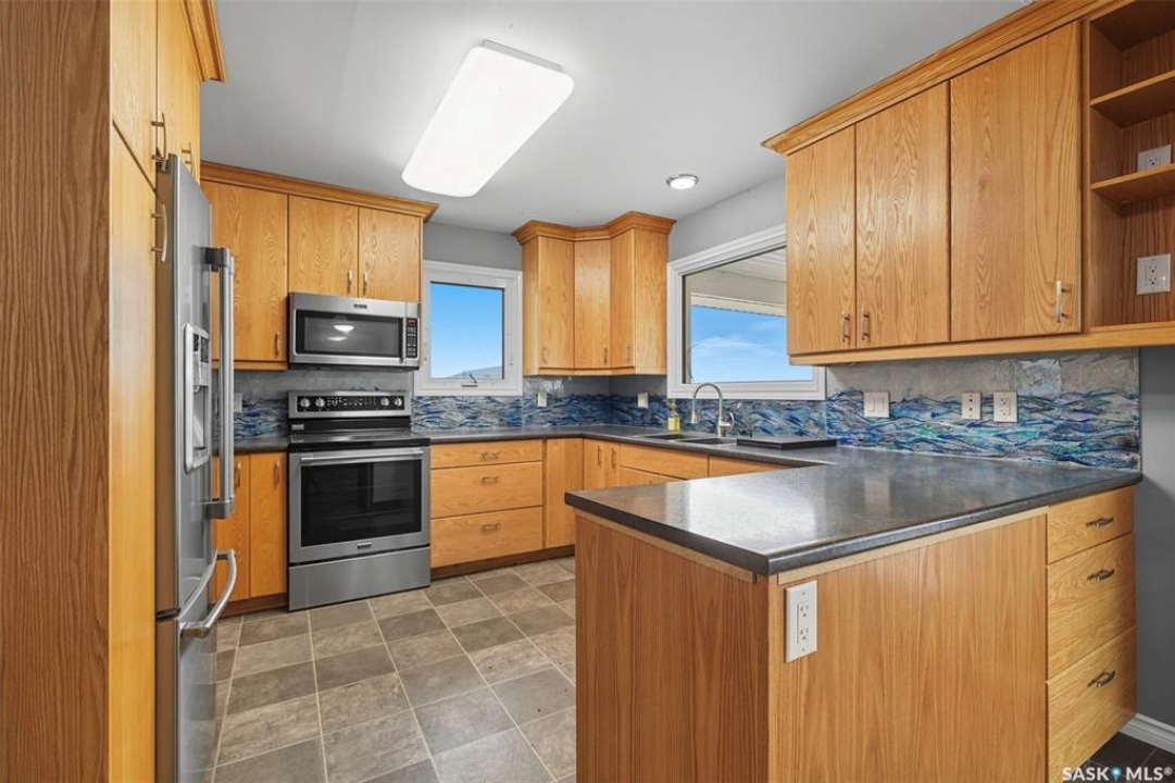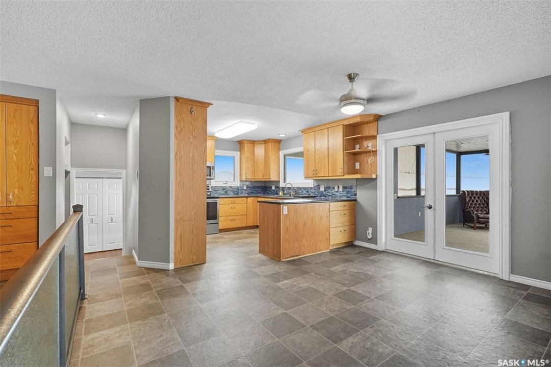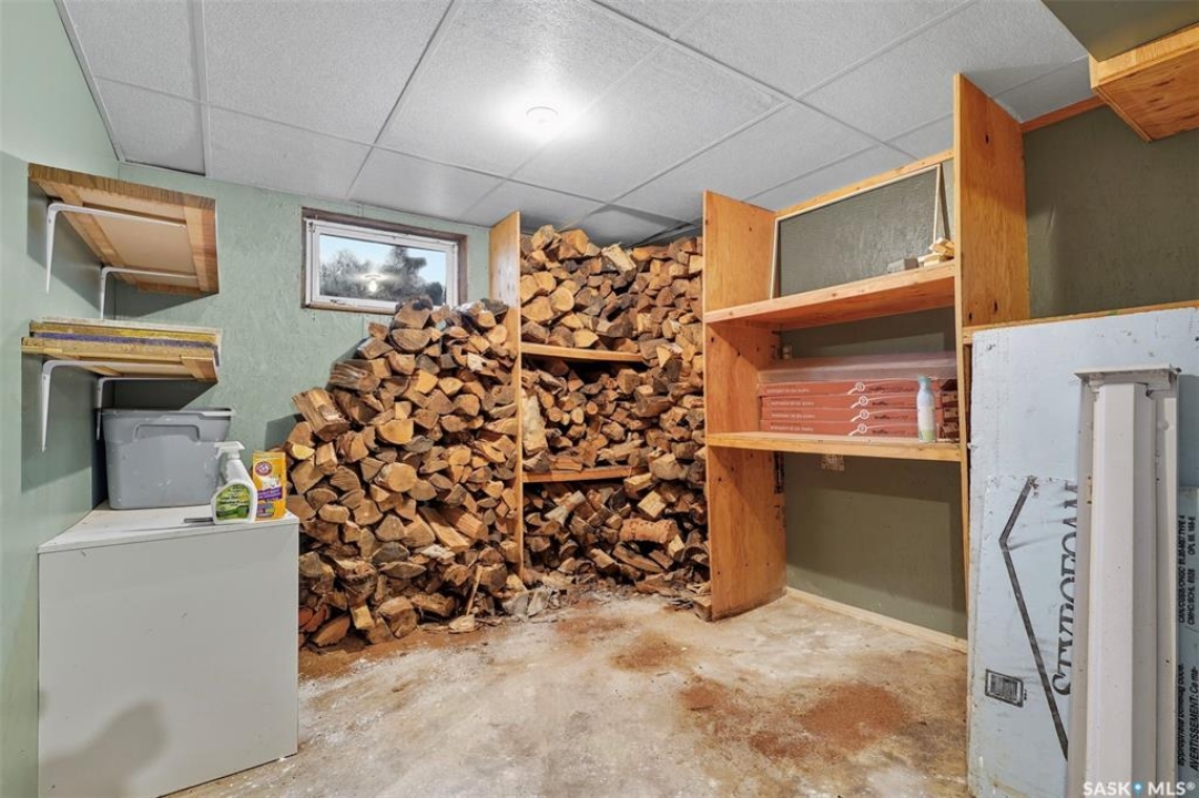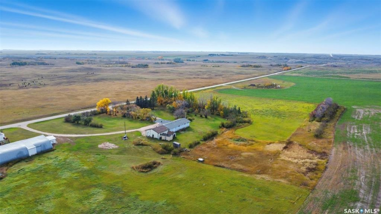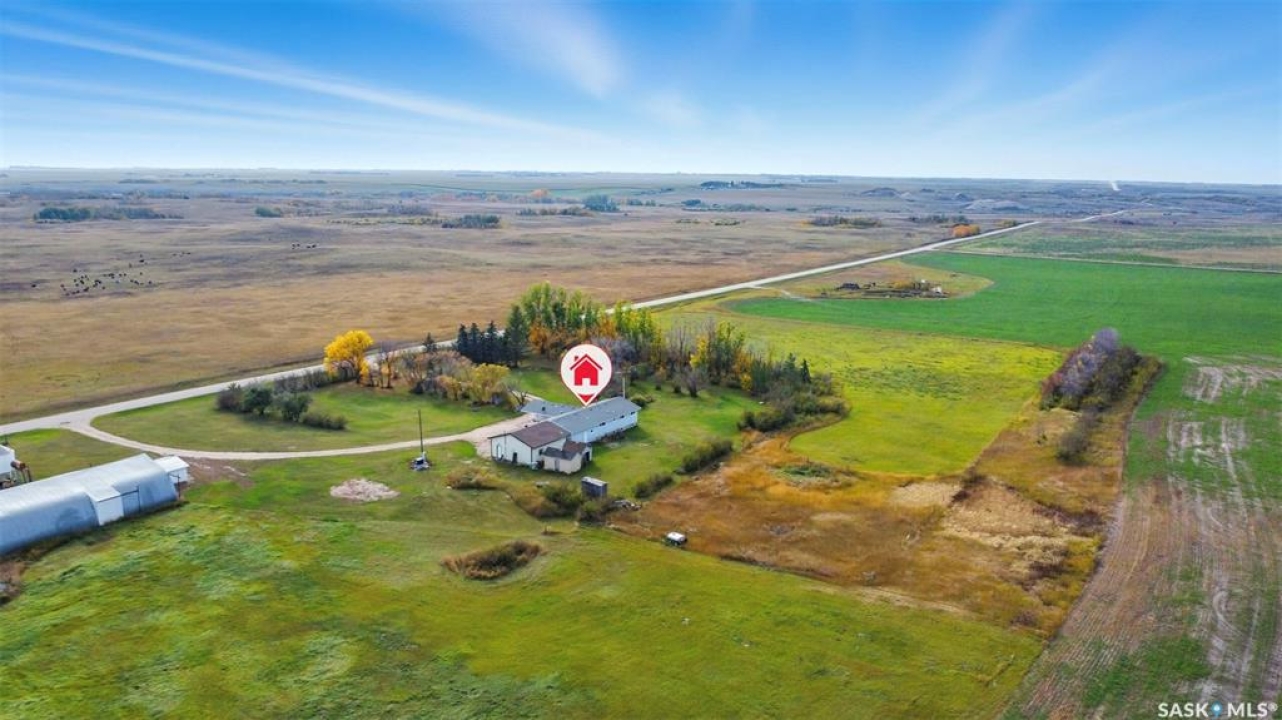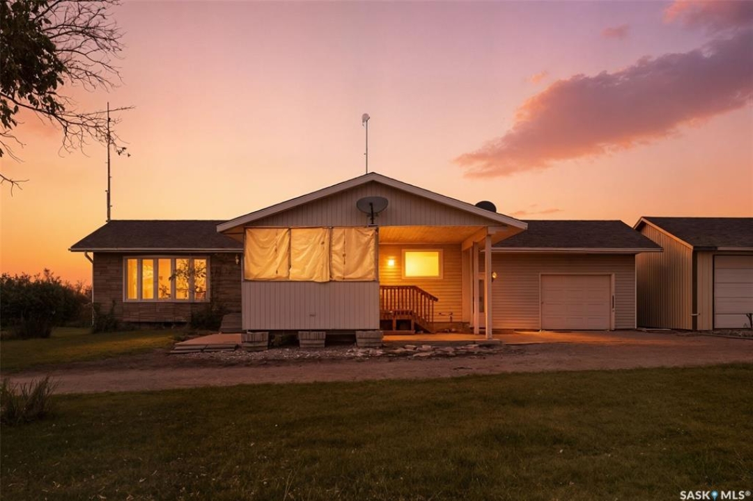 Discover the perfect blend of rural tranquility and modern living with this spacious 1,521 sq ft bungalow situated on 7 acres, under 10 min to Watrous and a short drive to Nutiren Lanigan and BHP Jansen mine sites. Ideal for families, commuters, or anyone seeking space and privacy in a convenient location. Step in the side door to a large mudroom that gives access to the attached single garage, basement or kitchen. Kitchen offers tons of workspace and storage - you'll love the custom oak cabinets! This well-maintained home offers 3 bedrooms, 3 bathrooms, and an open-concept layout that includes a bright kitchen, large living room, and dedicated dining area with patio doors that lead to a newly added covered deck. Basement offers additional living space with a wood fireplace and storage. Recent upgrades include new boiler January 2025,New septic line/RO System April 2025, upgraded electric panel 2021. Boiler heat is cost efficient, with floor heat in kitchen. Enjoy panoramic prairie views, mature yard site, and plenty of space for hobbies, gardening, or outbuildings. Access is easy via a well-maintained road, and services including well power, well and septic are in place.