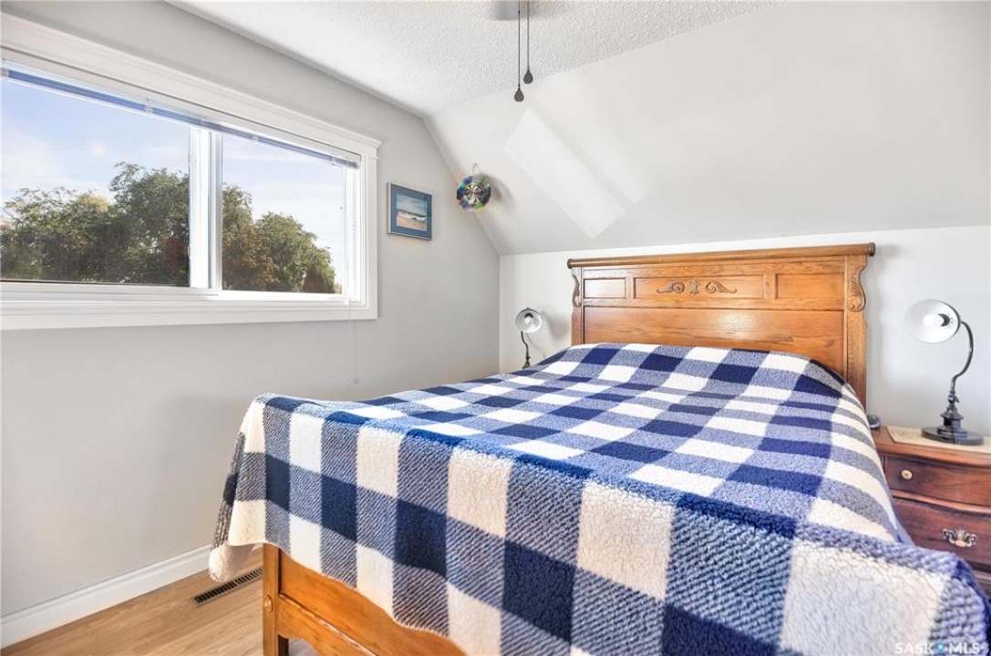 A true gem on Goshen Place—this 913 sq. ft. 1 ½ story home offers three bedrooms, two bathrooms, and is in absolute mint condition. Set on a large 52' x 150' lot, it features a freshly painted exterior with new soffits, fascia, and troughs, PVC windows (2009), storm doors (2014), a 2017 hot water heater, upgraded light fixtures, shingles on house and shed (2023) and central air conditioning. The kitchen is enhanced with custom sliding drawers, while the fully finished basement provides a cozy electric fireplace and extra living space. The south-facing backyard is private, sunny, and beautifully landscaped with mature trees, vibrant flowers, fruit trees, blueberries, and strawberries. Enjoy outdoor living on the three-tier deck with included gazebo, all within a fully fenced yard complete with RV parking. Rounding out the property is a 26' x 26' garage, built in 2012, with 10' interior walls, 50 amp service, RV plugs, and trenched-in power—ideal for storage, hobbies, or recreation. This home offers the perfect balance of modern updates, outdoor beauty, and functional space—ready to move in and enjoy.