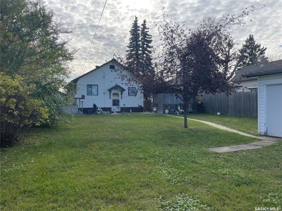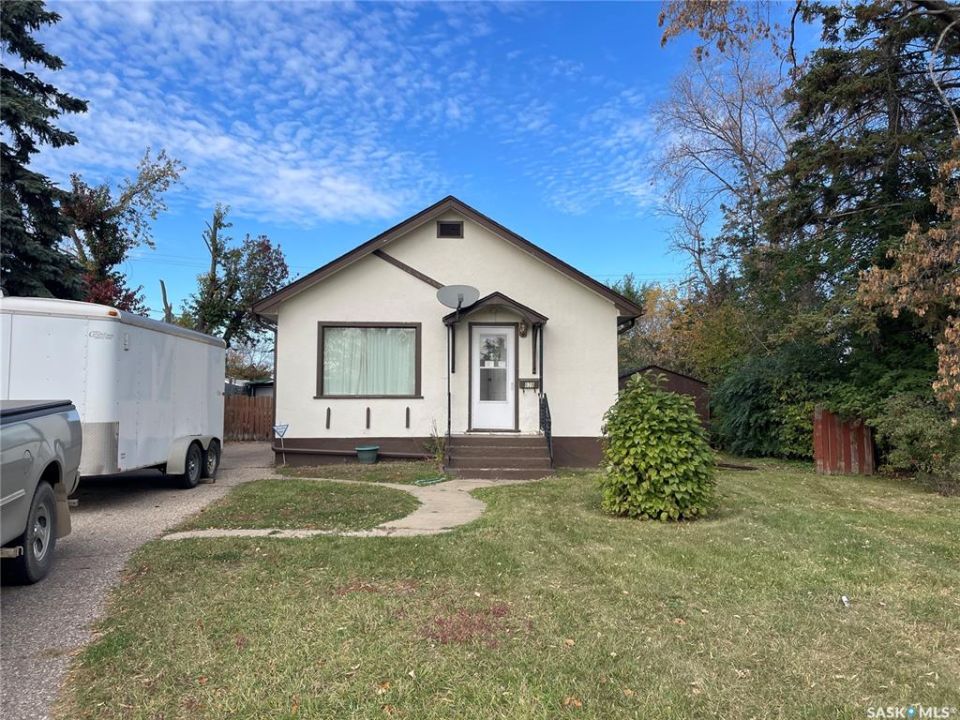 Charming 660 sq ft bungalow in East Flat, complete with a single detached garage and stucco exterior for lasting curb appeal. Inside you'll find a welcoming living and dining area, a functional kitchen with quality oak cabinets, and 2 bedrooms along with a three-piece bathroom featuring a Bathfitter shower. The basement offers a cozy family room, plenty of storage, laundry, and utility space. Features include central vac, a high-efficiency furnace, updated shingles, and appliances included. The backyard provides a spacious outdoor retreat to enjoy. Garage was built in 1983 according to city assessment.
