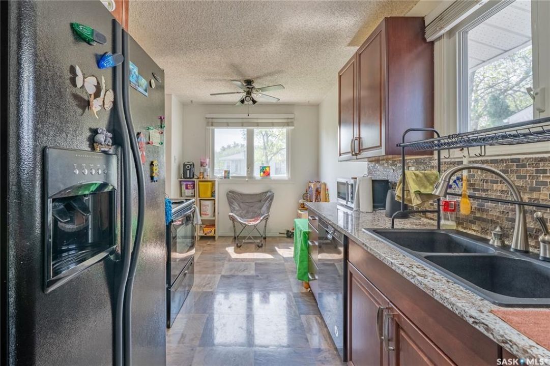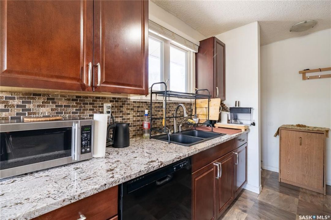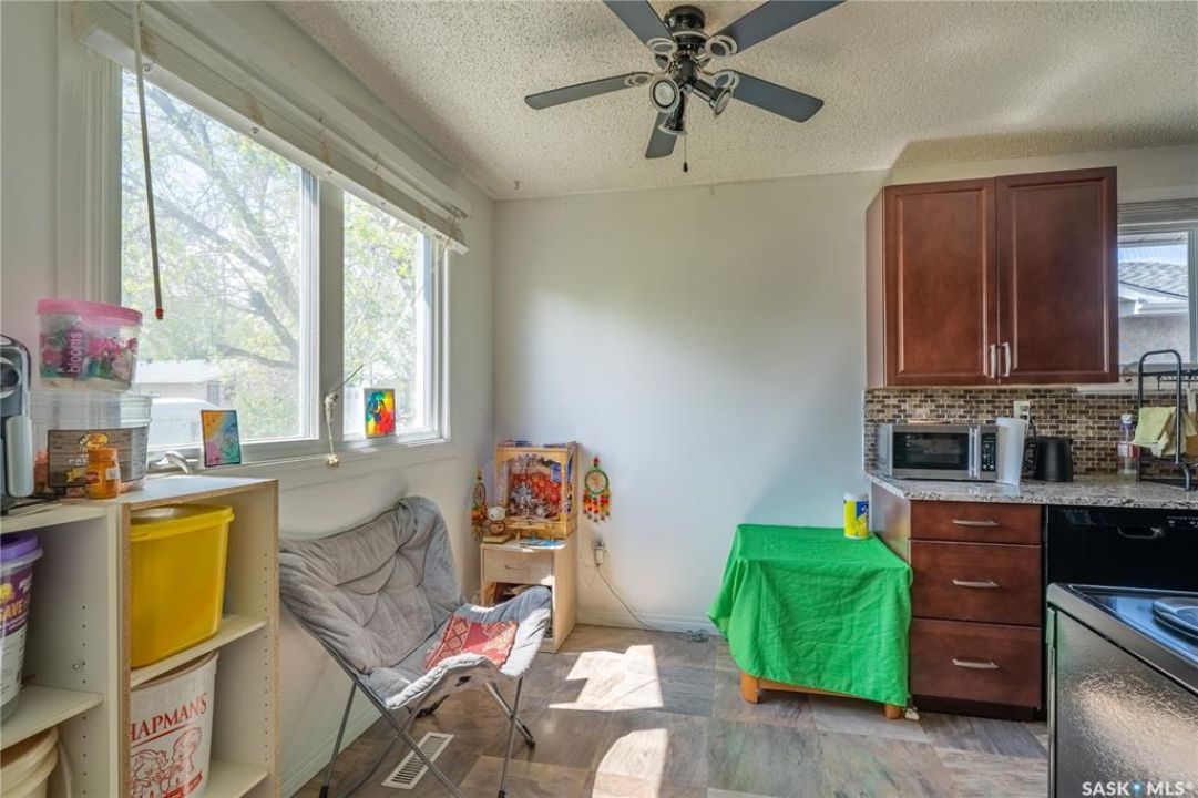 Welcome to 198 Thomson Avenue, a well maintained bungalow located in the quiet, family-friendly neighborhood of Glencairn Village. This charming corner unit is within walking distance to elementary and high schools, parks, walking paths, and convenient southeast Regina amenities. Tastefully decorated in neutral tones, it features 3 main-floor bedrooms and 2 full bathrooms, including a jet tub on the main and a jacuzzi tub in the basement. The bright living and dining area flows into an updated kitchen with modern cabinetry, granite countertops, and a designer sink. The fully finished basement offers a spacious family room, a versatile den (ideal as a guest room or office), a full bathroom, and a laundry/utility room with storage. Recent updates includes a new furnace (2022), a tankless water heater (2022), new washer (2020), newer dishwasher (2019), central A/C, and a composite deck leading to a fully fenced backyard—perfect for relaxing or entertaining. The basement is braced to engineer's specs, and the report is available. This move-in-ready home blends comfort, style, and location—book your private viewing today!