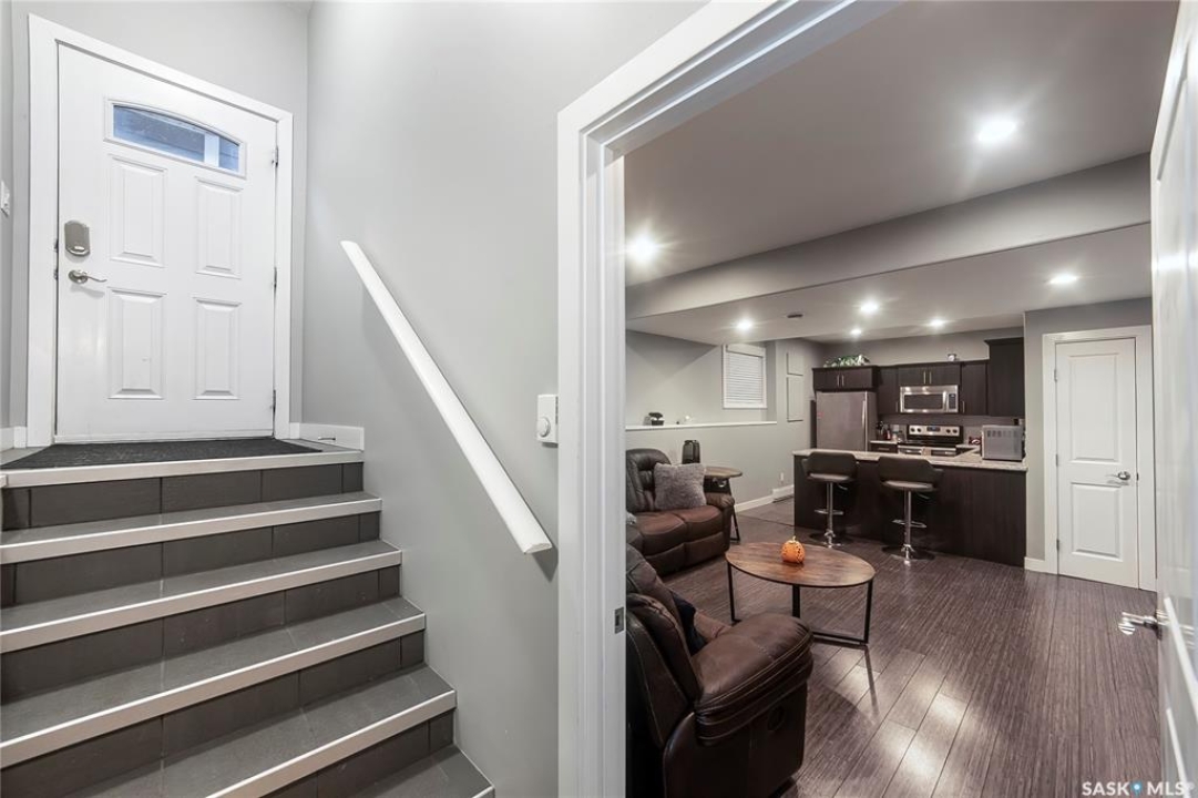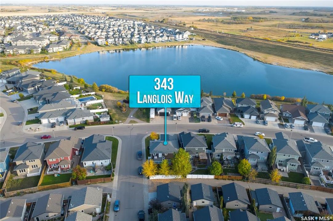 Welcome to 343 Langlois Way, a beautifully maintained 1,141 sq. ft. modified bi-level located in the highly desirable community of Stonebridge. This move-in ready home sits on a prime corner lot directly across from a tranquil pond and scenic walking trails, offering the perfect blend of comfort, functionality, and location. The main floor features a bright concept layout with a spacious living room, modern kitchen, and dining area that flows seamlessly to a stunning two-tier composite deck with glass railing—ideal for outdoor entertaining, morning coffee, or evening relaxation. The primary bedroom boasts a private 3-piece ensuite and walk-in closet, while two additional bedrooms and a 4-piece bath provide the perfect layout for families. The lower level is thoughtfully designed with a separate utility/laundry area for the main home, plus a fully self-contained legal 2-bedroom suite with its own entrance. Complete with living room, kitchen, four-piece bath, laundry, and dedicated electric hot water tank and extra storage under the stairs. The suite offers excellent income potential, a mortgage helper, or private space for multigenerational living, in-laws, or university/college students seeking independence with convenience. Outdoor living is maximized with full front and back landscaping, a fully fenced vinyl yard for privacy and low maintenance, patio space, and extra corner-lot parking. The attached 2-car garage is fully insulated and heated, equipped with cabinetry and workbench—perfect for hobbies, storage, or winter comfort. The extended driveway fits three additional vehicles, with added street parking for guests. Storage built under the deck, roughin work done for future hot water tub in the backyard. Close to schools, shopping, parks, and Stonebridge amenities, this property checks every box. Perfect for families or investors, this home is a rare find in one of Saskatoon's most sought-after neighbourhood.