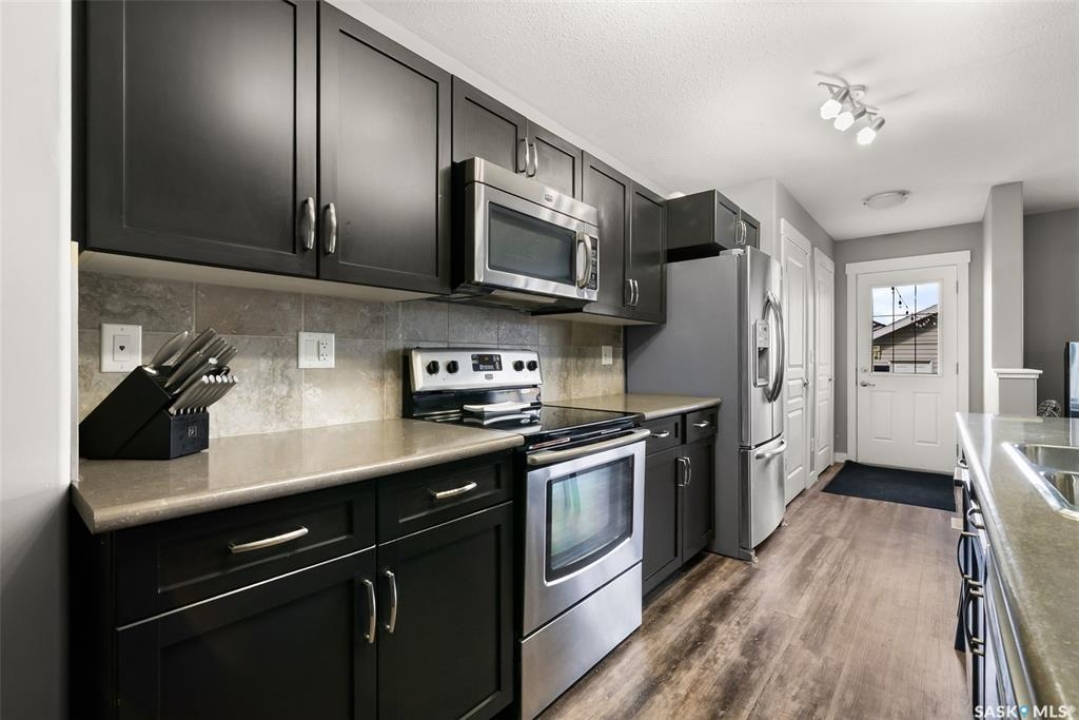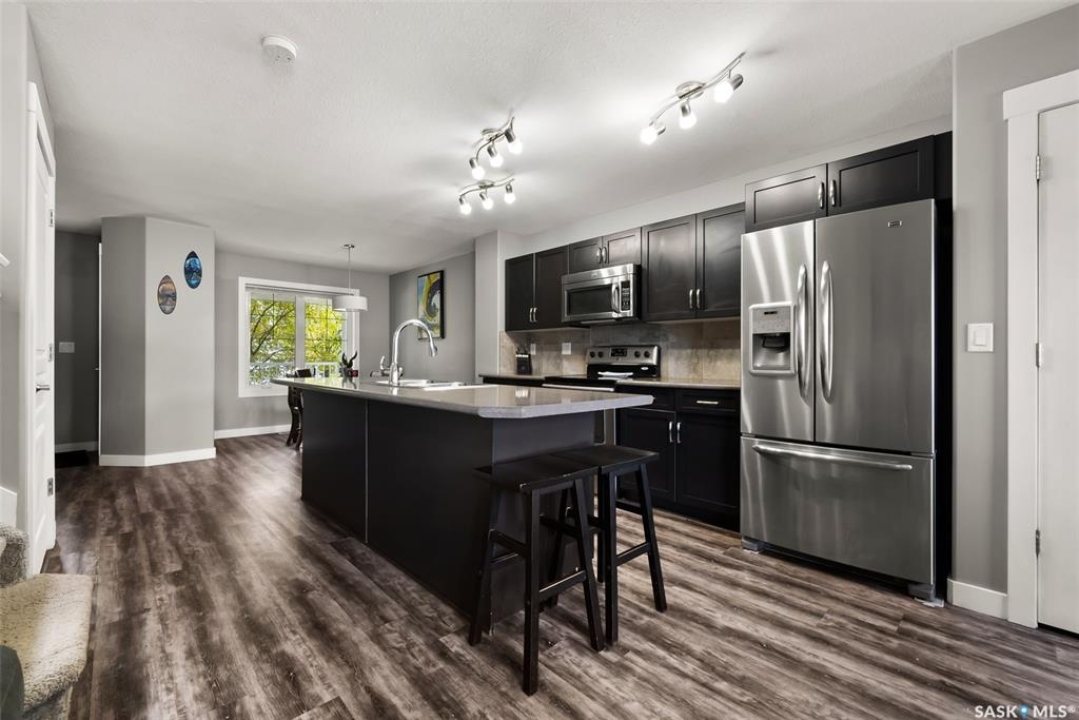 This modern 2-storey in Harbour Landing offers 1,302 sq ft of thoughtfully designed living space with 3 bedrooms + den and 4 bathrooms. On the main floor, the open kitchen is the gathering place — with a large island for morning coffee, space for family dinners, and plenty of room to host friends. Upstairs, the primary suite feels like your own retreat with a walk-in closet and ensuite, while two additional bedrooms and a full bathroom make it easy to shape the home around your lifestyle — whether that means kids, guests, or roommates. The finished basement is all about flexibility and fun, featuring a den, full bathroom with shower, and a rec room complete with a drink dispenser (option to include) — perfect for Sunday football, cozy movie nights, or casual hangouts. Step outside to a fully fenced backyard with patio lights already strung, plus a double detached garage with alley access to keep your vehicles snow-free in winter. With warm grey finishes throughout and a flexible possession date, this move-in ready home is waiting for you.