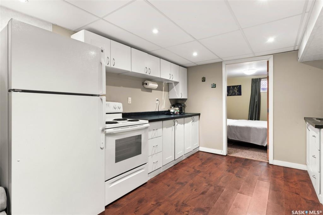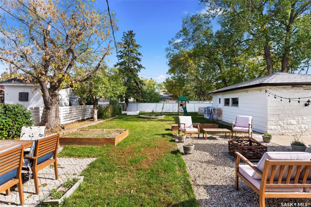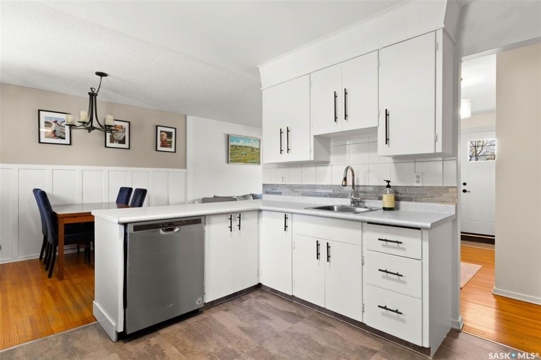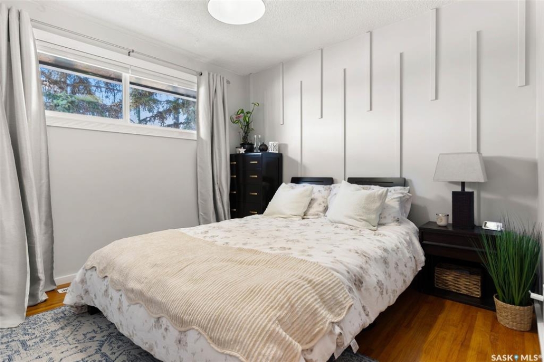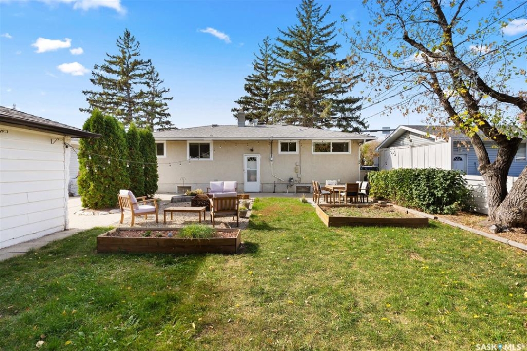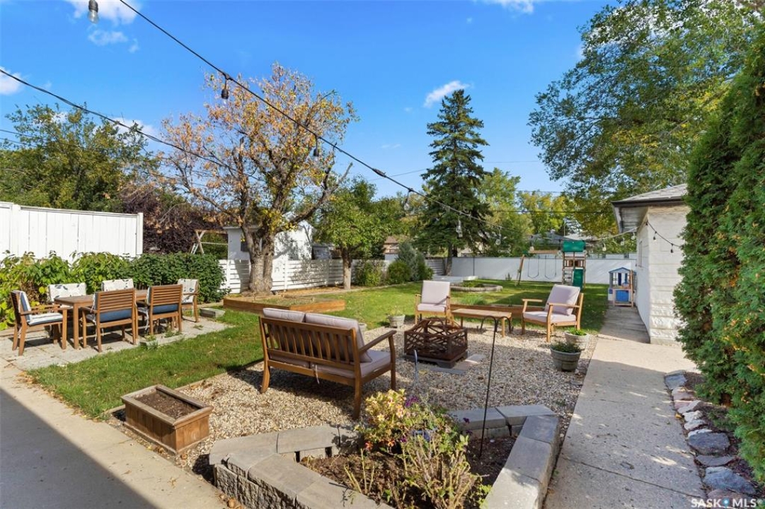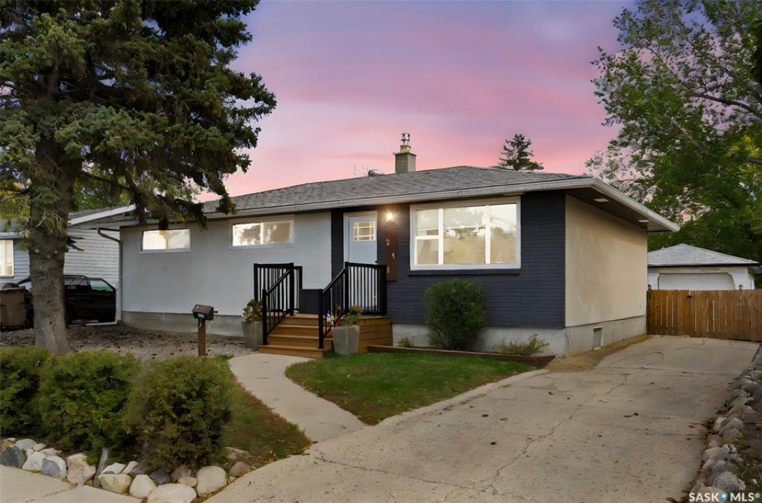 Welcome to this beautifully maintained bungalow in the heart of Coronation Park, offering a move-in ready lifestyle with the bonus of a mortgage helper basement suite. The main floor is perfect for families, featuring three spacious bedrooms and a large 5-piece bathroom. A bright and airy living room with oversized windows and gleaming hardwood floors sets the tone, while the kitchen impresses with ample cabinetry, stylish two-toned cabinets, stainless steel appliances, and durable vinyl tile flooring. Trendy feature paneling in the bedrooms adds a modern touch. The basement suite—accessible through a private back entrance—includes a full kitchen, generous dining and living space, a 3-piece bathroom, a spacious bedroom, (window may not meet egress standards) and shared laundry. For peace of mind, the lower level has been fully braced and spray foam insulated by the previous owner. Step outside to a dream backyard: fully fenced with patio seating, garden space, and room for a fire pit—perfect for family gatherings or summer entertaining. A single detached garage and driveway provide convenient parking. Recent updates adding value and peace of mind include: tub surround (2024), bathroom sink (2023), attic insulation (2024), back fence & front deck (2025), main floor fridge, stove & dishwasher (2022), chimney rebuild (2023), along with modern paint and light fixtures. All of this in a fantastic location, within walking distance to O'Neal High School, Thom Collegiate, and St. Peter's Elementary. This is a home that truly has it all—space, updates, a suite for extra income, and an unbeatable yard. Don't miss your chance to make it yours!