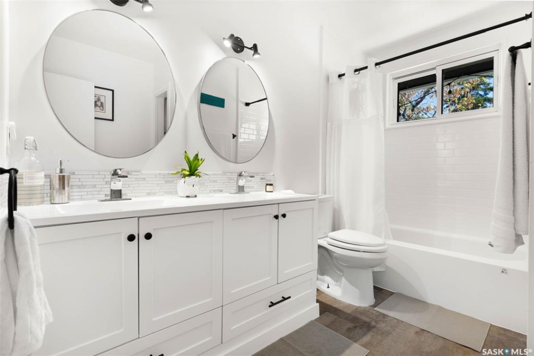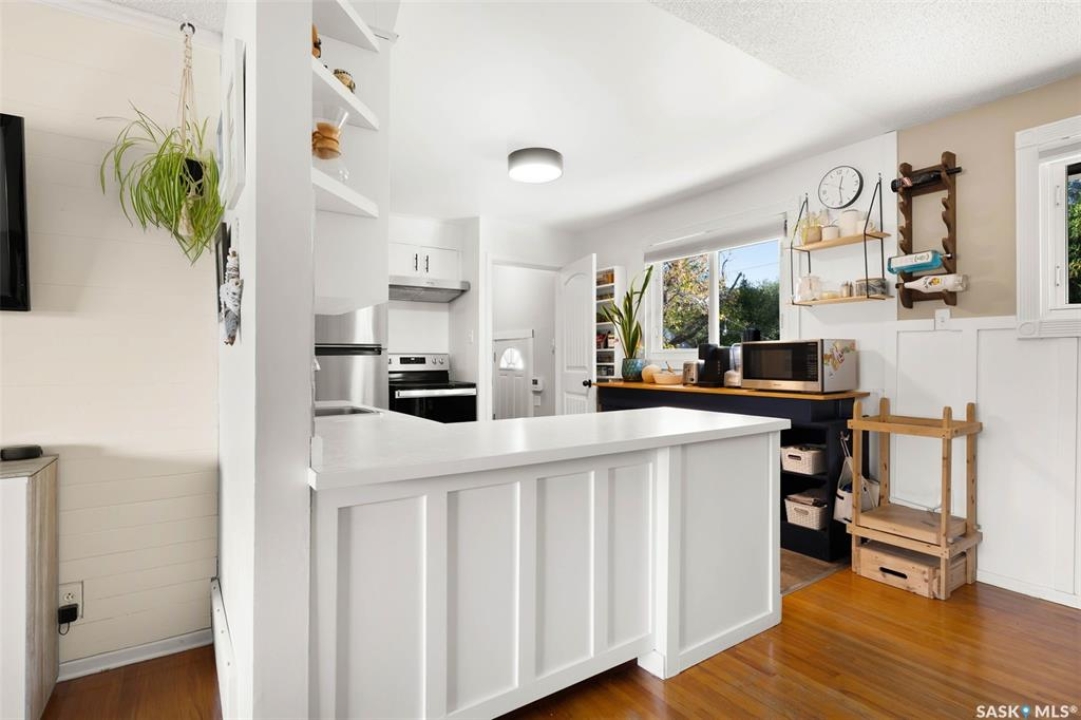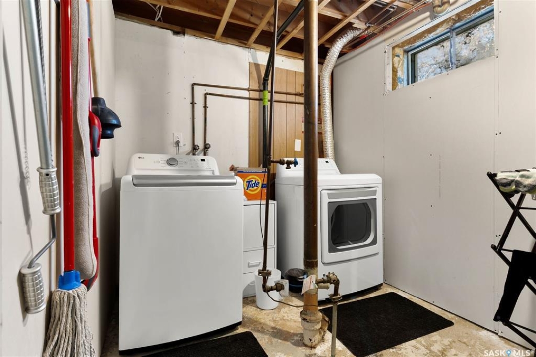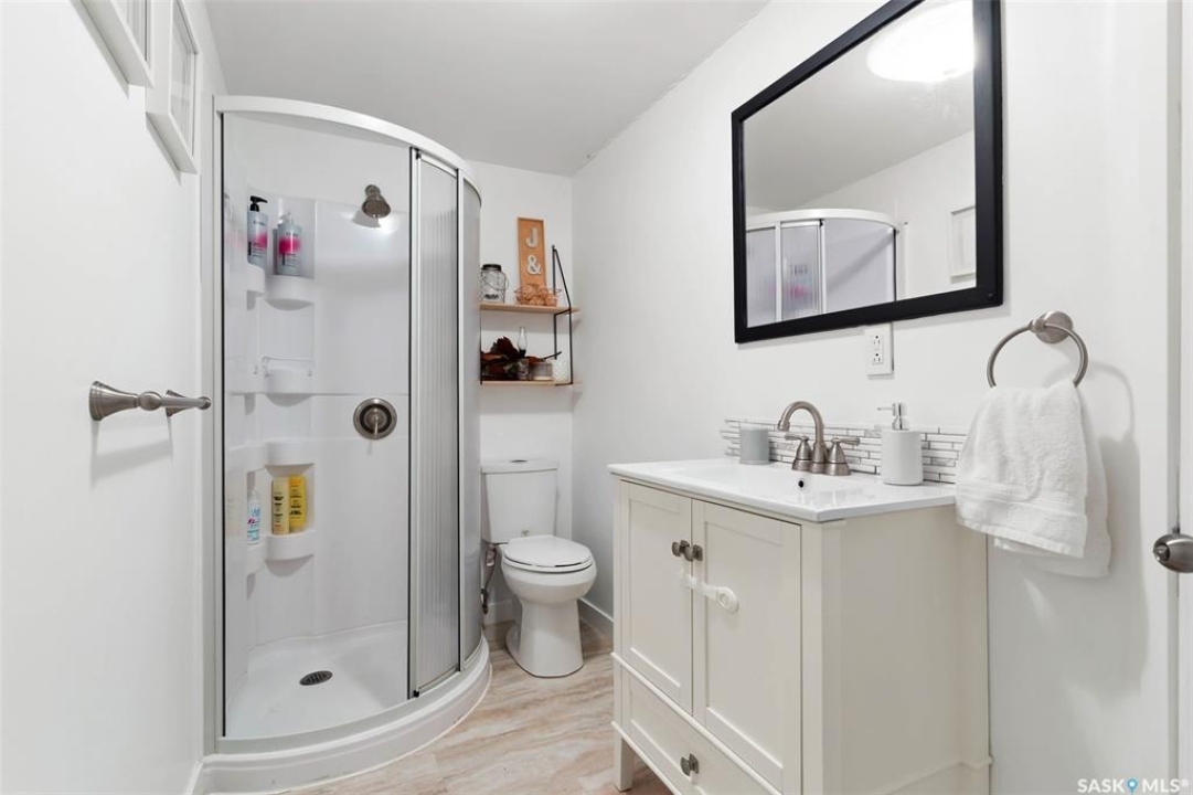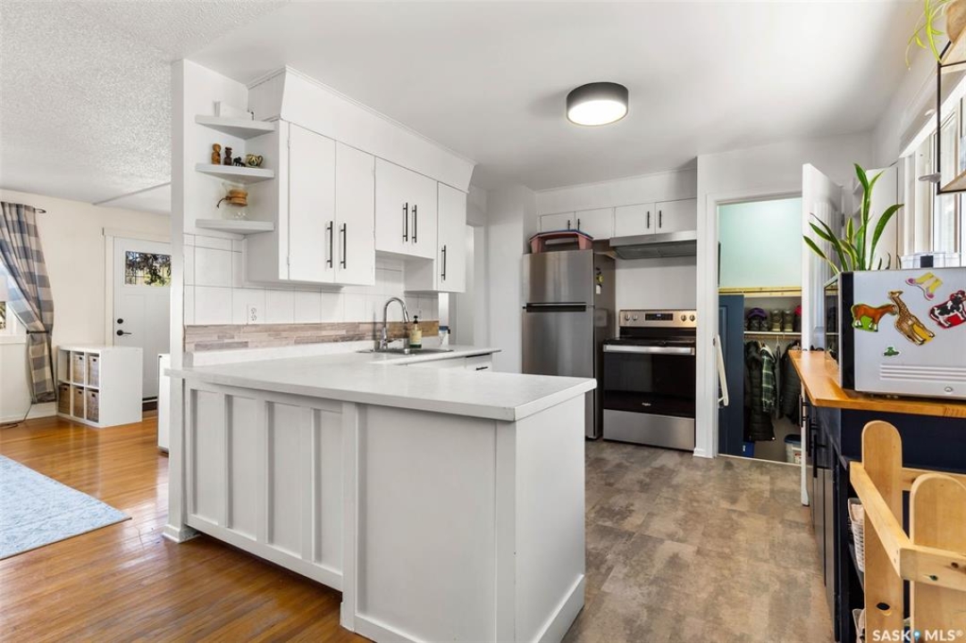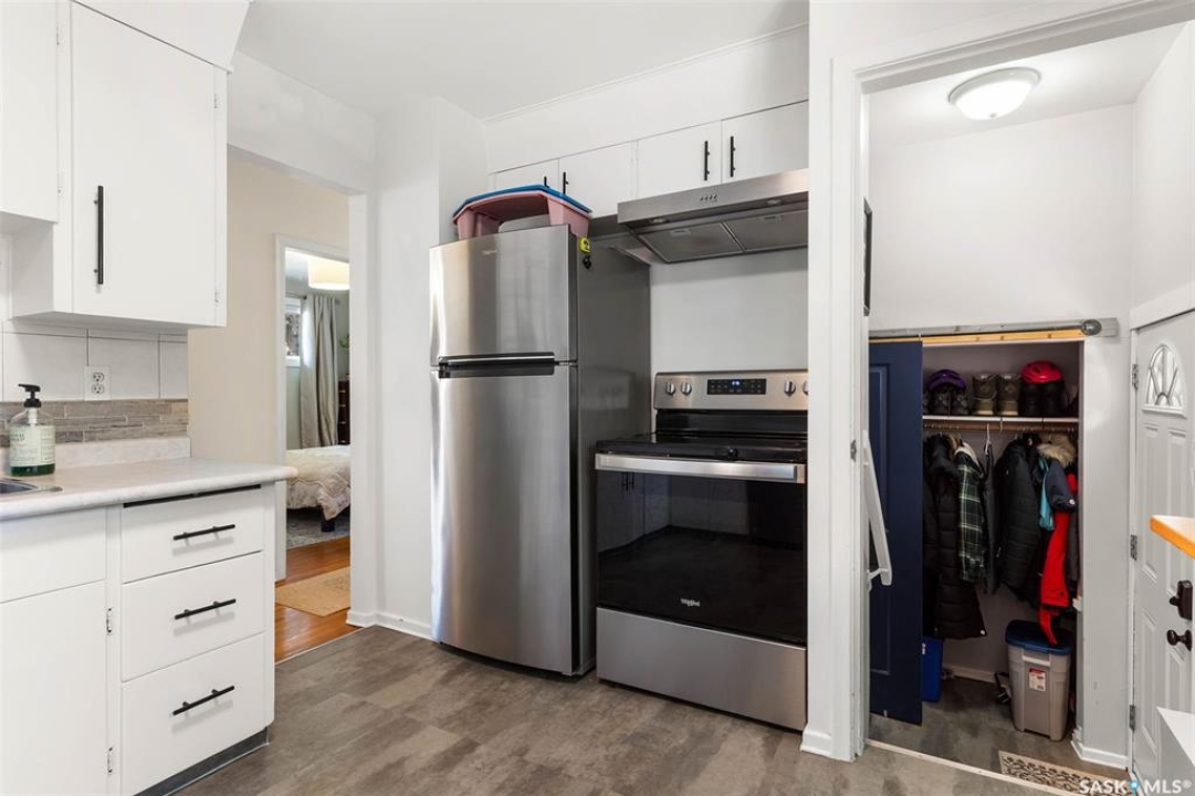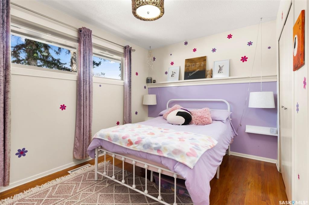 Welcome to this beautifully maintained bungalow in the heart of Coronation Park, offering a move-in ready lifestyle with the bonus of a mortgage helper basement suite. The main floor is perfect for families, featuring three spacious bedrooms and a large 5-piece bathroom. A bright and airy living room with oversized windows and gleaming hardwood floors sets the tone, while the kitchen impresses with ample cabinetry, stylish two-toned cabinets, stainless steel appliances, and durable vinyl tile flooring. Trendy feature paneling in the bedrooms adds a modern touch. The basement suite—accessible through a private back entrance—includes a full kitchen, generous dining and living space, a 3-piece bathroom, a spacious bedroom, (window may not meet egress standards) and shared laundry. For peace of mind, the lower level has been fully braced and spray foam insulated by the previous owner. Step outside to a dream backyard: fully fenced with patio seating, garden space, and room for a fire pit—perfect for family gatherings or summer entertaining. A single detached garage and driveway provide convenient parking. Recent updates adding value and peace of mind include: tub surround (2024), bathroom sink (2023), attic insulation (2024), back fence & front deck (2025), main floor fridge, stove & dishwasher (2022), chimney rebuild (2023), along with modern paint and light fixtures. All of this in a fantastic location, within walking distance to O'Neal High School, Thom Collegiate, and St. Peter's Elementary. This is a home that truly has it all—space, updates, a suite for extra income, and an unbeatable yard. Don't miss your chance to make it yours!