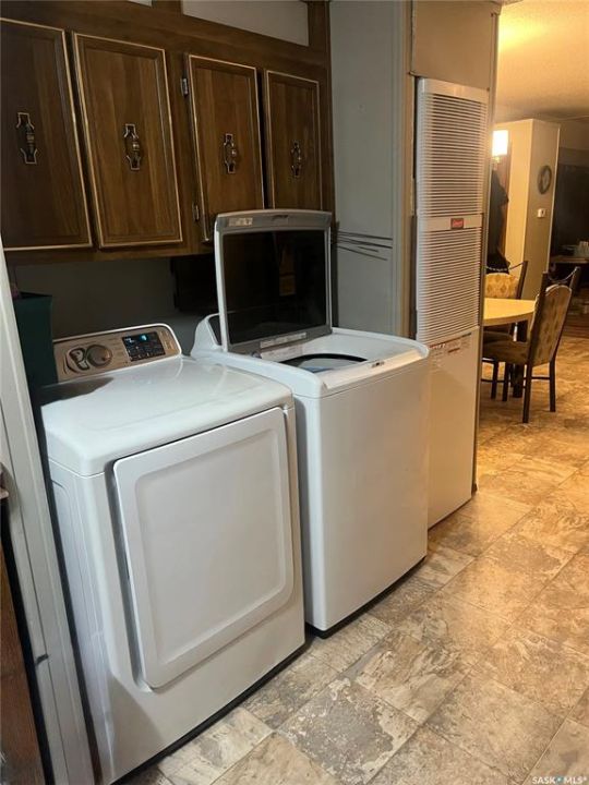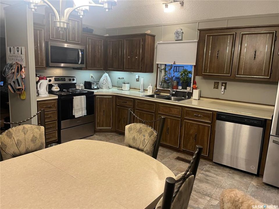 Check out this immaculate home in Wakaw, which sits on a massive 50' x 145' fully landscaped lot, offering generous lawn space and mature trees and shrubs. Enjoy the summer evenings on the large covered deck. There's a concrete drive to the attached single garage. There's a spacious living room with large windows, and the eat-in kitchen is roomy and functional, with plenty of cupboard and counter space. The large master bedroom has a full ensuite with a deep soaker style tub. At the other end of the home you'll find the secondary bedroom and an additional four-piece bath. Updates in recent years include new windows and coverings in 2017 and a new washer and dryer in 2020. New laminate flooring in the living room and master bedroom along with a new A/C unit last year. Only 35 minutes from Prince Albert and 42 minutes from Saskatoon. Call your agent today before this one is gone tomorrow.