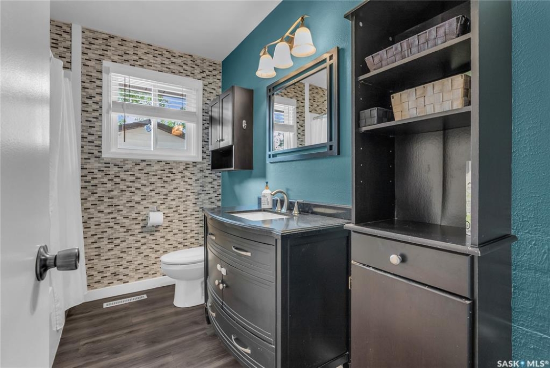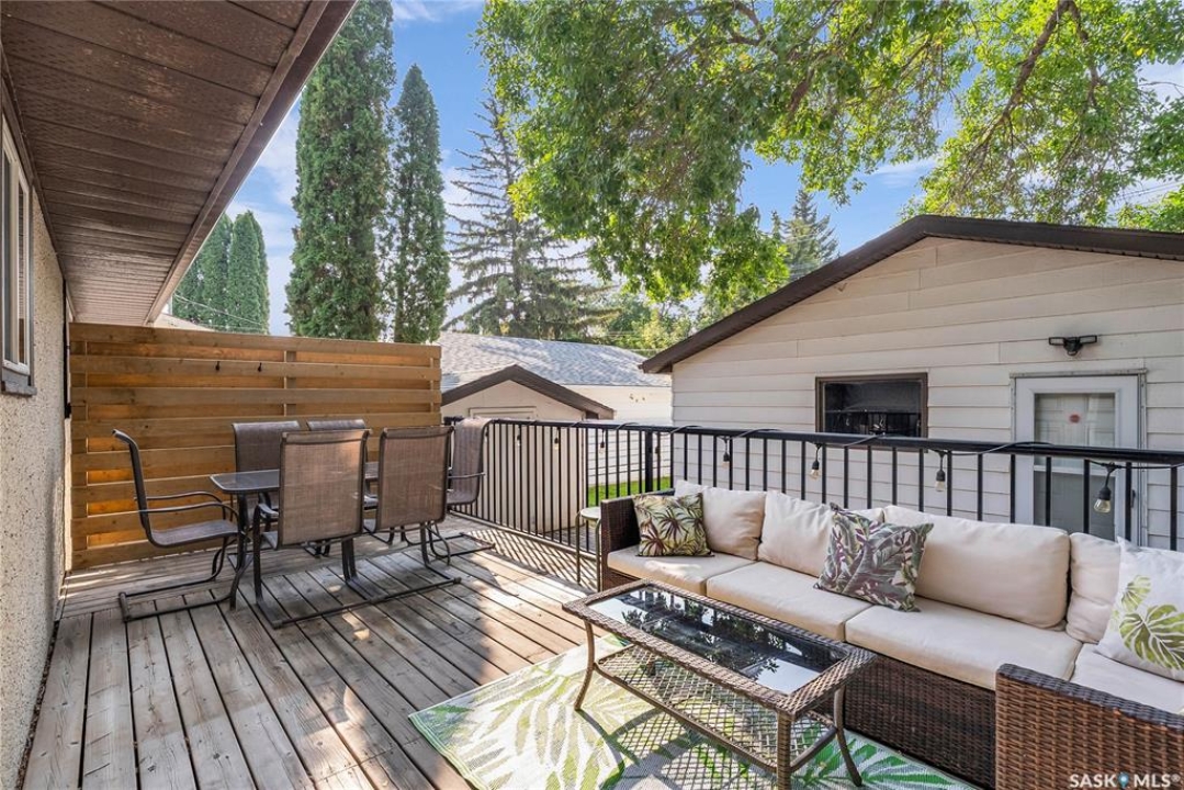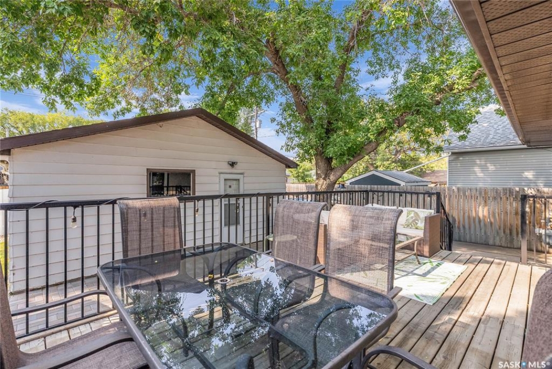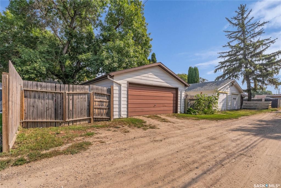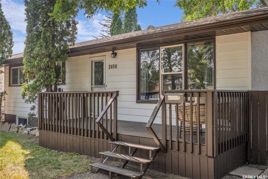 Welcome to 2414 McPherson Ave, located on a quiet, yet desirable street located in Avalon. With quick access to Circle Drive, downtown, South Saskatchewan river, and many local amenities. This 1,040 sq ft Bungalow greets you into a bright living room with laminate flooring that carries throughout the main floor. Coming around to your kitchen / dining with plenty of oak cabinets, custom backsplash, appliances including fridge, microwave, built-in oven, stovetop and dishwasher. Garden door leading you to your large back deck, with privacy wall perfect for entertaining! A spacious, king-accommodating primary bedroom, two additional bedrooms, and a modern 4-pc bath complete the main floor. Coming downstairs, you will find an open concept kitchenette / family room with a lovely wooden feature wall, recessed lighting, and newer vinyl flooring throughout. Two good sized bedrooms, a 3-pc bath with glass corner shower and tile surround, and a large storage area equipped with laundry complete your basement! Additional features of this home include a double detached garage, additional RV parking, lane access, separate access to basement, A/C, single driveway and front porch giving this home characteristic curb appeal! Must see home!