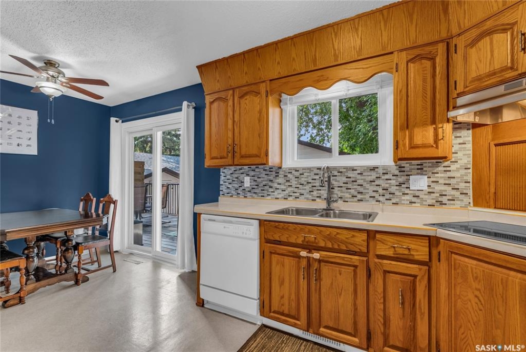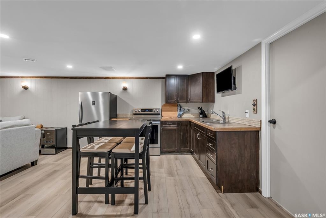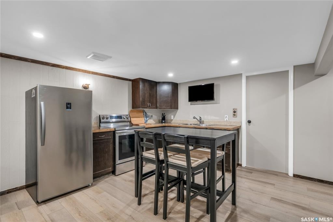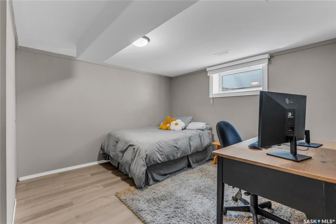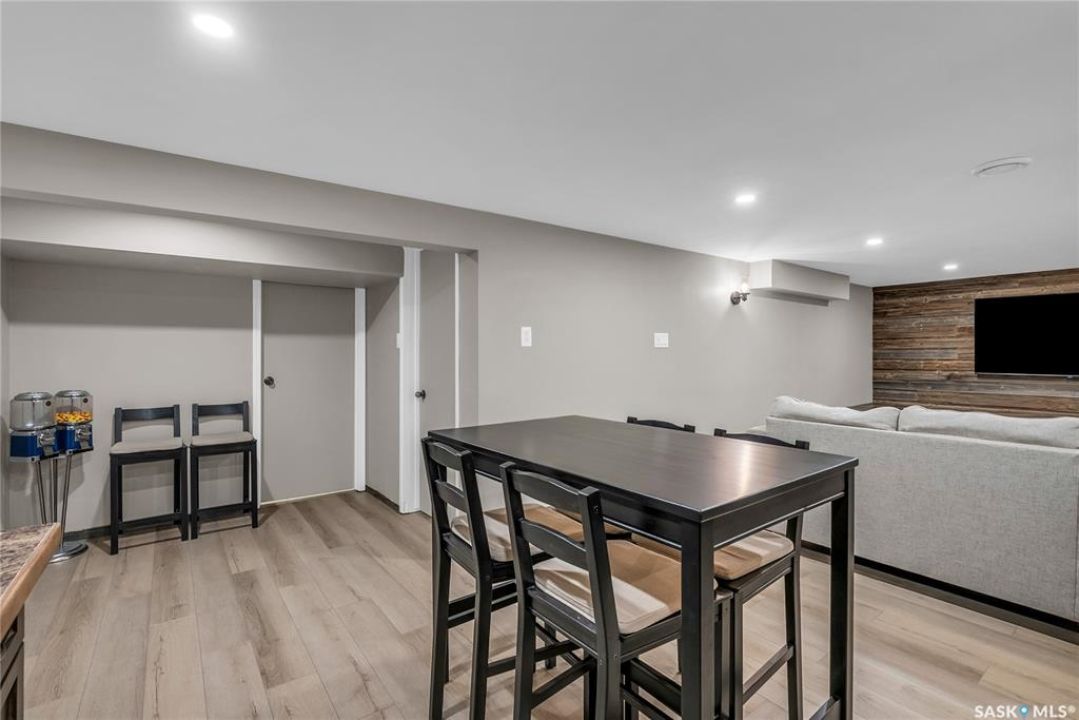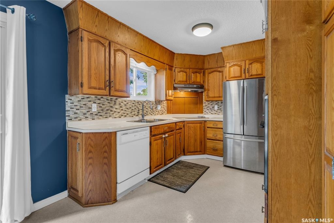 Welcome to 2414 McPherson Ave, located on a quiet, yet desirable street located in Avalon. With quick access to Circle Drive, downtown, South Saskatchewan river, and many local amenities. This 1,040 sq ft Bungalow greets you into a bright living room with laminate flooring that carries throughout the main floor. Coming around to your kitchen / dining with plenty of oak cabinets, custom backsplash, appliances including fridge, microwave, built-in oven, stovetop and dishwasher. Garden door leading you to your large back deck, with privacy wall perfect for entertaining! A spacious, king-accommodating primary bedroom, two additional bedrooms, and a modern 4-pc bath complete the main floor. Coming downstairs, you will find an open concept kitchenette / family room with a lovely wooden feature wall, recessed lighting, and newer vinyl flooring throughout. Two good sized bedrooms, a 3-pc bath with glass corner shower and tile surround, and a large storage area equipped with laundry complete your basement! Additional features of this home include a double detached garage, additional RV parking, lane access, separate access to basement, A/C, single driveway and front porch giving this home characteristic curb appeal! Must see home!