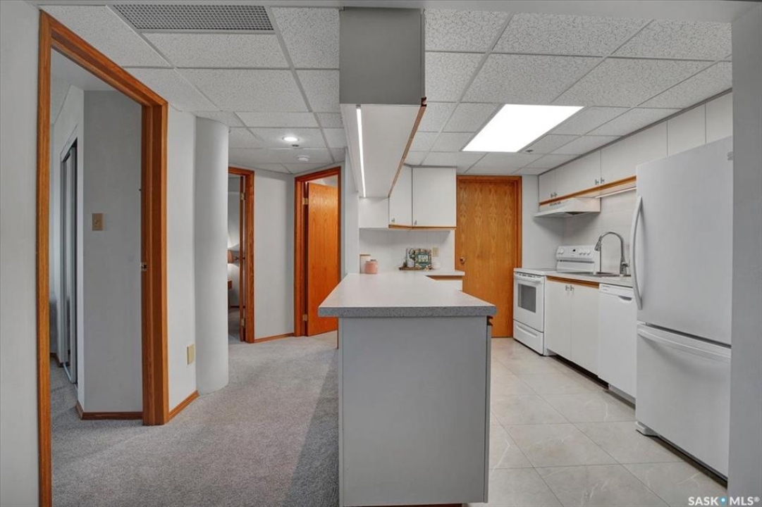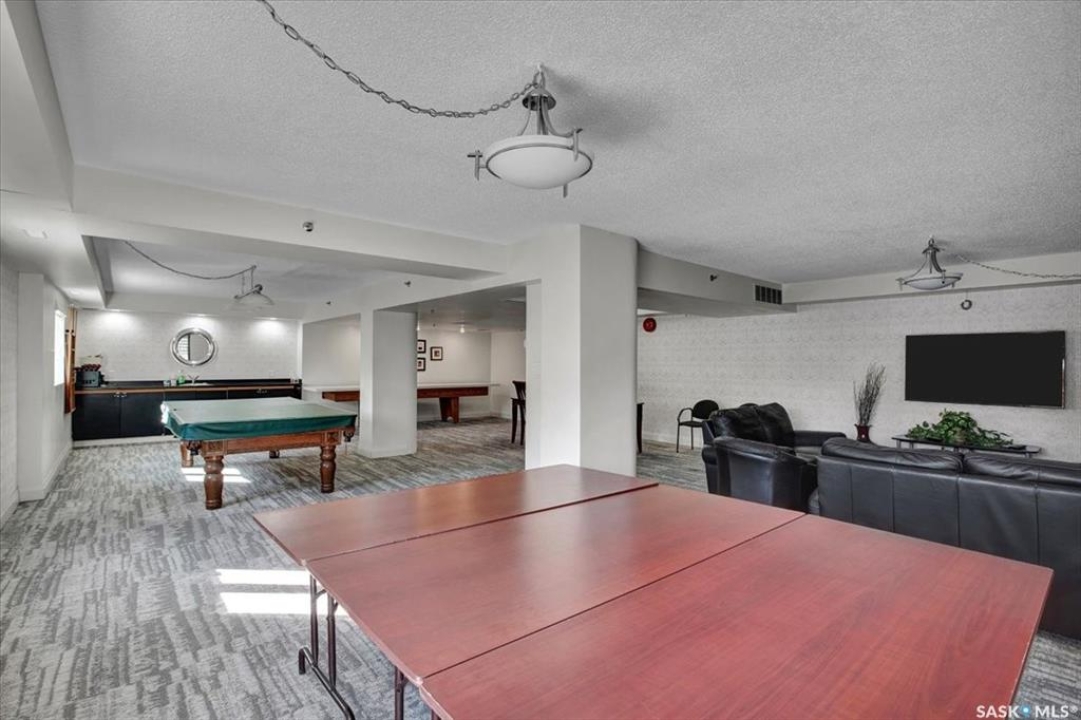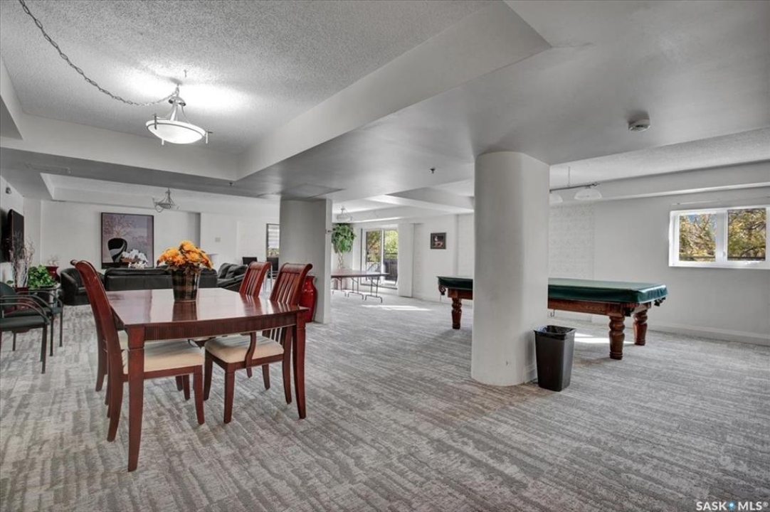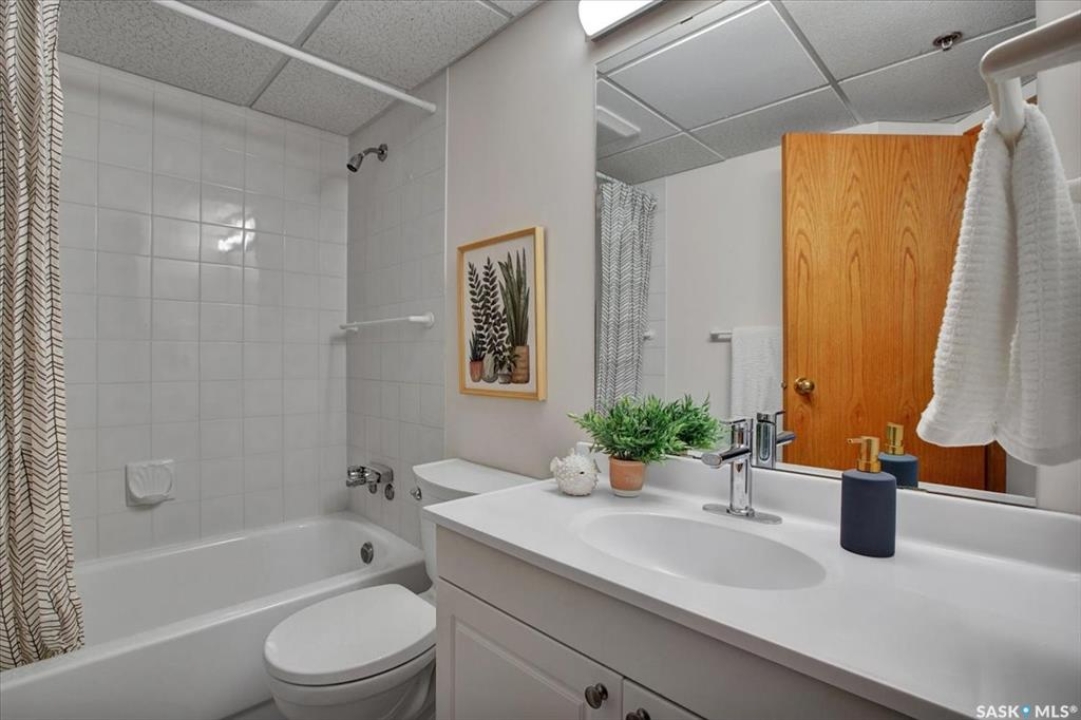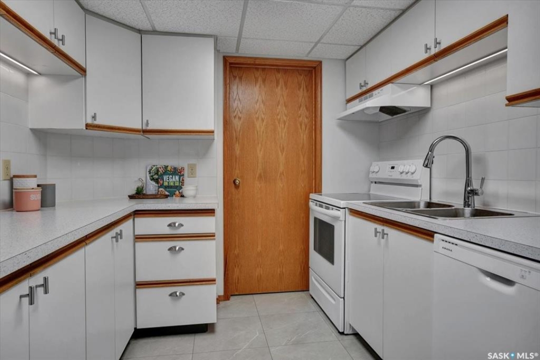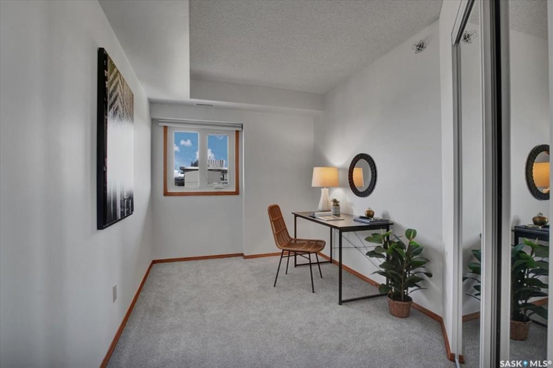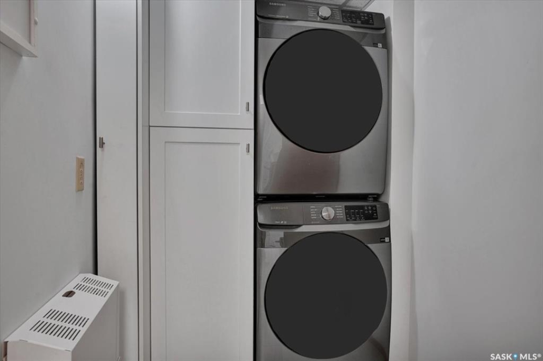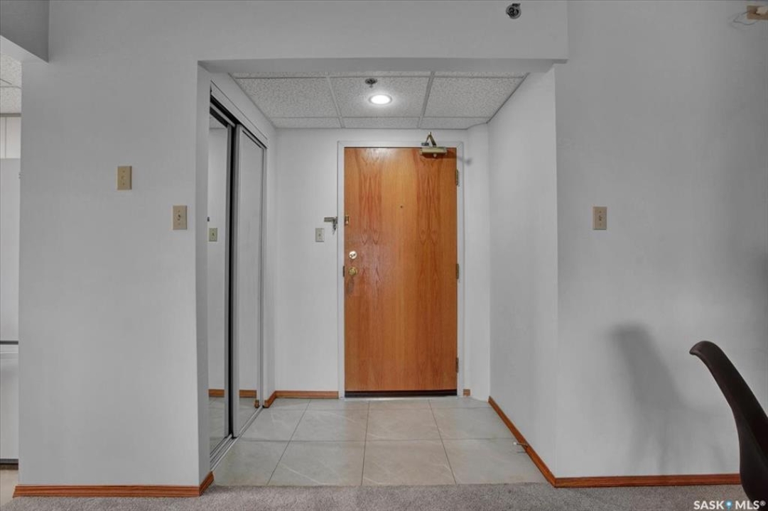 Perched on the 7th floor at the top of the iconic Broadway Bridge, this spacious 2-bedroom, 1-bathroom condo offers the ultimate blend of city living and riverside tranquility. Step out your door and you're moments away from the heart of downtown, where boutique shops, vibrant restaurants, and cozy cafes line the streets. Or head down Broadway itself, alive with pubs, live music, and eclectic local flair. Just beyond your balcony, the river glistens over the treetops—your own private view of Saskatoon's scenic riverbank and all its walking trails. Inside, the generous living space opens up to a balcony that lets you soak in sweeping views of the water and skyline. Whether you're hosting a dinner in the dedicated dining room, unwinding in the large primary bedroom, or settling guests into the second bedroom, there's room to relax and recharge. The 4-piece bathroom offers both comfort and convenience, while the well-equipped kitchen is ready for your morning coffee or evening culinary adventures. When you're not enjoying the festivals and fairs just steps from your building, take advantage of the condo's amenities room—a great spot for gathering with friends, family, or fellow residents. Your unit also comes with one secure underground parking space, complete with a handy storage locker right in front. This is more than just a condo—it's a lifestyle at the center of everything.