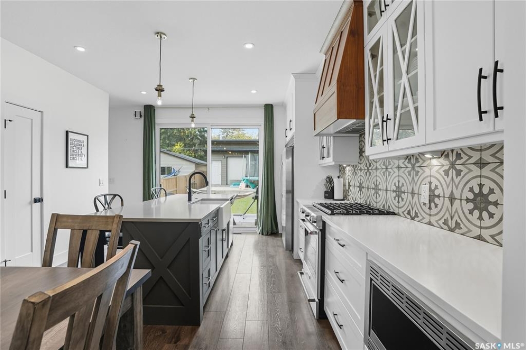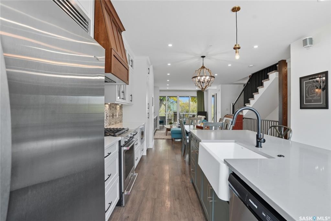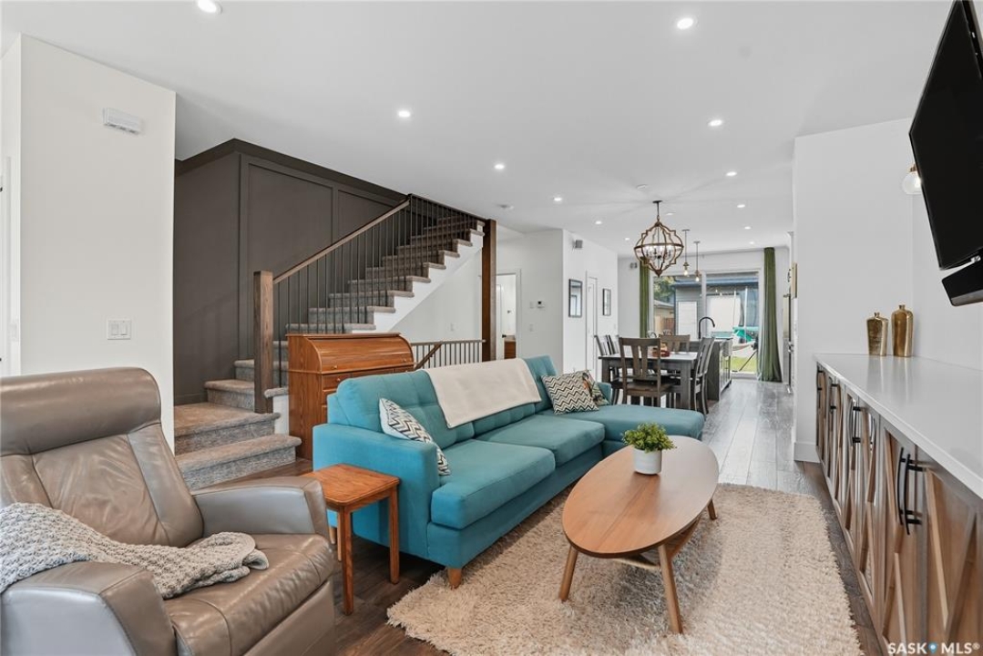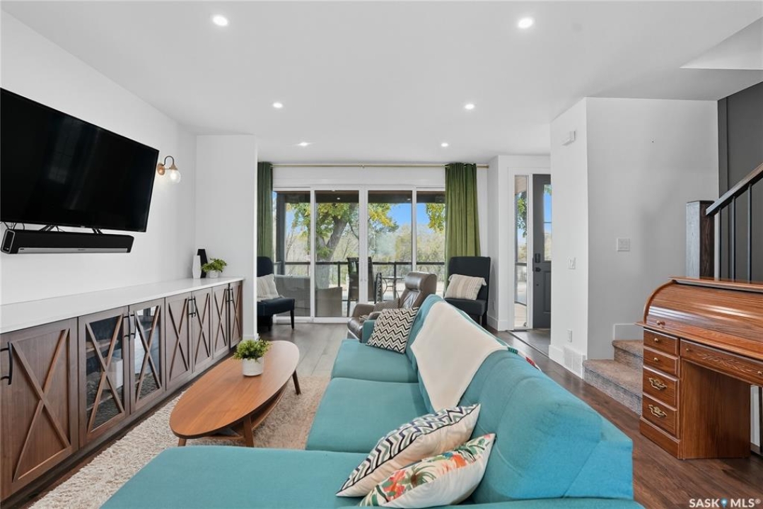 Located on prestigious Spadina Crescent East, this stunning riverfront home is perfect for those looking for a family-friendly home in a sought-after neighbourhood. The main floor boasts hardwood flooring throughout with views from the oversized windows in the living room which opens seamlessly to the dining area and designer kitchen - complete with quartz countertops, an abundance of cabinet space, high-end appliances and island with seating. A convenient 2-piece powder room and mud room completes this level. The second floor features three generously sized bedrooms, including the primary suite with a private balcony offering gorgeous river views, spacious walk-in closet and ensuite complete with dual sinks, custom-tiled shower and separate water closet. Convenient second-floor laundry room adds to the home's functionality. The basement has been thoughtfully finished with a large family room, and an additional bedroom and full bath - perfect for teenagers or overnight guests. Outside you will enjoy river views from your front verandah or BBQing in your private backyard. The incredible oversized 2 car garage comes with electric vehicle plug, 15ft peak and a 3pc bath! Located close to schools, City Hospital, parks and downtown, don't miss your opportunity to own a newer home in one of Saskatoon's most desirable locations!