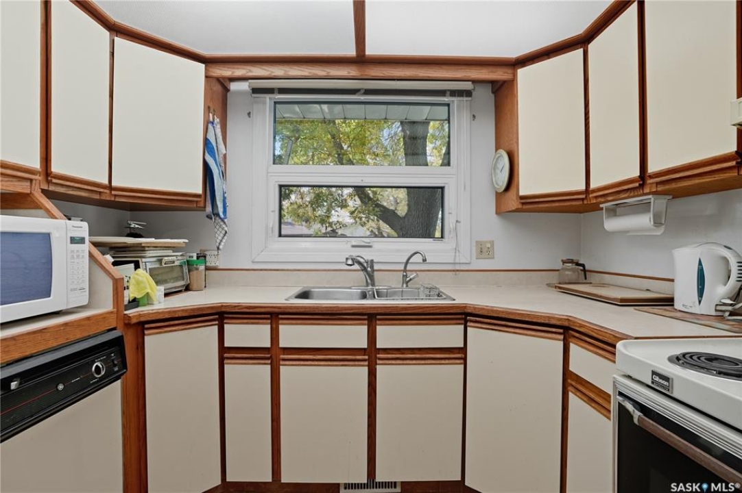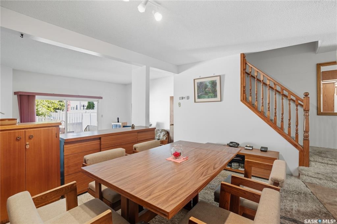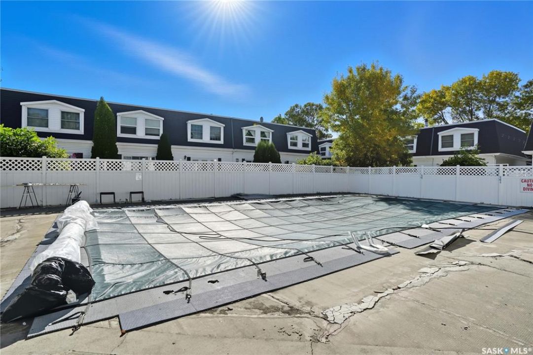 Welcome to this spacious 1,334 sq ft two-storey condo located in Regina's highly desirable Albert Park neighbourhood. The main floor is thoughtfully designed with the kitchen set just off the front entrance, along with a convenient 2-piece bathroom tucked away near the foyer. A generous formal dining room sits beside the kitchen, flowing seamlessly into the bright and spacious living room. From here, patio doors lead to your private yard, which backs green space and is only steps away from the outdoor pool—perfect for relaxing or entertaining. Upstairs you'll find three comfortable bedrooms and a 4-piece bathroom, offering plenty of space for family or guests. The basement features a utility/laundry area and a good-sized rec room that's ideal for a home gym, playroom, or media space. This unit also comes with a single detached garage for secure parking and extra storage. Situated close to schools, restaurants, grocery stores, and countless other amenities, this property also offers quick access to major roadways, making commuting around the city a breeze.