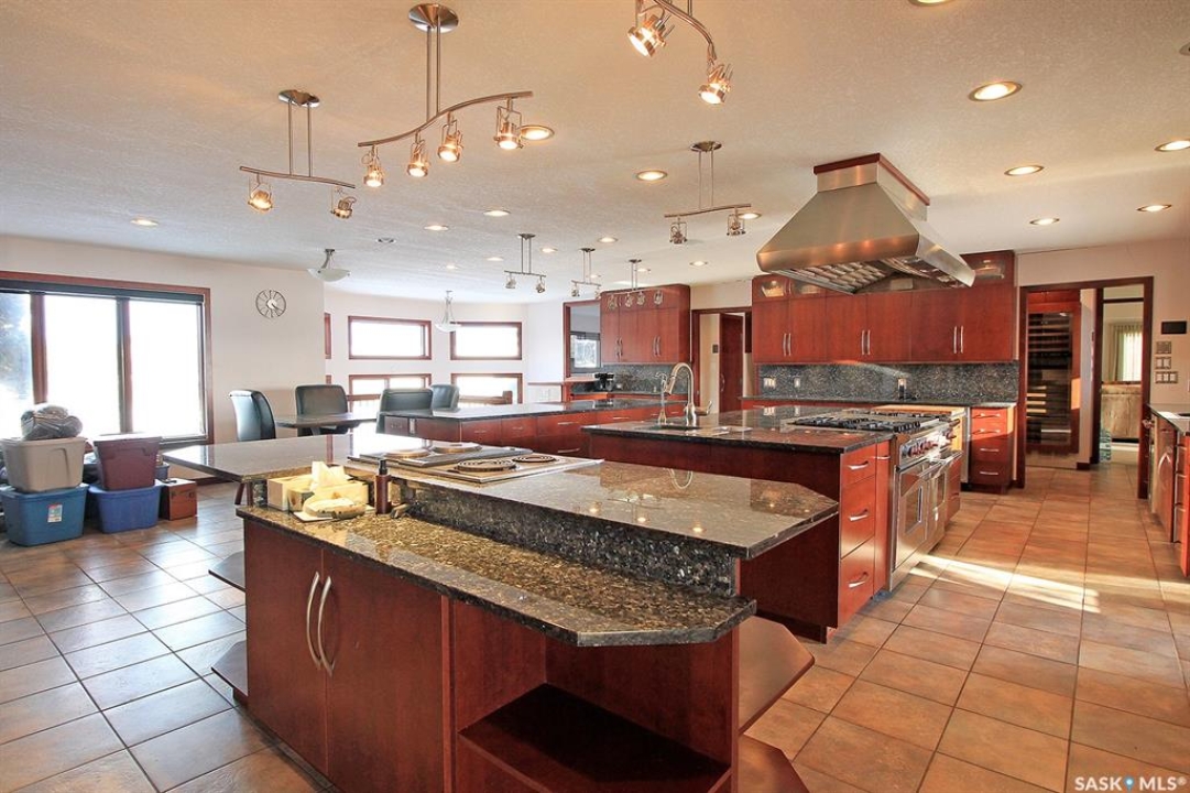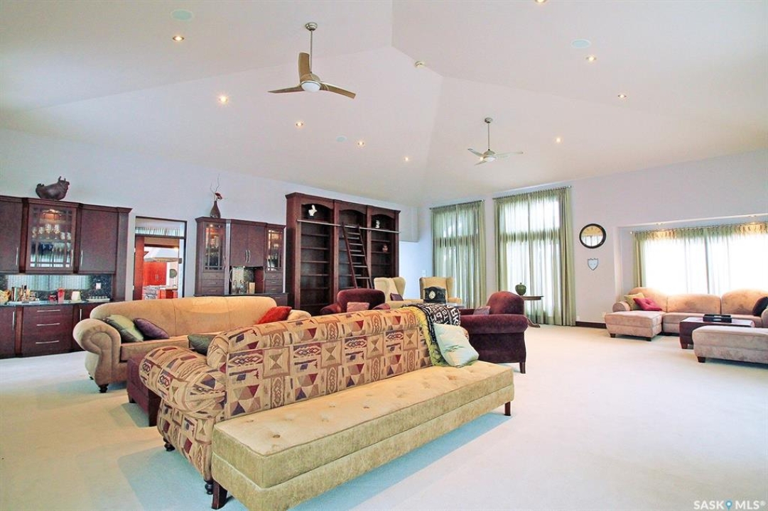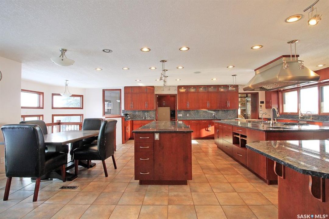 Located just 1 ¼ km outside of Yorkton on York Lake Road, this stunning 5,452 sq. ft. bungalow sits on 19 acres of private land. Built in 1988 with a major addition in 2005, this home is truly one of a kind, offering an abundance of space and luxury amenities. The heart of the home is its expansive Great Room, ideal for entertaining on a grand scale. With its soaring ceilings and open concept layout. The chef's kitchen is equally impressive, featuring both electric and gas ranges, multiple dishwashers, a walk-in cooler, and three separate granite islands. Whether you're an avid home cook or a professional chef, this kitchen offers everything needed to create incredible meals. This home features five bathrooms, ensuring convenience throughout. The fully developed basement is designed for both entertainment and wellness, featuring a theatre room with a curved full-length screen, projector, and reclining chairs with built-in sound shakers. A dedicated fitness area includes a fully equipped weight room, an exercise machine space, and a two-person infrared sauna with light therapy and AV equipment. Designed with comfort in mind, the home is equipped with three furnaces, three air conditioning units, two wood-burning fireplaces, and one gas fireplace. A Generac generator ensures the entire home remains powered when needed. The home's infrastructure is built for efficiency and convenience, with three utility rooms housing three electrical panels, two water heaters, a water softener, an iron filtration system, and a commercial reverse osmosis system. For music lovers, speakers are installed inside and outside the home, with touchscreens in the newer addition to control SiriusXM or personal music selections. This remarkable property offers an unparalleled combination of space, luxury, and functionality. Whether you're looking for a private retreat, an entertainer's paradise, or a home that can support a business venture, this estate has it all!