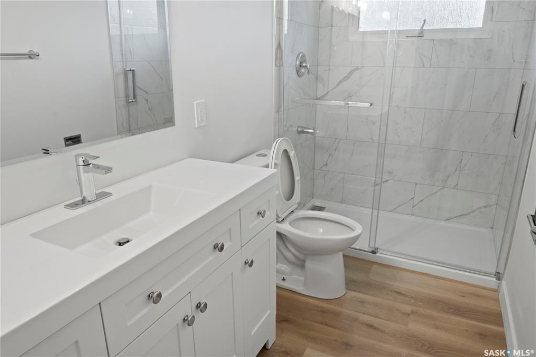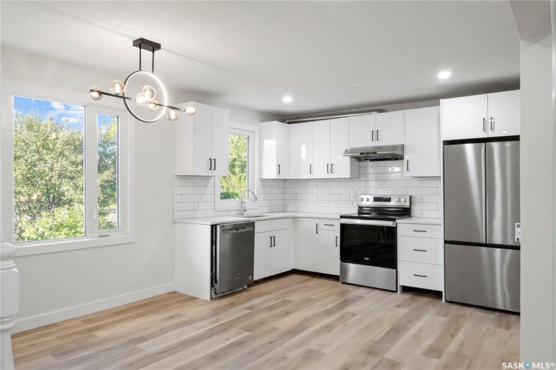 Welcome to 1336 McNiven Avenue in the desirable Hillsdale neighborhood, a newly renovated bungalow offering 5 bedrooms, 3 bathrooms, a brand-new detached garage, and a spacious 6,235 sq. ft. lot. The main floor features a bright living room, dining area, and modern kitchen with quartz countertops, tile backsplash, hood fan, and updated finishes, along with a primary bedroom complete with 2-piece ensuite, two additional bedrooms, and a 4-piece bath, all finished in durable luxury vinyl plank flooring. The basement includes a large recreation room ideal for family gatherings or a home theatre, two good-sized bedrooms, a 4-piece bath, and laundry in the utility area, with cozy carpet throughout the living spaces. Added highlights include central air conditioning for year-round comfort, a side entrance, and close proximity to the University of Regina, Campbell Collegiate, Wascana Centre, and easy access to transit. With its prime location, modern upgrades, and functional layout, this Hillsdale home is a must-see—don't miss out on booking your viewing today!