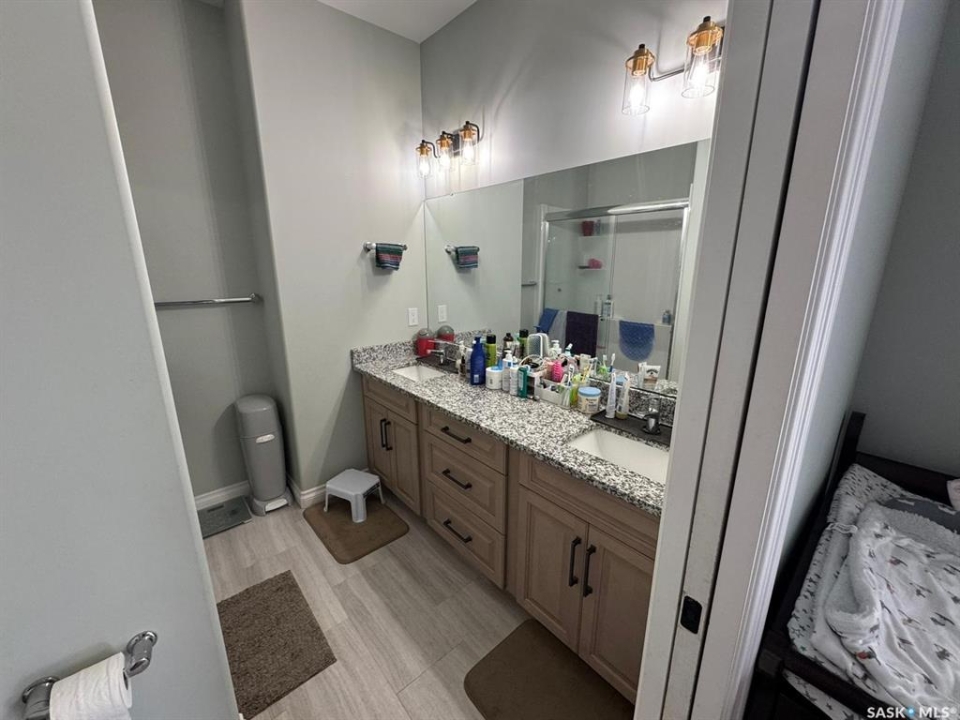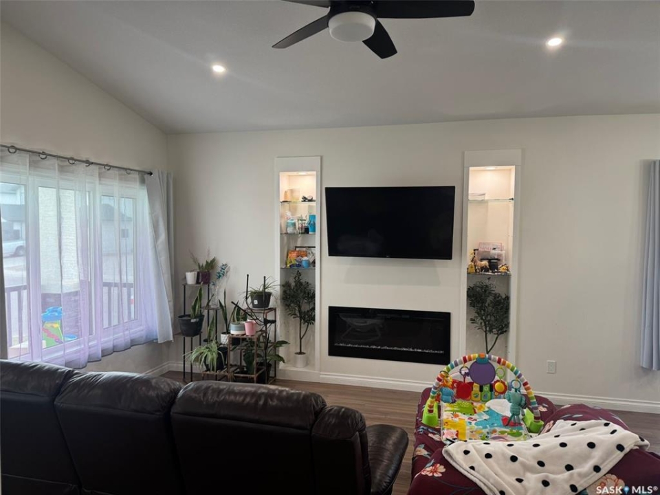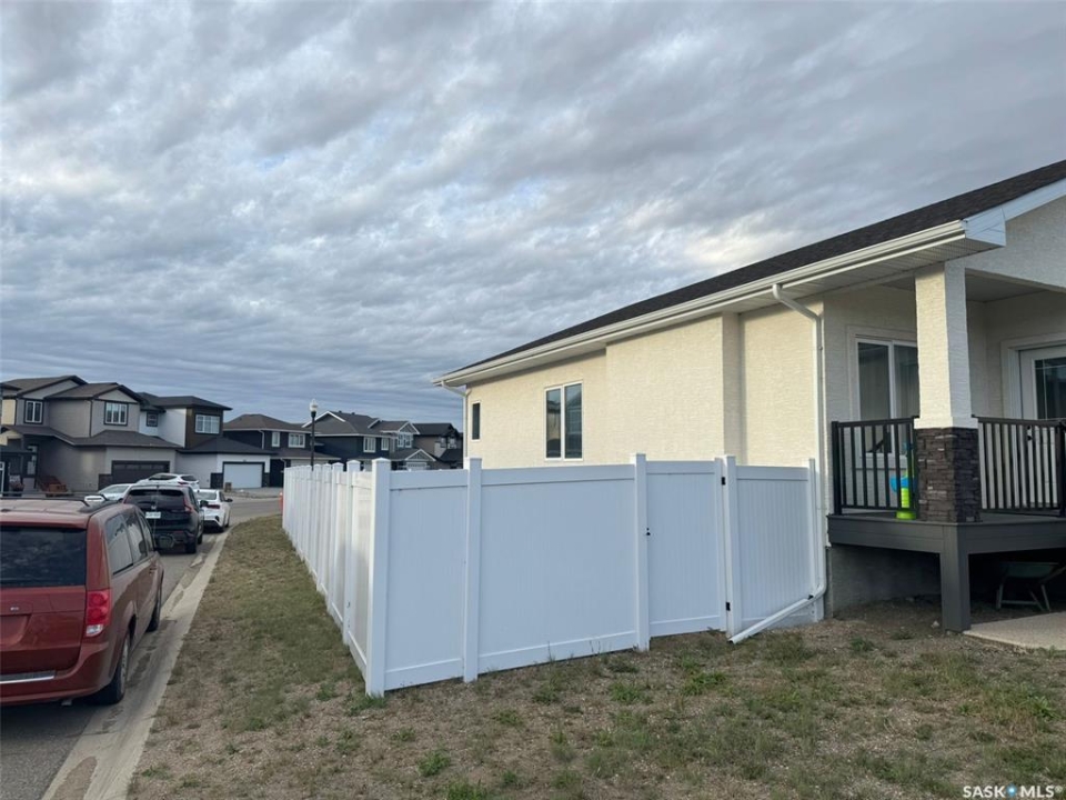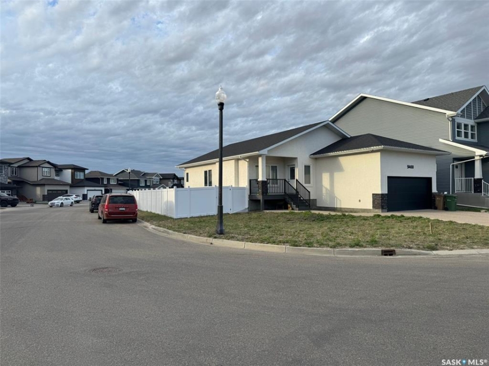 Welcome to 5400 E Boyer Bay! a beautifully maintained bungalow in the desirable Greens on Gardiner community. A front veranda adds warm curb appeal & welcomes you into a beautiful home where natural light fills each room. Built in 2022 with signature specs by Crawford Homes, this 1,337 sq ft home features a bright and functional open-concept layout with vaulted ceiling, perfect for modern living. The main floor showcases luxury vinyl plank flooring throughout and a seamless flow between the kitchen, dining, and living area with electric fireplace. The contemporary kitchen boasts sleek finishes, ample maple cabinetry, granite countertops, tile backsplash, and is natural gas–ready, offering flexibility for future stove upgrades. Stove, fridge and dishwasher can be operated with the help of wifi through app. Backyard can be accessed through kitchen and master bedroom. Three spacious bedrooms include a primary suite with a 4-piece ensuite and walk-in closet. Both the bathrooms have maple cabinets with granite countertops . The additional main bath is tastefully finished with vinyl flooring and modern fixtures. A double attached garage with direct entry provides ample parking and storage, with a natural gas line roughed-in for future heating upgrades, an exposed aggregate driveway, and a convenient side door for extra accessibility. Additionally CAT 5e network wiring throughout for modern connectivity. The basement is framed, insulated, and poly-ed, with rough-in plumbing and electrical in place—would not take much to complete with your own ideas. Fenced with a 12ft gate in the back that gives access to the back alley and opens to RV parking options. Situated on a 7,074 sq ft lot in a family-friendly neighborhood close to parks, walking paths, and schools, this home combines comfort, space, and an excellent location. A must-see!
