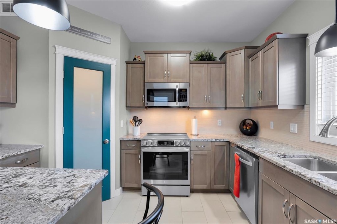 Impressive Curb Appeal and Exceptional Value! This beautifully maintained home offers a fully finished basement with a separate entrance—ideal for extended family or potential rental income. The basement includes a full kitchen, living room, bedroom, 3-piece bathroom, and private laundry. This is currently a non-conforming suite. A 24' x 24' detached garage is both insulated and heated with a hanging gas heater, perfect for year-round use. Enjoy outdoor living with a two-tiered deck, fully landscaped yard, and natural gas hookups for both a BBQ and fire table. Inside, the home showcases pride of ownership throughout. The primary bedroom features a walk-in closet and a private 3-piece ensuite. Both bathroom vanities and the kitchen are finished with sleek granite countertops. The kitchen also includes a corner pantry, backyard views, and direct access to the deck—ideal for entertaining. The open-concept layout includes a spacious dining area and a bright, welcoming living room. Relax on the covered front and back decks, perfect for enjoying the outdoors in any weather. Don't miss out on this fantastic property—schedule your showing today!