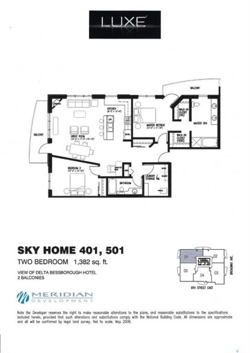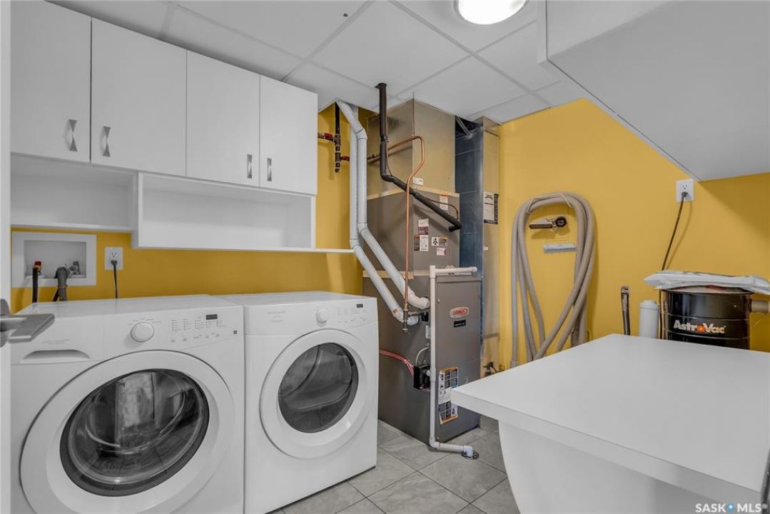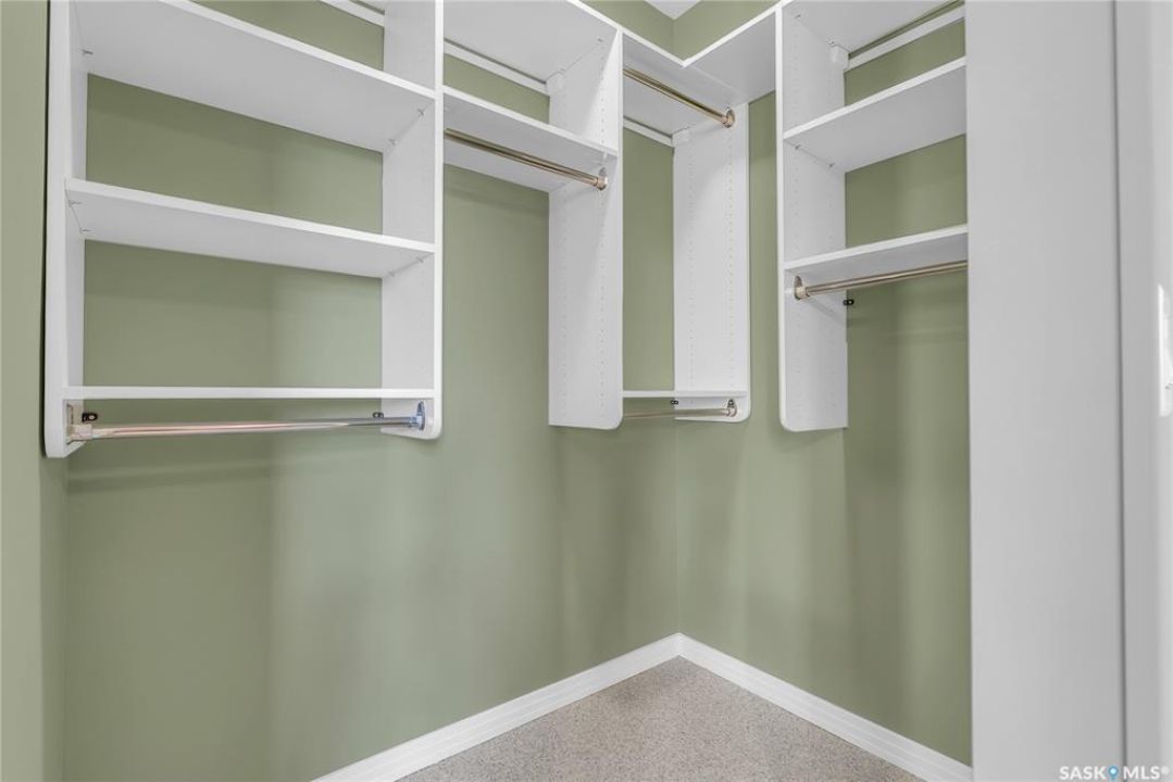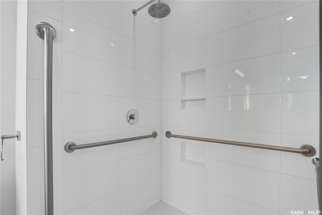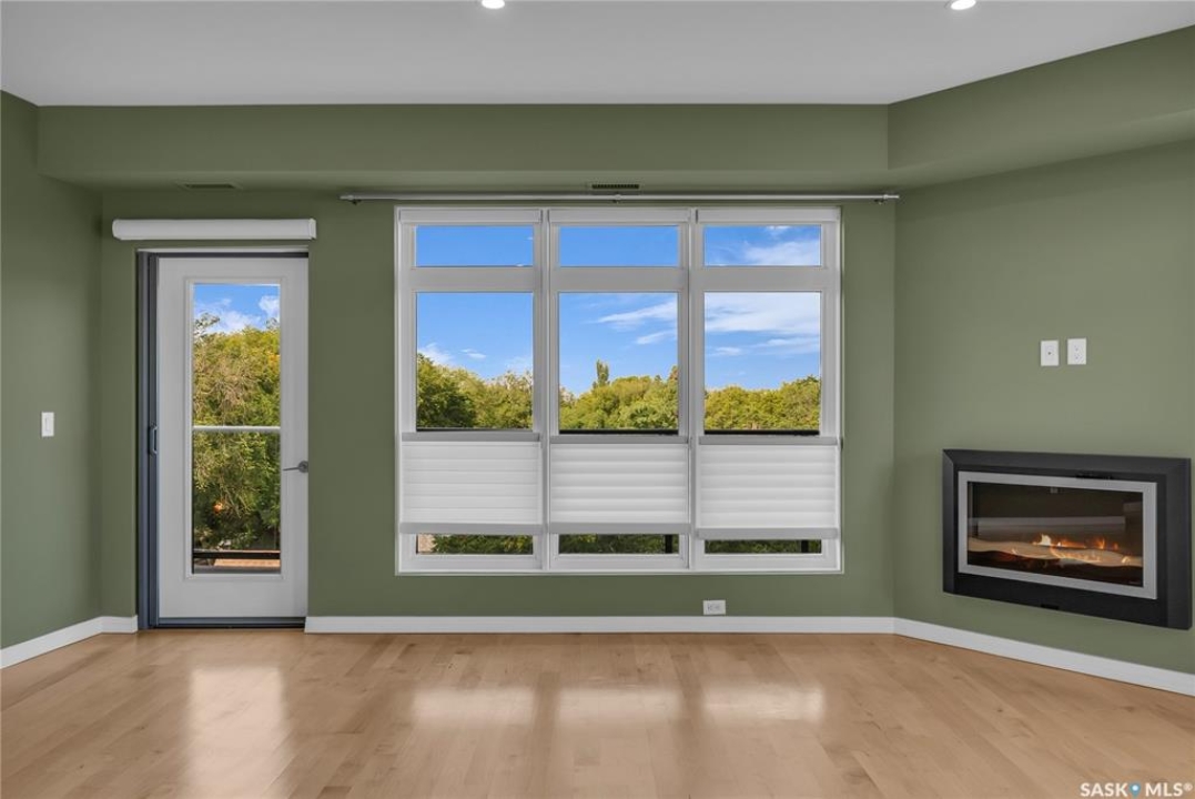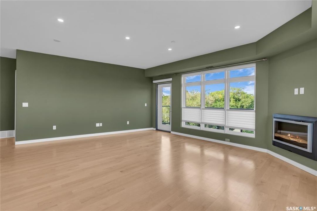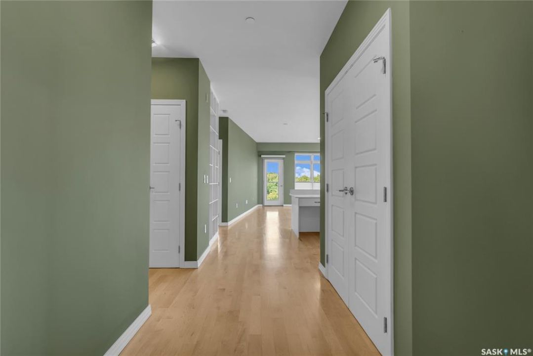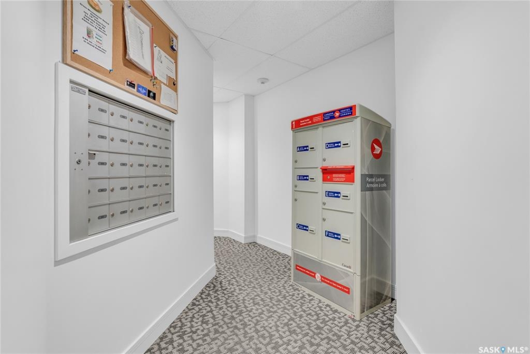 Welcome to the prestigious Luxe offering an exceptional combination of sophistication, comfort, and thoughtful upgrades. The suite features two spacious bedrooms, two beautifully appointed bathrooms, the rare luxury of two balconies, two underground parking stalls, and two external storage areas. The open concept main area is bright and inviting, with ceiling lighting added in 2018 to enhance the living and dining spaces. The kitchen is both stylish and functional, boasting a new dishwasher and smart renovations that introduced custom cabinets to the island, a built-in desk with wine storage, and striking display shelving. Additional upgrades include Hunter Douglas PowerView blinds on seven openings, triple-glazed balcony doors, and west-facing upgraded windows (2022). A true rarity in the condo market, the primary suite was redesigned with both elegance and accessibility in mind. It offers closet organizers and a spa-inspired ensuite that is perfectly suited for people with physical limitations. Features include heated non-glare tile floors, a Toto washlet, a double shower, an accessible sink unit, reinforced walls with integrated towel/assist rails, custom display shelving, thoughtful lighting and convenient laundry bins concealed within cabinetry. The second bathroom was also enhanced with new tile floors and walls, while the laundry room was outfitted with cabinets and a collapsible folding table. Throughout the condo, hardwood floors were refinished, and every detail was carefully considered, from art and office storage solutions to built-in cabinetry that maximizes both form and function. Broadway offers an array of amenities within walking distance and is home to Saskatoon's beloved Fringe Festival, Broadway Street Fair, and some of the city's finest pubs and restaurants, also you are just a short walk to the downtown core and the South Saskatchewan River.