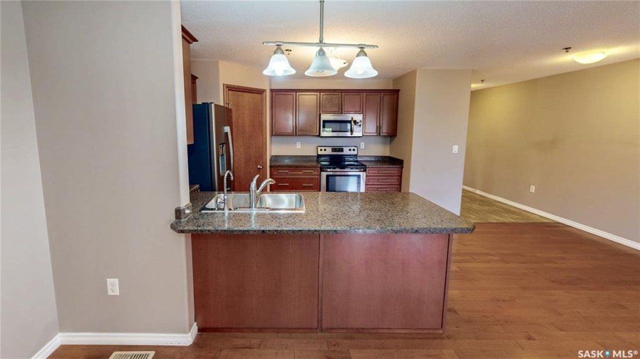 Welcome to Unit #108 at 3730 Eastgate Drive, located in the sought-after East Point Estates, a beautifully maintained, 2009 built apartment style condo that blends comfort, convenience, and community. You receive two exclusive parking spaces here! The first one is #60 outside located very close to the front door. The underground parking stall is #108 that has a storage room directly in front of it, a wash bay beside it and is also close to the door and elevator! There are also two recycling areas in the parking garage. Another great feature of this condo is the amenities room. It has a kitchen area, washroom, couches, tables for puzzles and there is a monthly activity calendar posted that includes activities like potlucks, games, socializing and BBQs! The perfect way to meet new friends and neighbors. Condo fees are $415 a month and include common insurance, sewer, common area maintenance, snow removal, exterior building maintenance, water, lawn care, garbage and reserve fund. This 1324 square foot, 3 bedroom 2 bathroom suite is on the first floor up and faces north west. It has a balcony for enjoying summer days and to the side is the utility room that houses the owned furnace! You enter into the foyer that has a coat closet and room for a bench or a shoe rack! The laundry room has plenty of extra storage space and includes a large freezer and the front load Samsung washer and dryer and electric water heater. The kitchen has a long counter with bar seating, ample cupboard space, a corner panty, and the stainless steel fridge, stove, dishwasher and microwave hood fan are all included. The open concept flows into the bright living room with hardwood floors and the dining room with space for a table and chairs. The main 4 piece bathroom is next. The primary bedroom is spacious with a walk in closet and a private 3 piece ensuite bathroom! Finishing off the unit are two more great sized bedrooms.