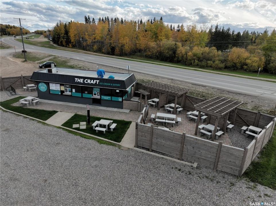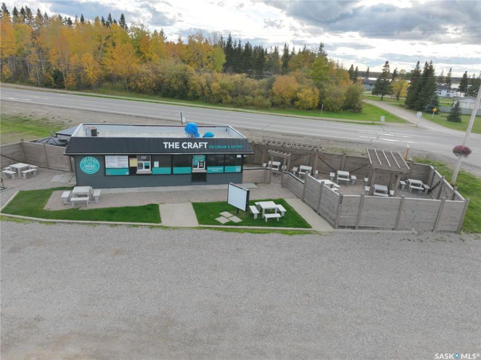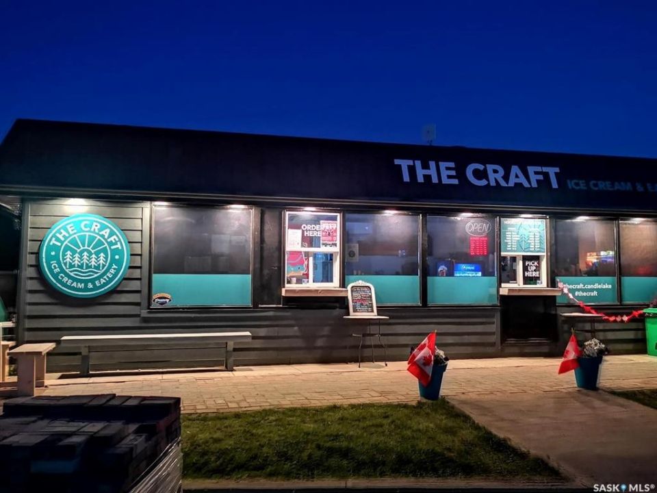 Thriving Candle Lake Favourite! Turn-key, high-traffic seasonal business with that inviting southern-style outdoor eatery vibe — serving up artisan craft ice cream and a full comfort-food menu everyone loves. Perfectly located in the heart of Candle Lake, just steps from Waskateena Beach and surrounded by busy trailer parks and cabins in a sought-after Main Street location. The .28-acre lot (116' frontage) offers incredible visibility and room to grow. The 526 sq. ft. building features an order/pick-up window, fully equipped kitchen, prep area, Taylor ice cream machine, fryers, and modern commercial equipment. Includes staff bathroom, storage room, and powered storage shed. Completely renovated top-to-bottom, truly turn-key and ready for the next owner. Updates include Hardie board/metal siding, concrete work, patio seating, premium signage, powered menu board, upgraded lighting, and exterior sound system. Additional features: LG commercial A/C, water tanks, and Square POS for smooth, modern operations. A rare opportunity to own a beloved local landmark with proven success and exceptional potential to expand and thrive in beautiful Candle Lake!