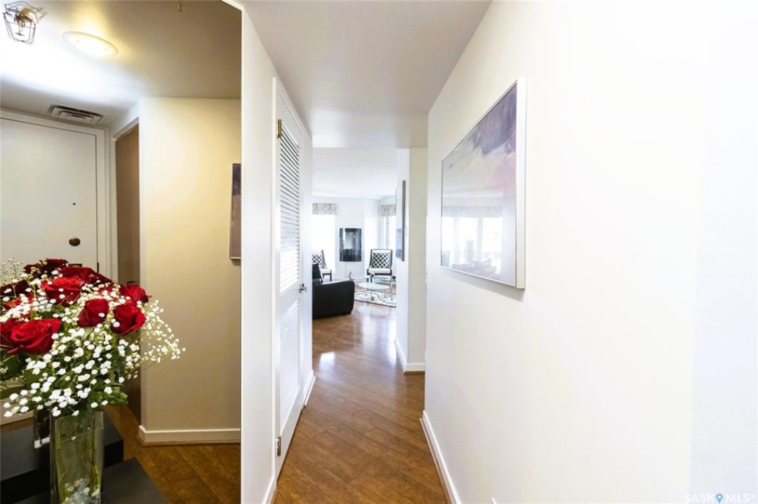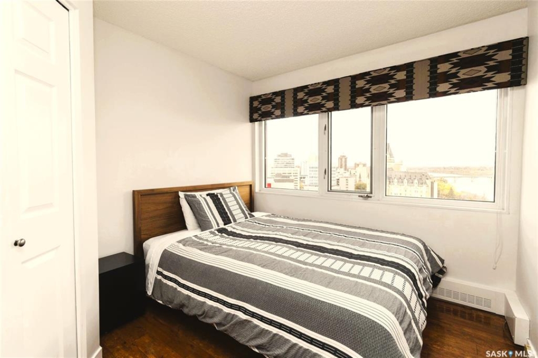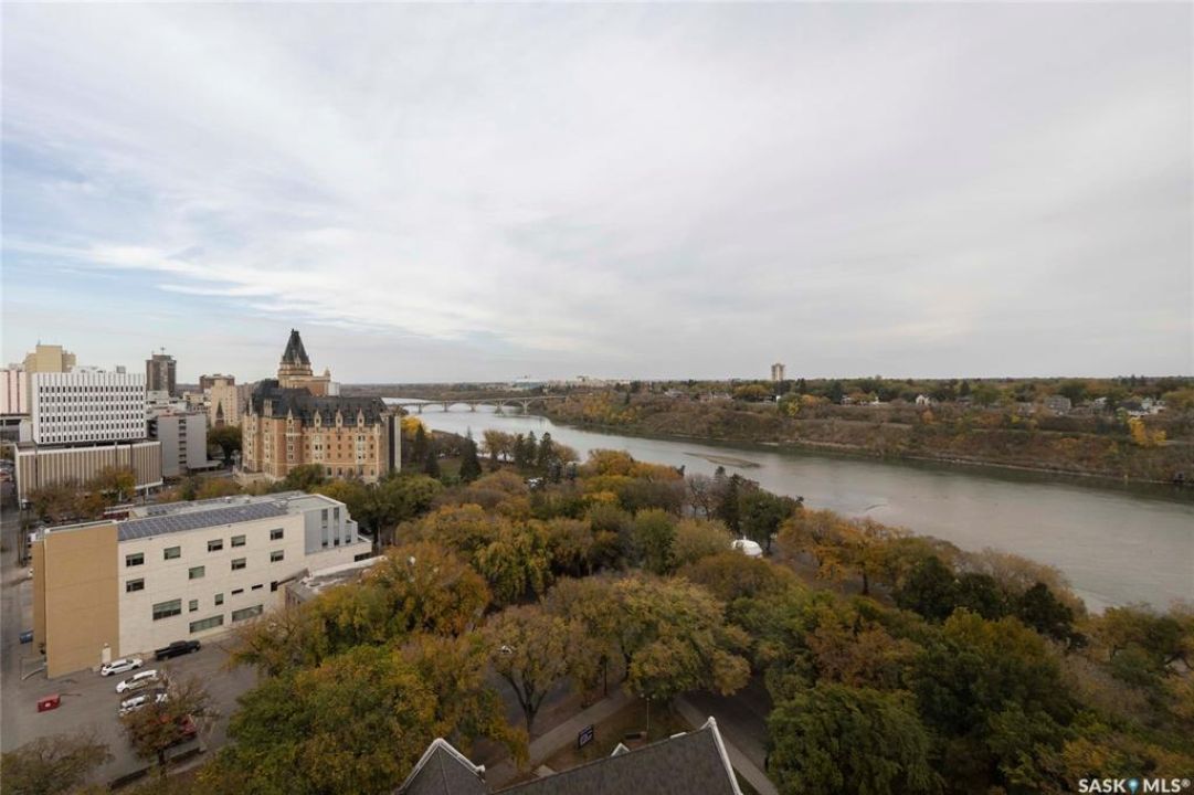 Welcome to 1780-424 Spadina Crescent East in the prestigious La Renaissance. This spacious 2-bedroom, 2-bathroom condominium is approachably priced at $449,900 and features 1,200 square feet of well-appointed living space – including a breakfast nook and formal dining room for entertaining. A true urban oasis, the condo features stunning views of the Bessborough Hotel and South Saskatchewan River from each room. The current owners have added tasteful upgrades throughout the space – from valances above each window, to a full wall of custom built-in cabinetry in the living room, to a clean burning electric fireplace that provides warmth and ambience in winter months. The primary bedroom features a spacious closet and ensuite bath. The second bedroom features a large, well-appointed walk-in closet that was custom designed for the space. Each 3-piece bathroom features high-end fixtures. In addition to walking trails and restaurants at your doorstep, the building amenities are second-to-none: Rogers cable and internet, a deeded parking spot, additional storage, plus a well-appointed fitness centre. And as an owner, you'll also enjoy complimentary access to the adjacent hotel – the Delta Downtown – with its pool and waterslide. If this sounds like your next home, contact any Saskatoon Realtor ®