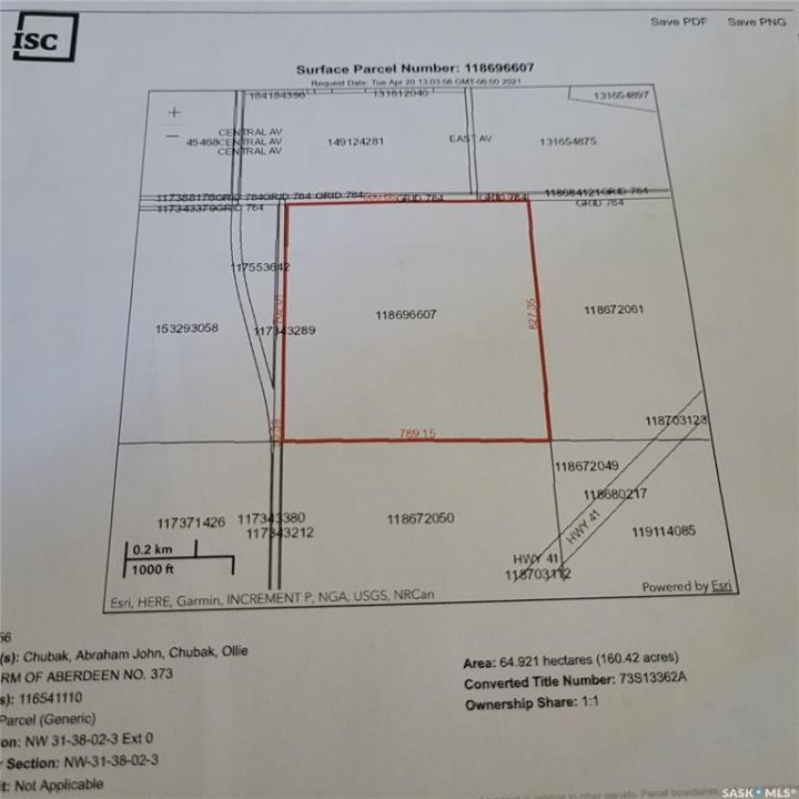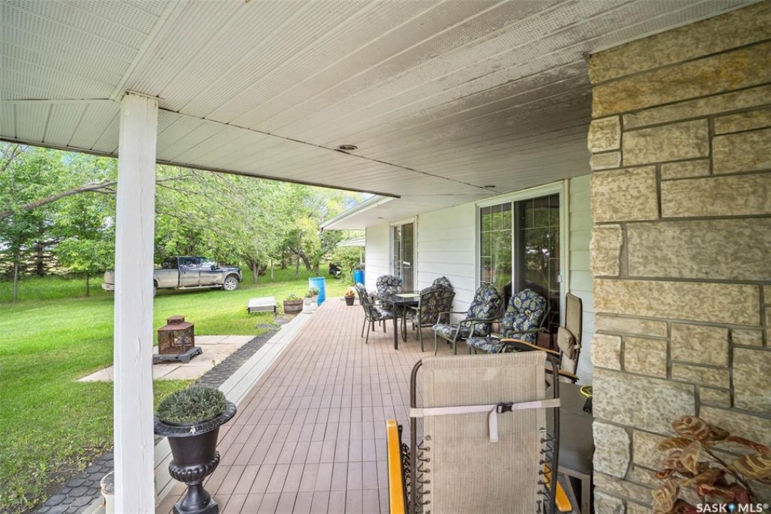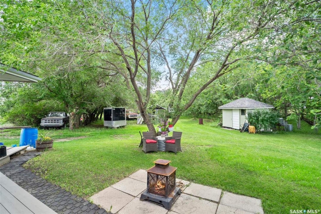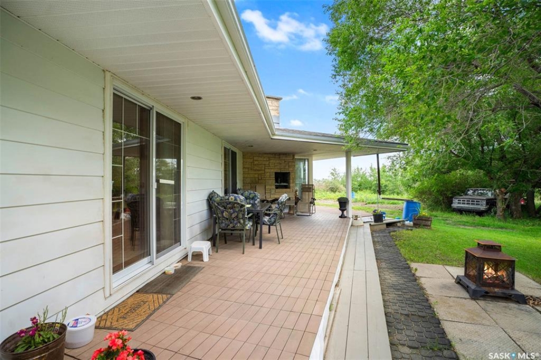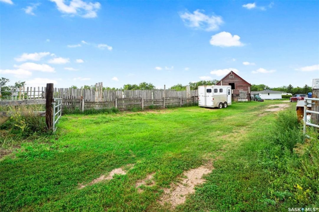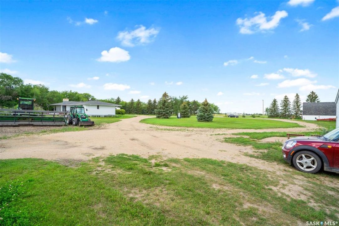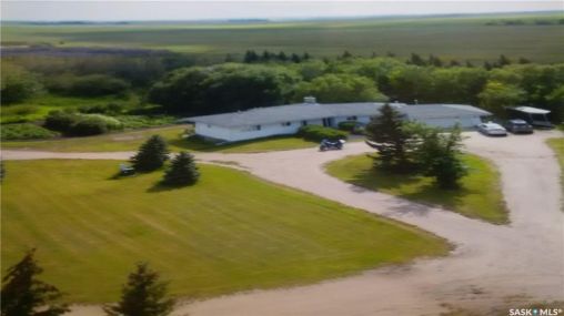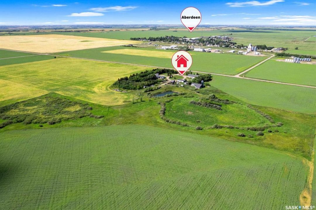 153.84 Acres with a Large Ranch Style Bungalow a Mature yard well Treed with a Park like setting. Only 1 mile from Aberdeen that features K-12 School Shopping A Rec Centre. The Farmyard Features a large Arch Rib Shop and outbuildings School Bus Available to driveway and has City Sourced water and additional well and Dugout .