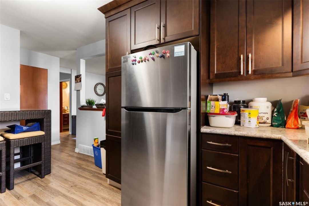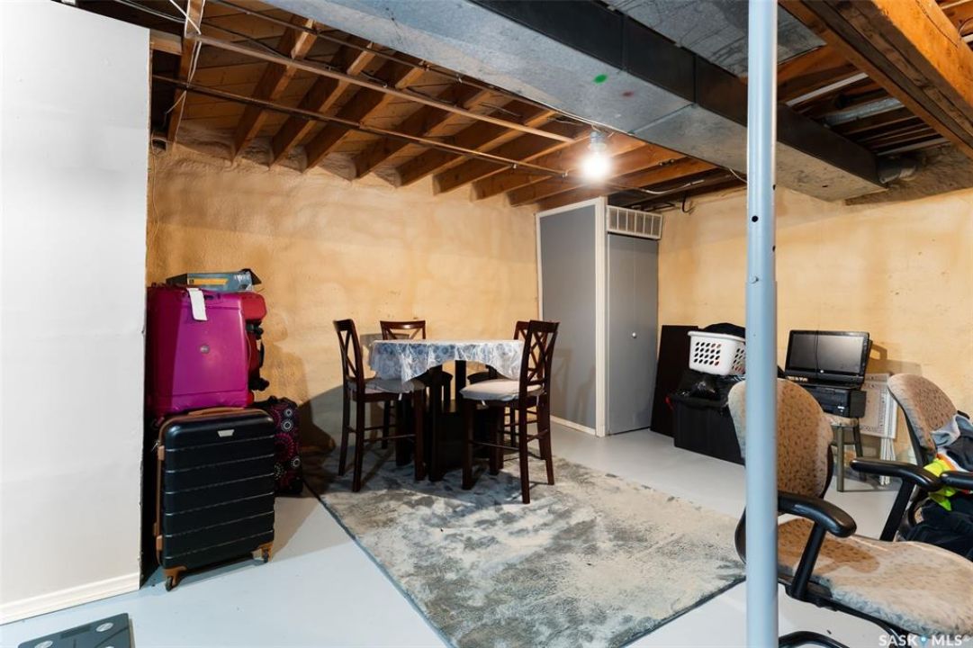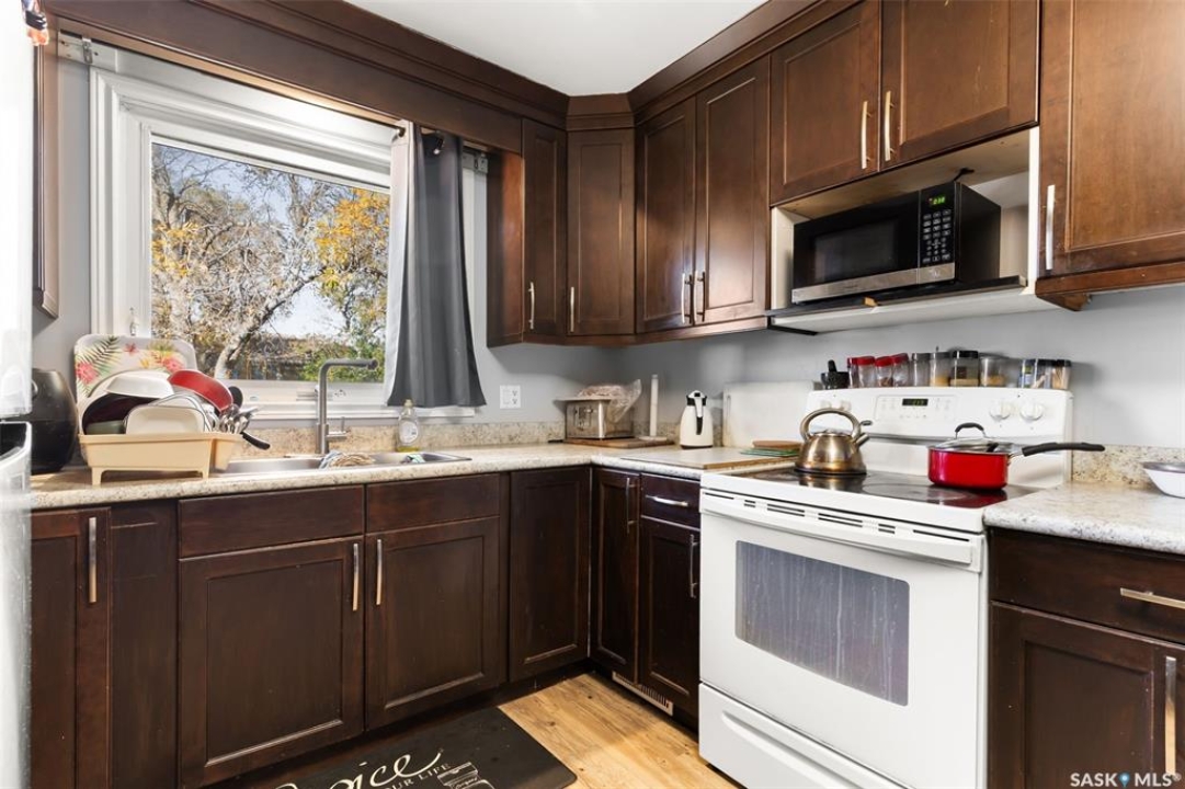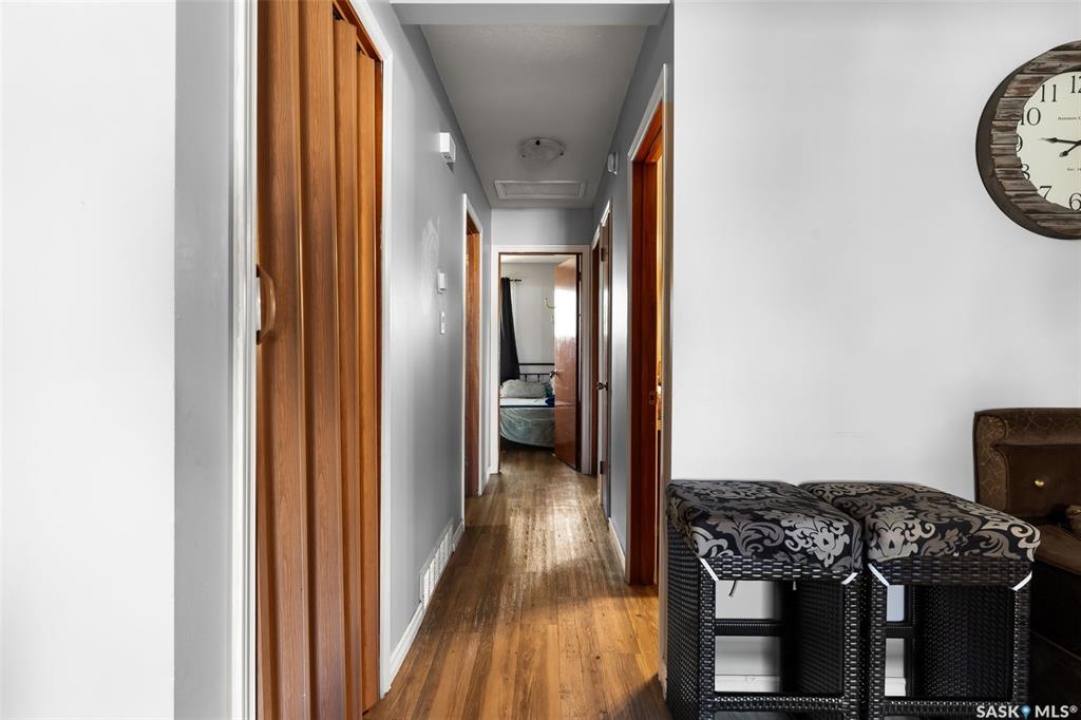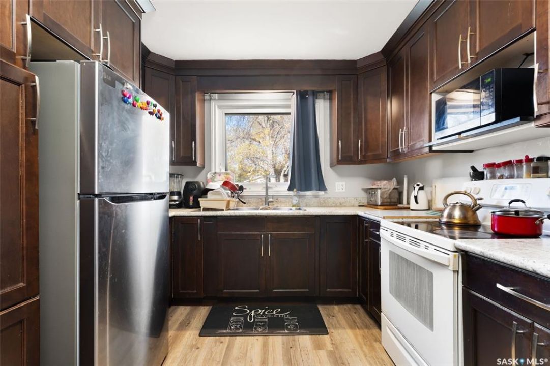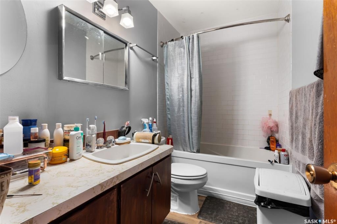This solid duplex offers a fantastic opportunity for both homeowners and investors, featuring four bedrooms and two bathrooms. Unit is to be sold with attached property at 1437 Rupert Street (MLS #SK020175) Seller will only accepted offers for both sides. This side has been thoughtfully renovated, showcasing newer upstairs windows (excluding the living room), fresh paint throughout, updated fixtures, and high-quality laminate flooring. The kitchen and dining area have been opened up for a more modern flow, complemented by updated counters, cupboards, sink, and taps. The main four-piece bathroom includes a newer tub surround, while the basement boasts spray foam insulation, a generous family area, a large bedroom, a three-piece bath, laundry space, and an upgraded electrical panel. (Please note that basement bedroom window may not meet egress standards). The backyard is fully fenced, with a chain-link divider separating the two yards, and ample level parking adds to the convenience. Please contact your Realtor for more information on rental numbers or personal tour.