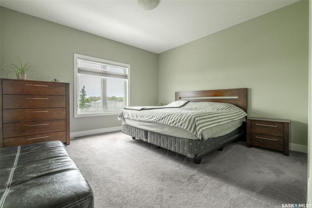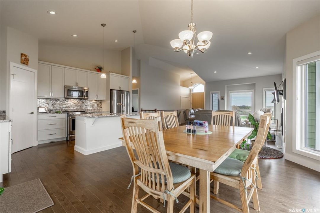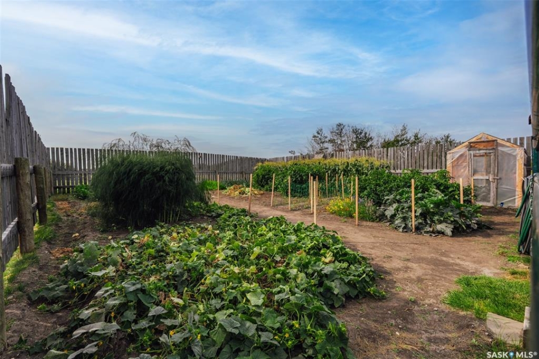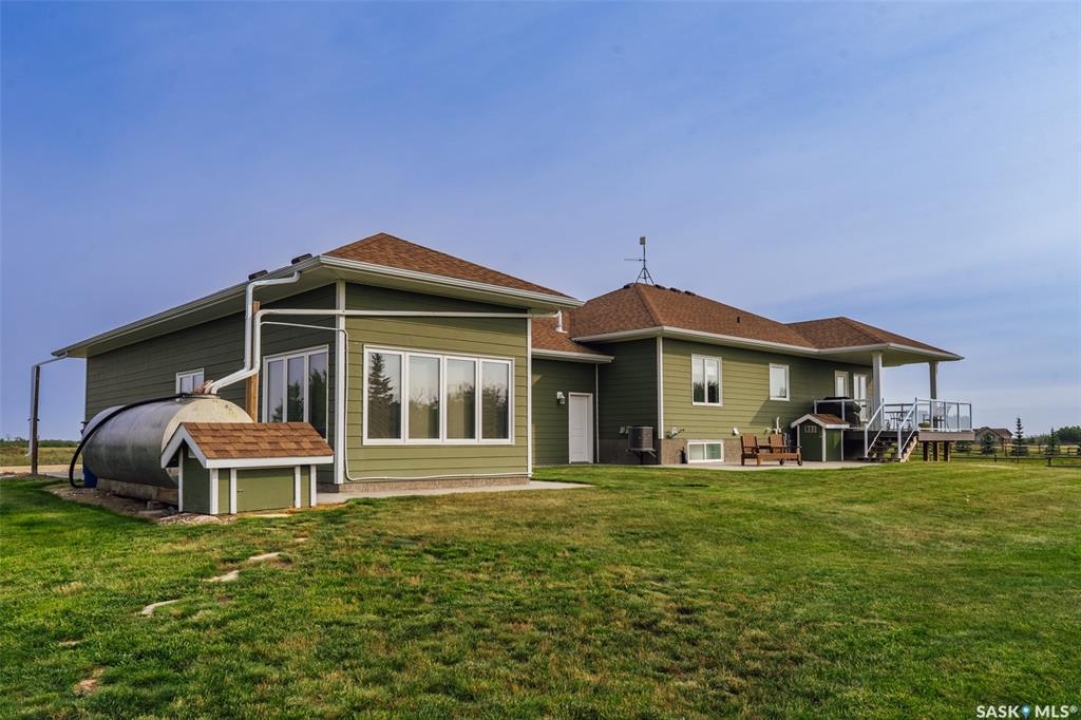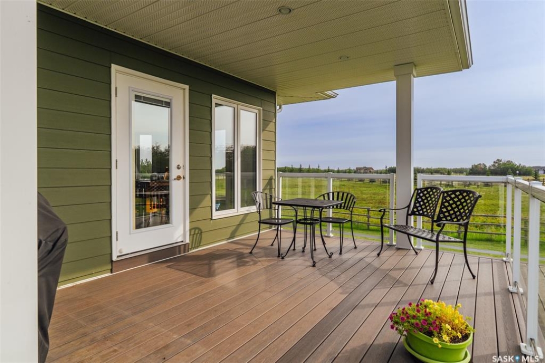 Welcome to 118 Louise Crescent in the coveted acreage community of Cherry Hills — just 15 minutes from Saskatoon's edge. This 1,502 sq. ft. executive bungalow is a stunning blend of modern design, smart functionality, and country charm. Step inside to discover a bright, open-concept main floor with an exceptional window package that floods the home with natural light. The spacious living room, dining area, and kitchen flow seamlessly under a vaulted ceiling, creating the perfect setting for entertaining or relaxing. The kitchen features quartz countertops, a corner pantry, roll-out drawers, stainless steal appliances. The dining room can easily seat a large extended family for holiday meals and the gas fireplace in the adjoining living room makes for cozy evenings. Hardwood runs throughout the main level, and a covered deck off the dining area allows for year-round BBQ. The primary suite is a lovely retreat, offering a large walk-in closet and an ensuite with a soaker tub beneath a privacy rain-glass window, heated floors, and a walk-in shower. A 2nd large bedroom (or office), another 4-piece bath, and a spacious mudroom/laundry room with built-in cabinetry, quartz countertops, and deep utility sink complete the main floor — all leading to an oversized triple-car garage with a separate workshop bay and a sunlit all-season greenhouse.The fully finished basement features a large family and games area, 2 more bedrooms, 4-piece bath, and a vented cold storage room perfect for preserves or wine. Outside, the 7.14 acre property is 3/4 fenced with treated rail fencing, hotwired, & divided into five paddocks with a 4-season watering bowl sourced by underground lines. Mature spruce trees border the property, and there's a drive-in garden shed, an adorable matching horse barn, and 2 fully developed gardens with direct waterlines. Complete with central air, central vac, and window coverings, this Cherry Hills acreage offers comfort with country serenity — a truly rare find.
