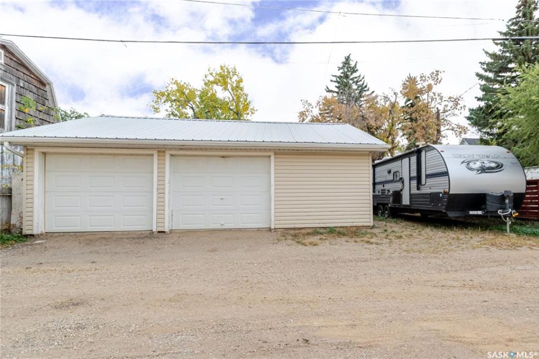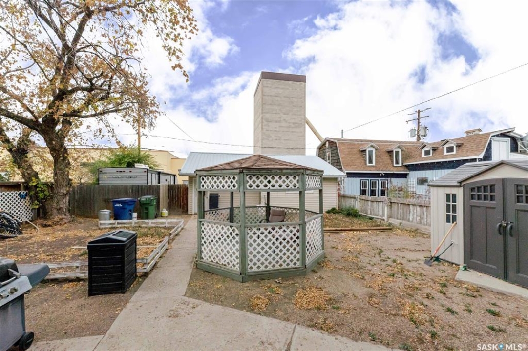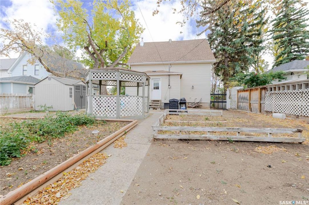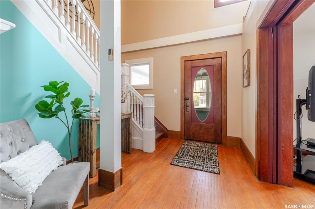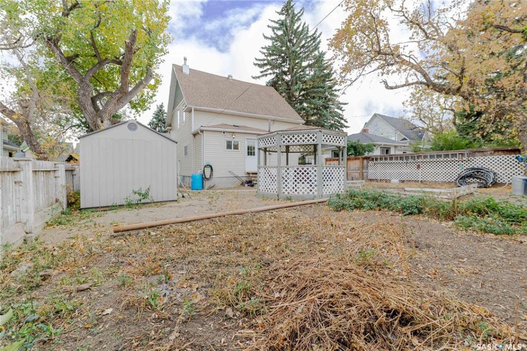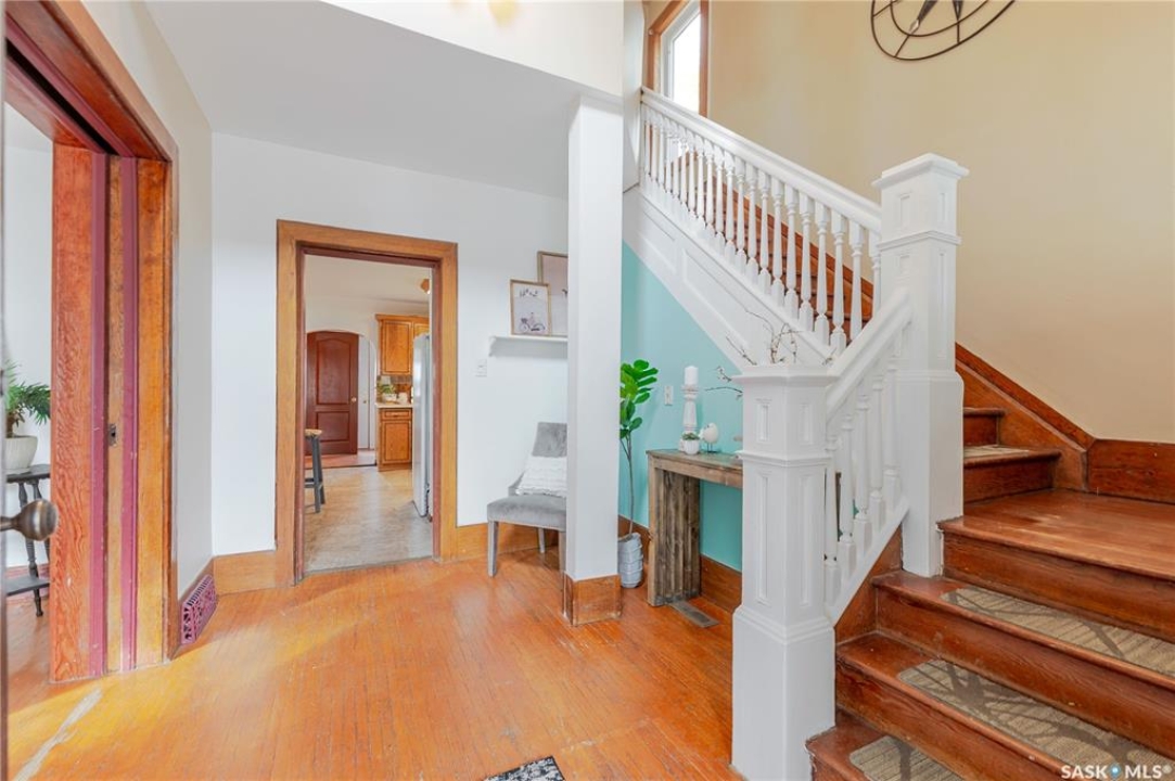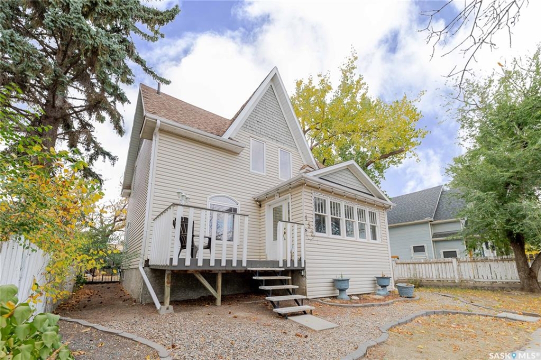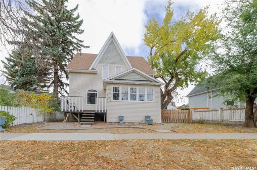 This character home, nestled on a quiet, tree-lined street near schools and downtown Moose Jaw, offers a timeless blend of charm and practical living. Throughout the home, original hardwood floors, a striking Victorian staircase, and vaulted ceilings create a warm and inviting atmosphere. The bright living and dining rooms boast large picture windows, while the kitchen features generous counter space with a breakfast bar. Additional main-floor highlights include a convenient laundry area, a 2-piece powder room, and an enclosed front veranda. Outside, the spacious backyard is perfect for relaxation or entertaining, featuring a gazebo, fire pit, and garden space. Upstairs, you'll find three bedrooms, a full bathroom, and a versatile landing area ideal for a home office or reading nook. The basement adds extra living space with a family room and another 2 piece bathroom. Completing the property is a double detached garage with alley access and plumbing roughed in for in-floor heat. Offering a rare combination of character and convenience, this home is ready for you to make it your own. Book your showing today!