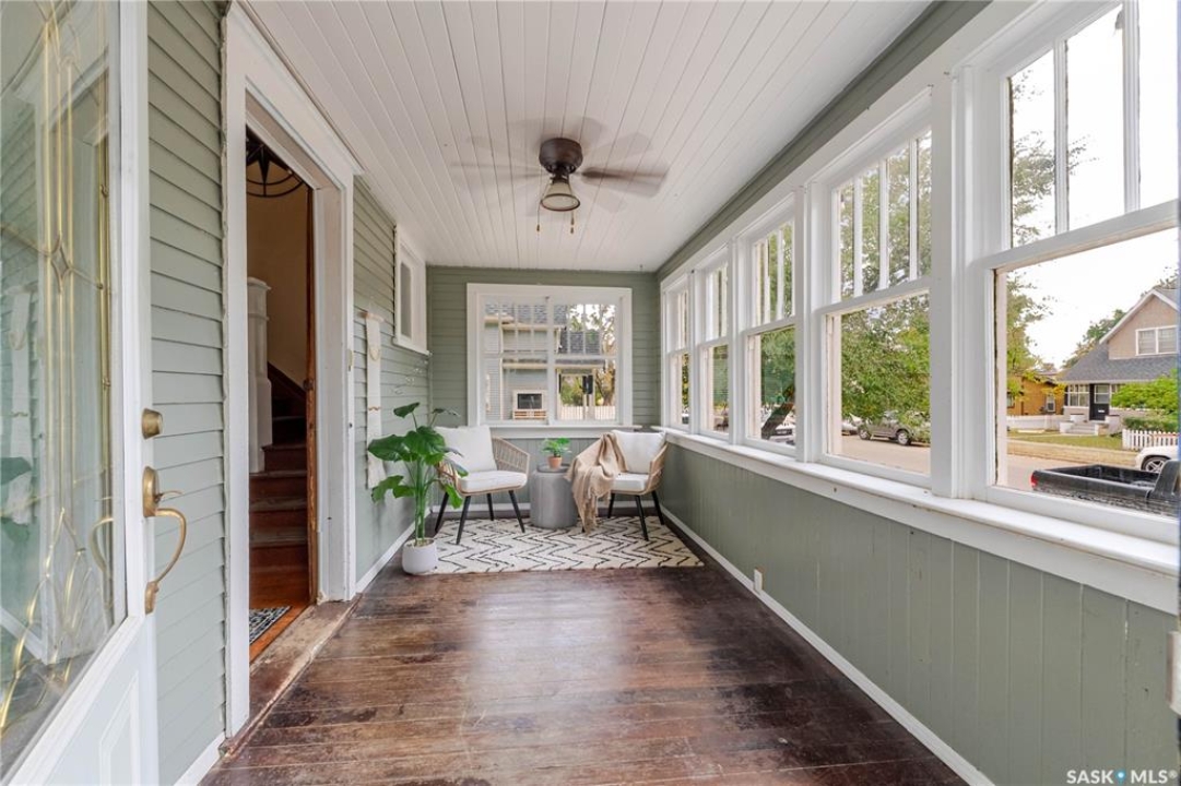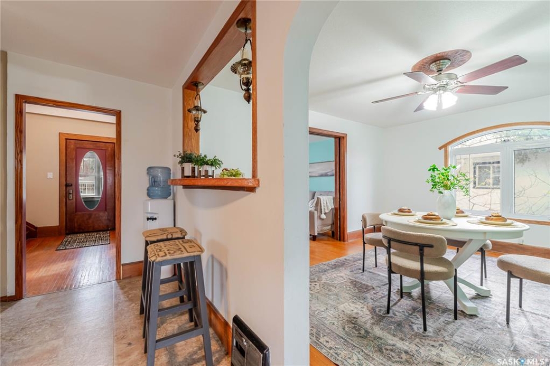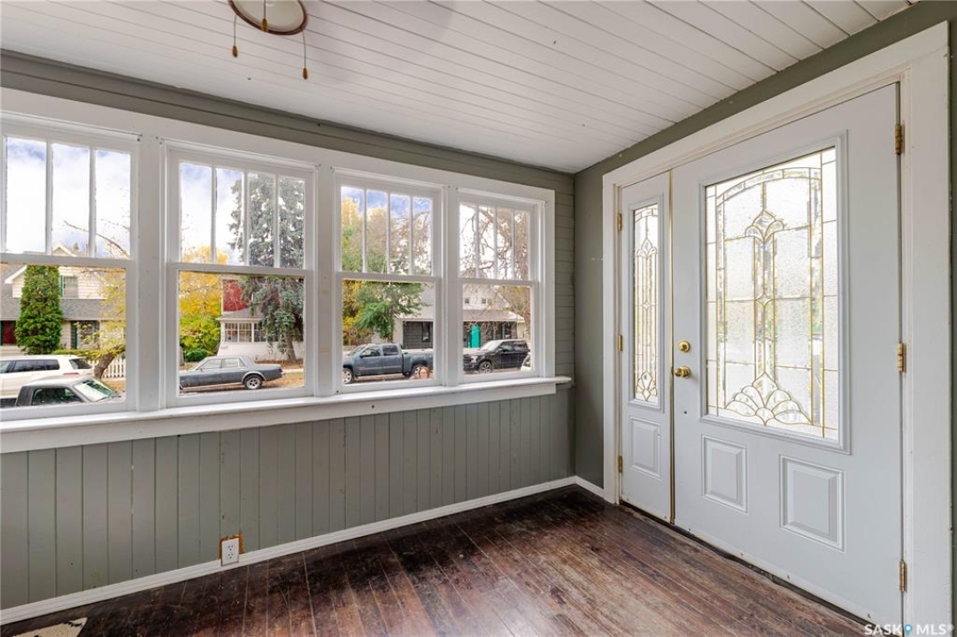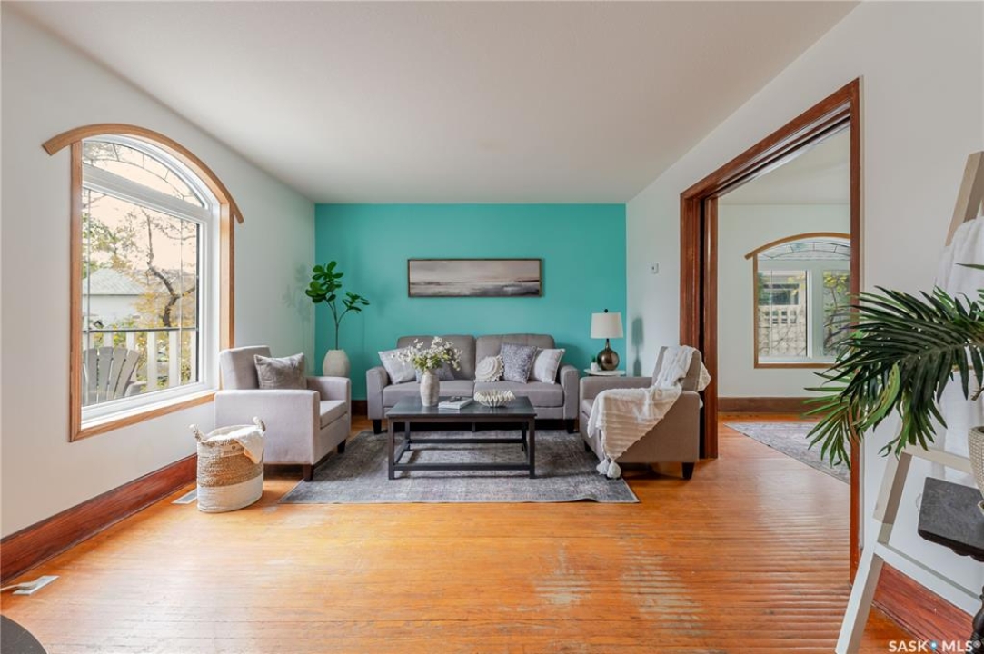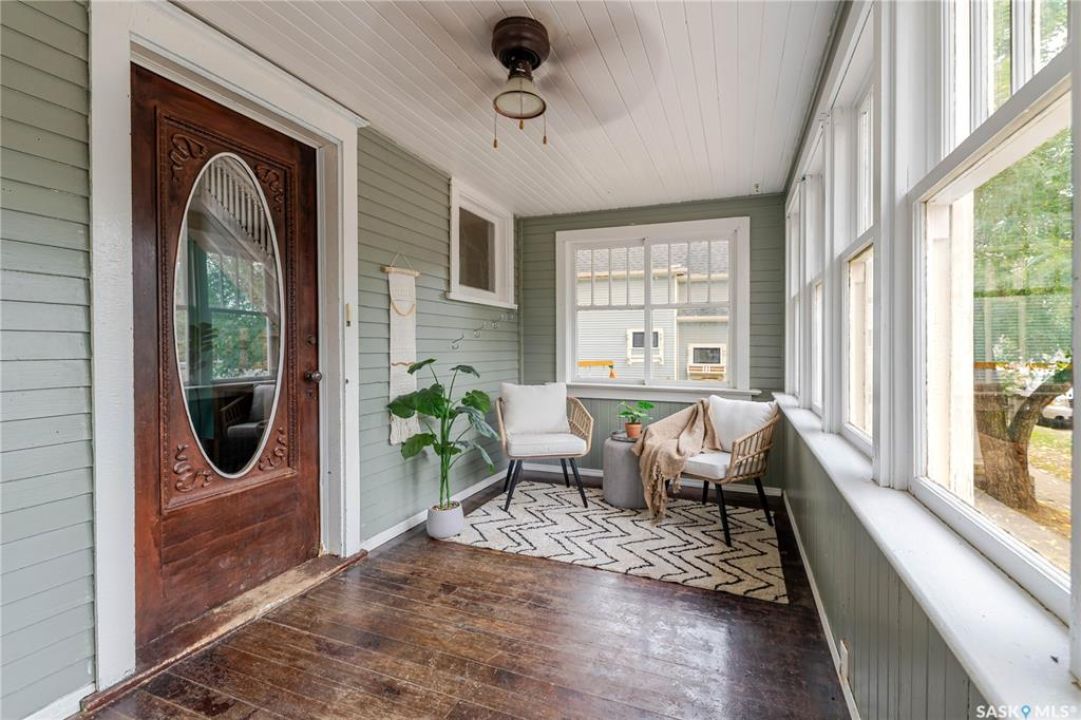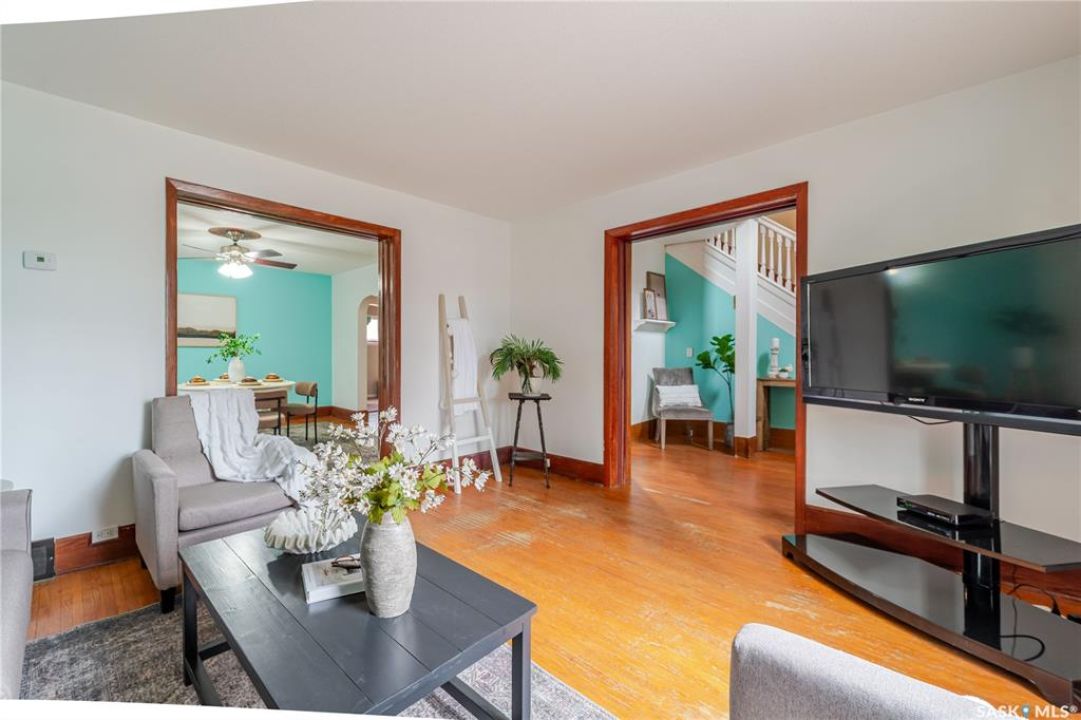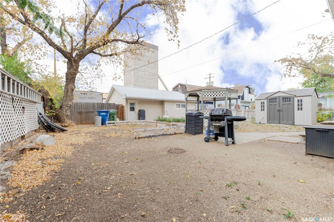 This character home, nestled on a quiet, tree-lined street near schools and downtown Moose Jaw, offers a timeless blend of charm and practical living. Throughout the home, original hardwood floors, a striking Victorian staircase, and vaulted ceilings create a warm and inviting atmosphere. The bright living and dining rooms boast large picture windows, while the kitchen features generous counter space with a breakfast bar. Additional main-floor highlights include a convenient laundry area, a 2-piece powder room, and an enclosed front veranda. Outside, the spacious backyard is perfect for relaxation or entertaining, featuring a gazebo, fire pit, and garden space. Upstairs, you'll find three bedrooms, a full bathroom, and a versatile landing area ideal for a home office or reading nook. The basement adds extra living space with a family room and another 2 piece bathroom. Completing the property is a double detached garage with alley access and plumbing roughed in for in-floor heat. Offering a rare combination of character and convenience, this home is ready for you to make it your own. Book your showing today!