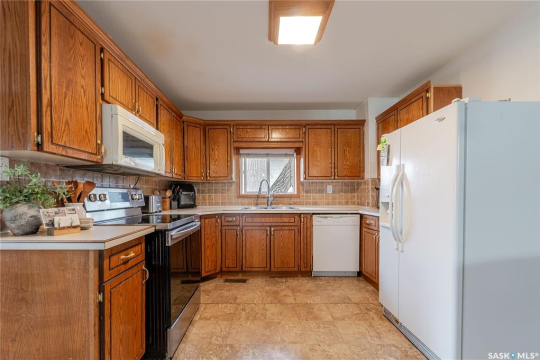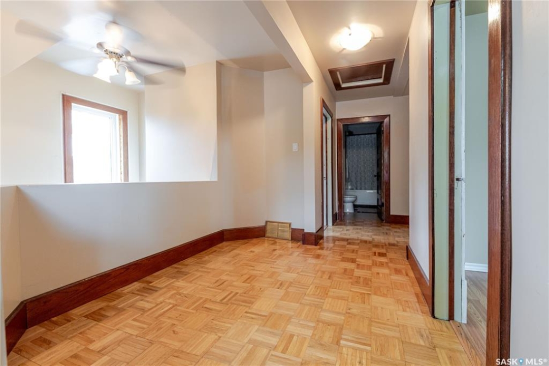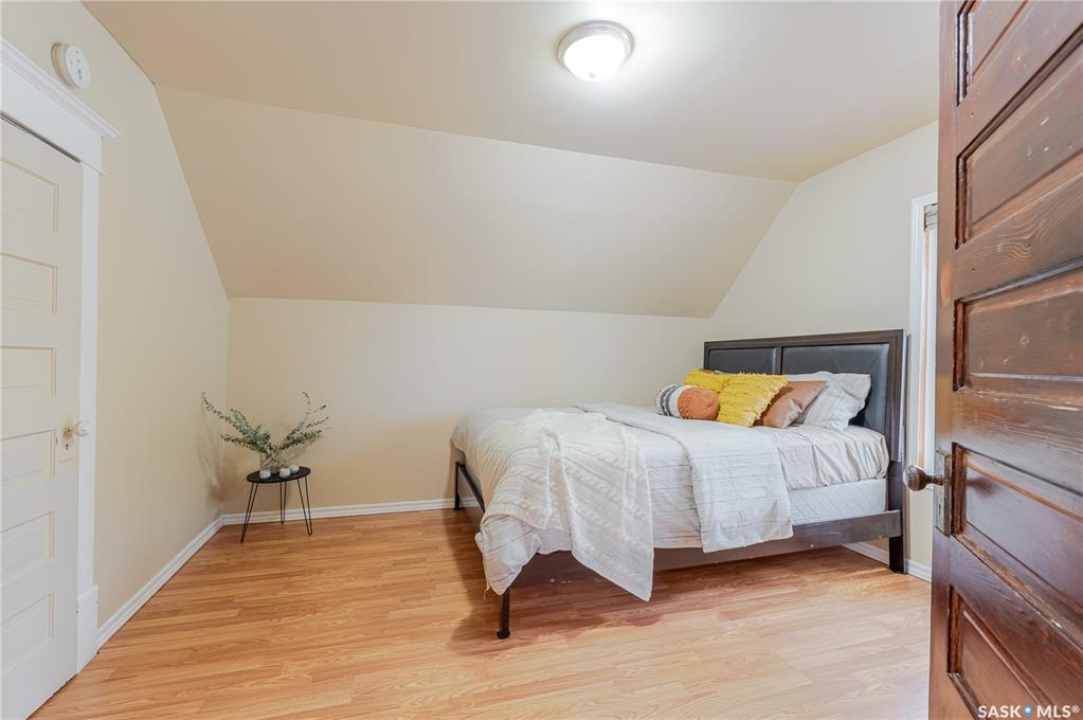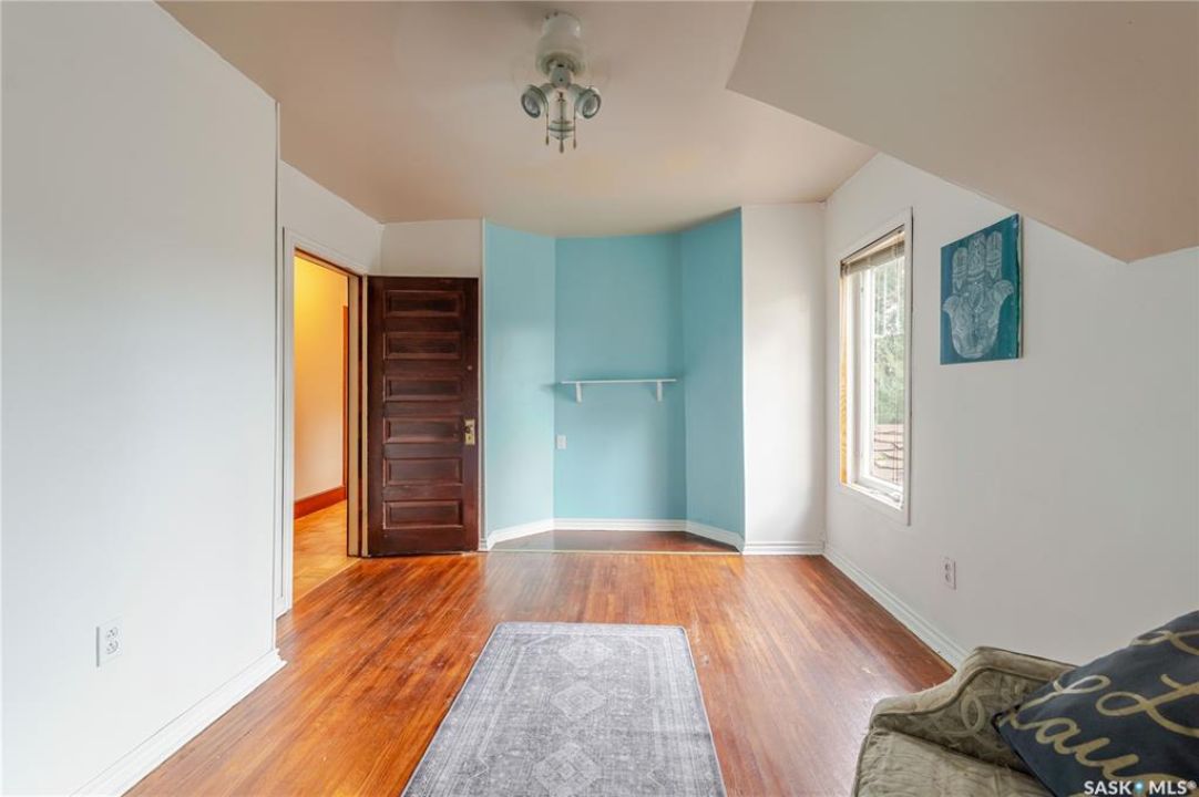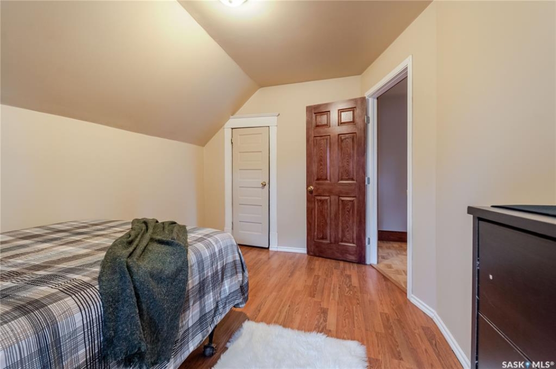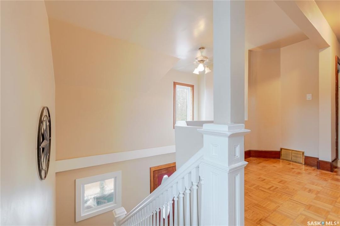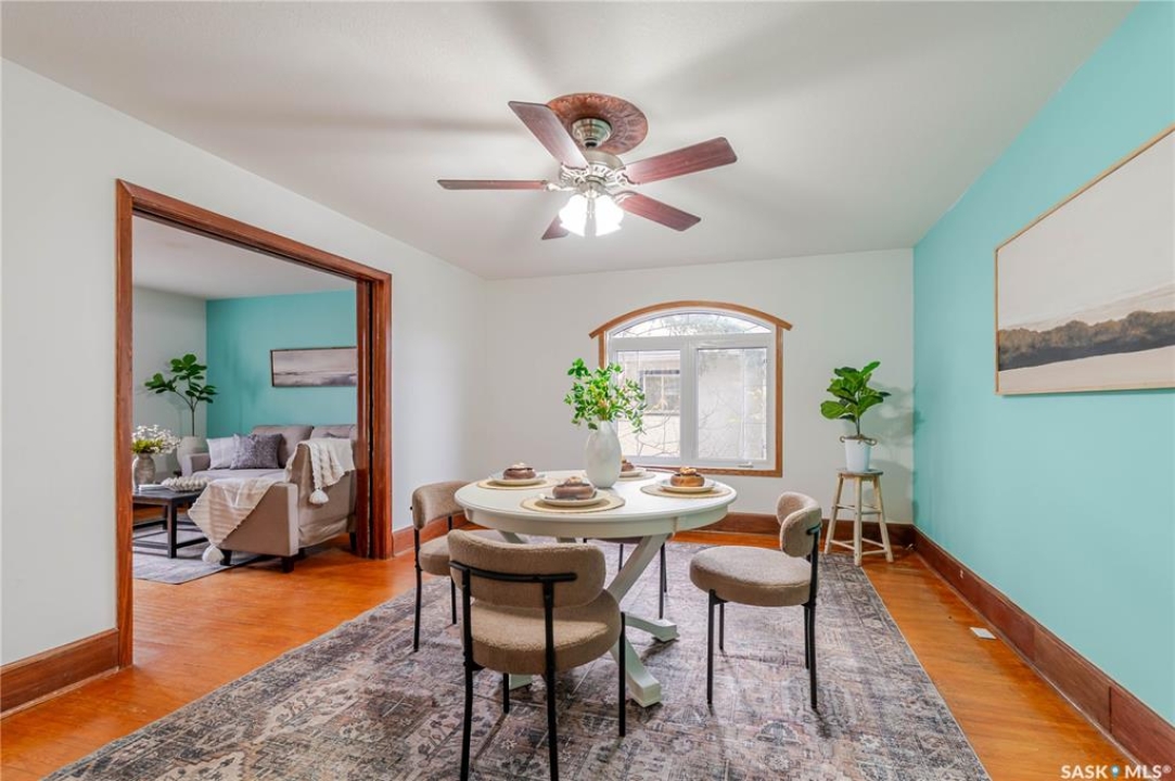 This character home, nestled on a quiet, tree-lined street near schools and downtown Moose Jaw, offers a timeless blend of charm and practical living. Throughout the home, original hardwood floors, a striking Victorian staircase, and vaulted ceilings create a warm and inviting atmosphere. The bright living and dining rooms boast large picture windows, while the kitchen features generous counter space with a breakfast bar. Additional main-floor highlights include a convenient laundry area, a 2-piece powder room, and an enclosed front veranda. Outside, the spacious backyard is perfect for relaxation or entertaining, featuring a gazebo, fire pit, and garden space. Upstairs, you'll find three bedrooms, a full bathroom, and a versatile landing area ideal for a home office or reading nook. The basement adds extra living space with a family room and another 2 piece bathroom. Completing the property is a double detached garage with alley access and plumbing roughed in for in-floor heat. Offering a rare combination of character and convenience, this home is ready for you to make it your own. Book your showing today!